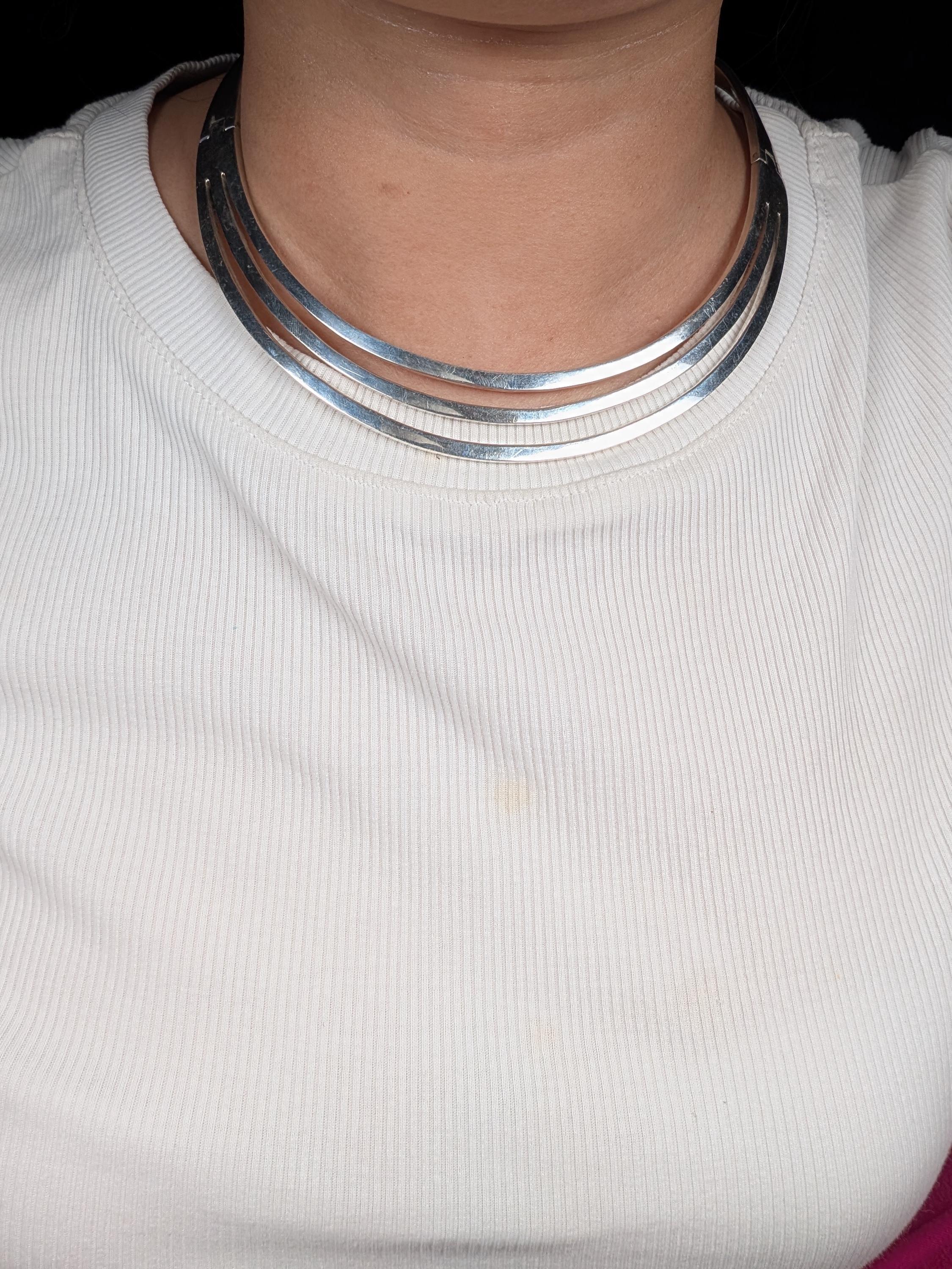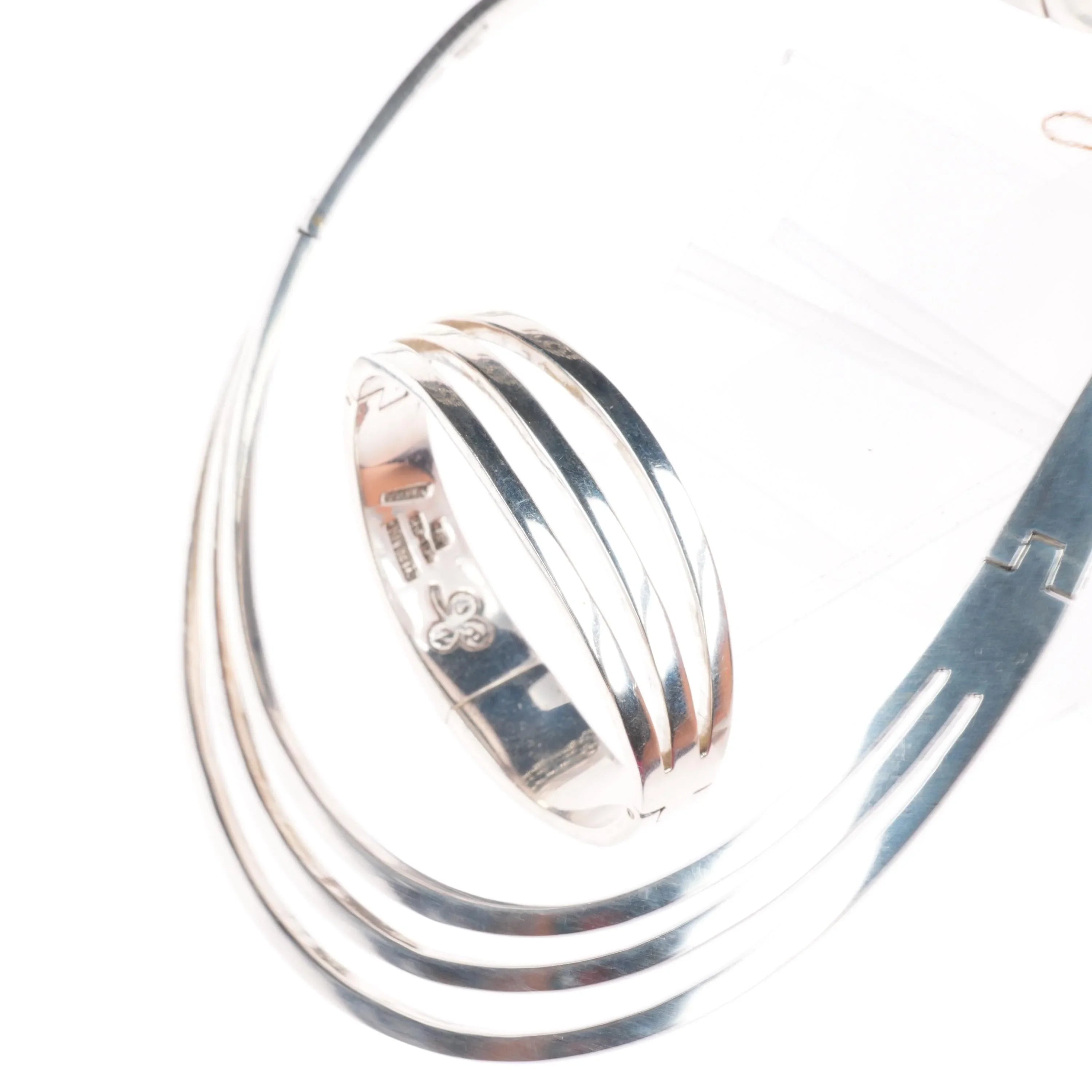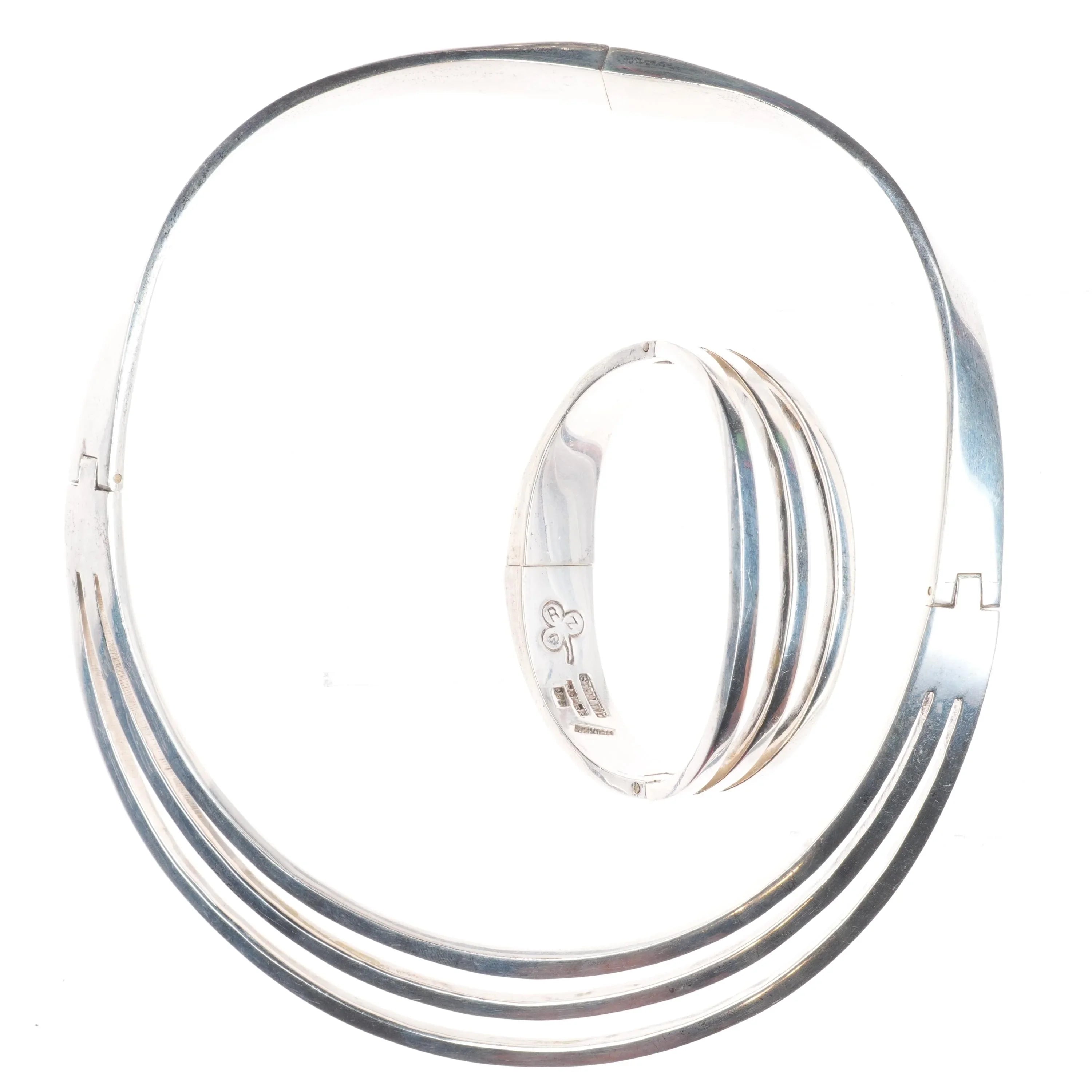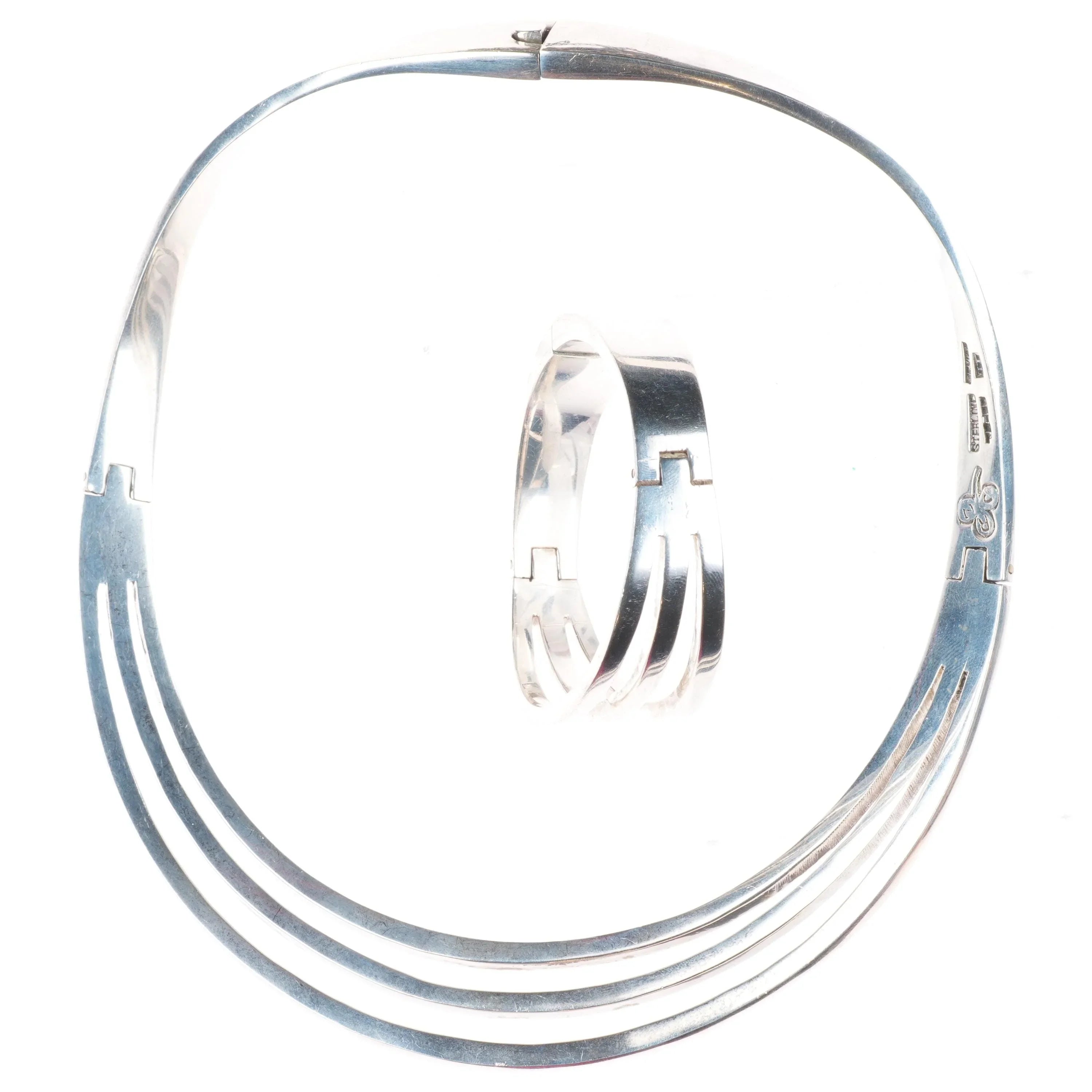 Heavy vintage sterling silver Mexican modernist bar choker/bangle bracelet. Weight and measurements in pictures, solid sterling silver. Fully functional, with no issues. 6.5" bracelet, 16" necklace.