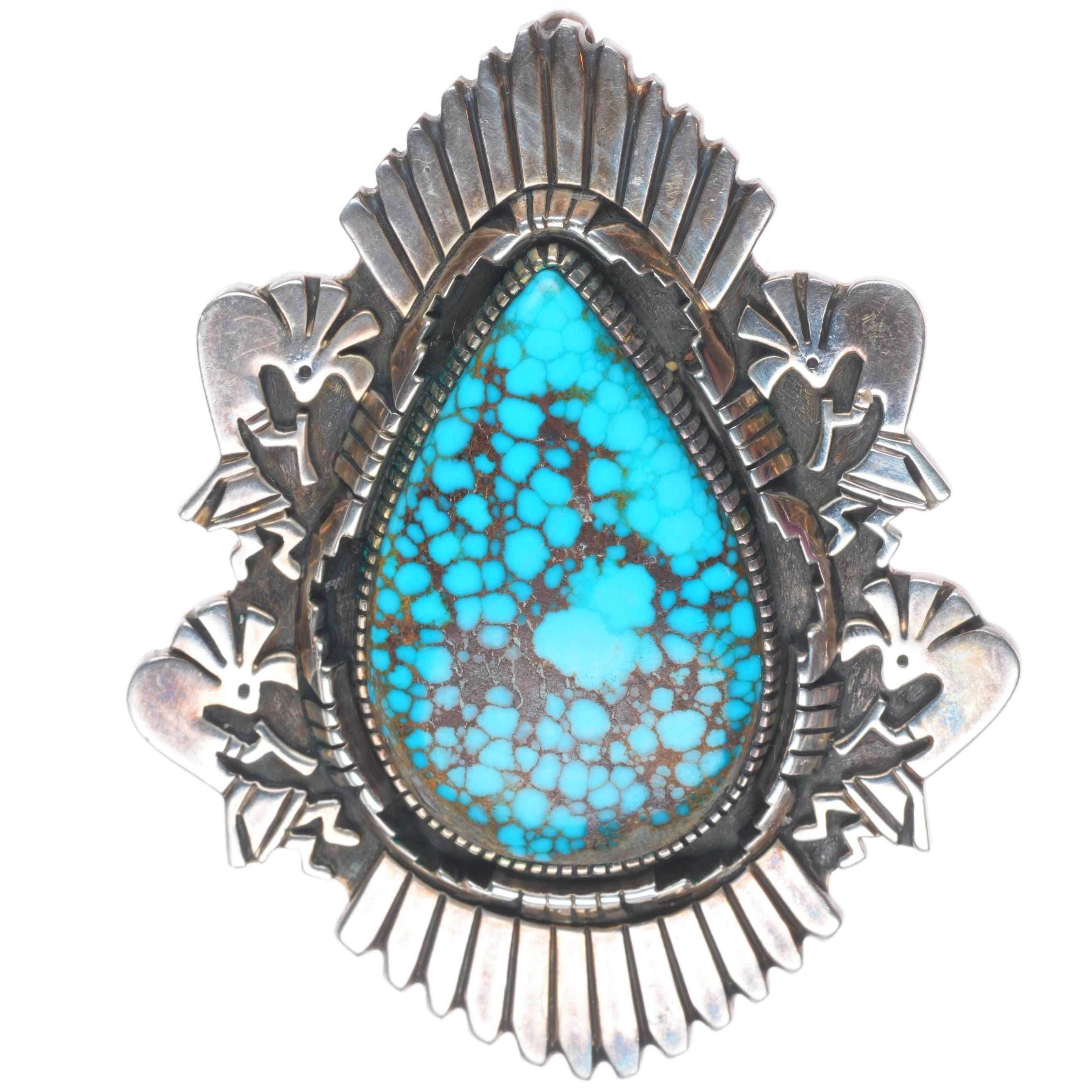 Herman Vandever Navajo sterling silver high grade turquoise kokopelli pendant