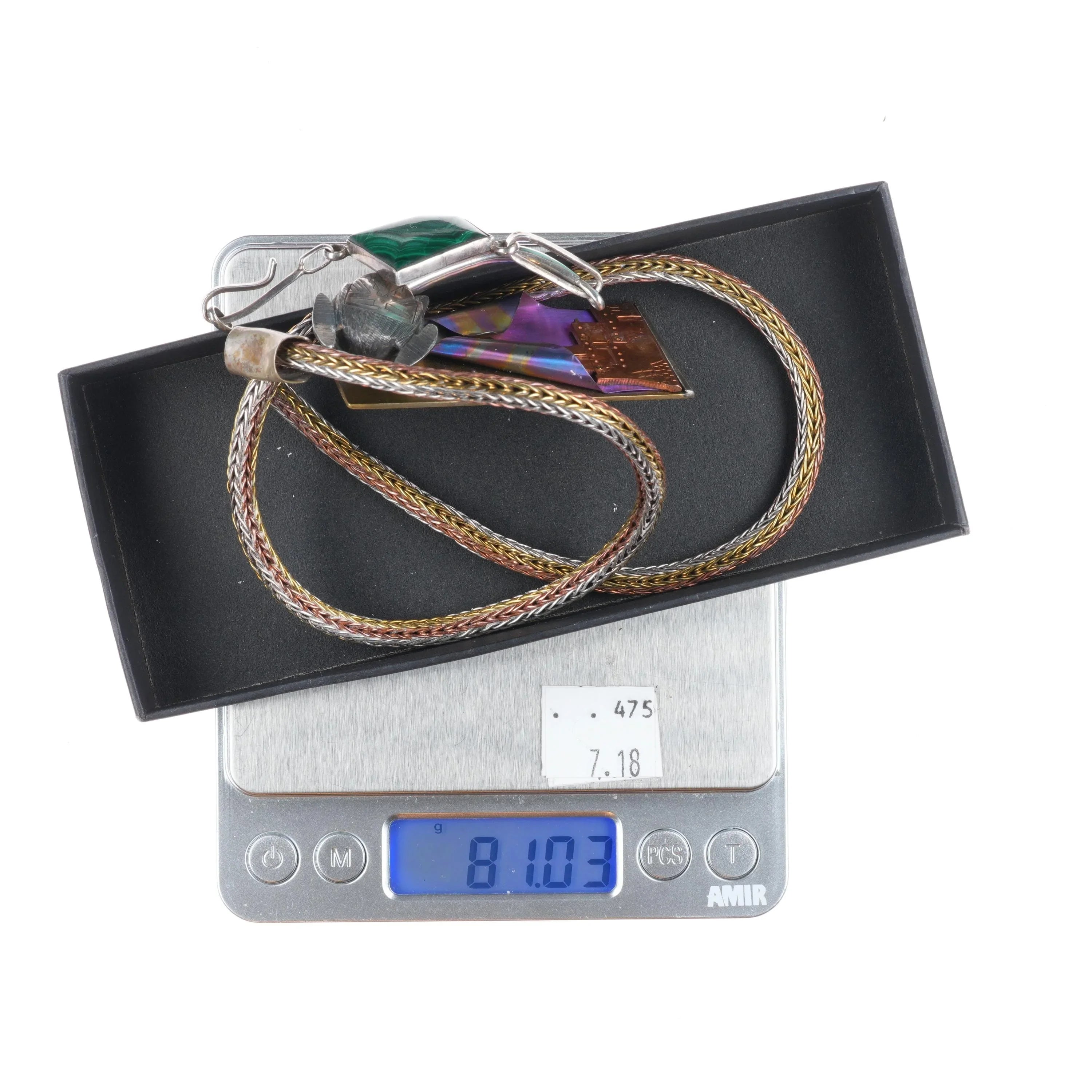 Howard Sice Hopi/Laguna Sterling silver/mixed metal copper pendant/necklace. Mixed metals, made of Sterling, copper, and brass. The Chain is woven copper, brass, and sterling. Solid sterling silver tested and guaranteed with no markings other than artists hallmark on the pendant in the back, weight and measurements in the pictures. No issues, circa last quarter of the 20th century. 25" long.