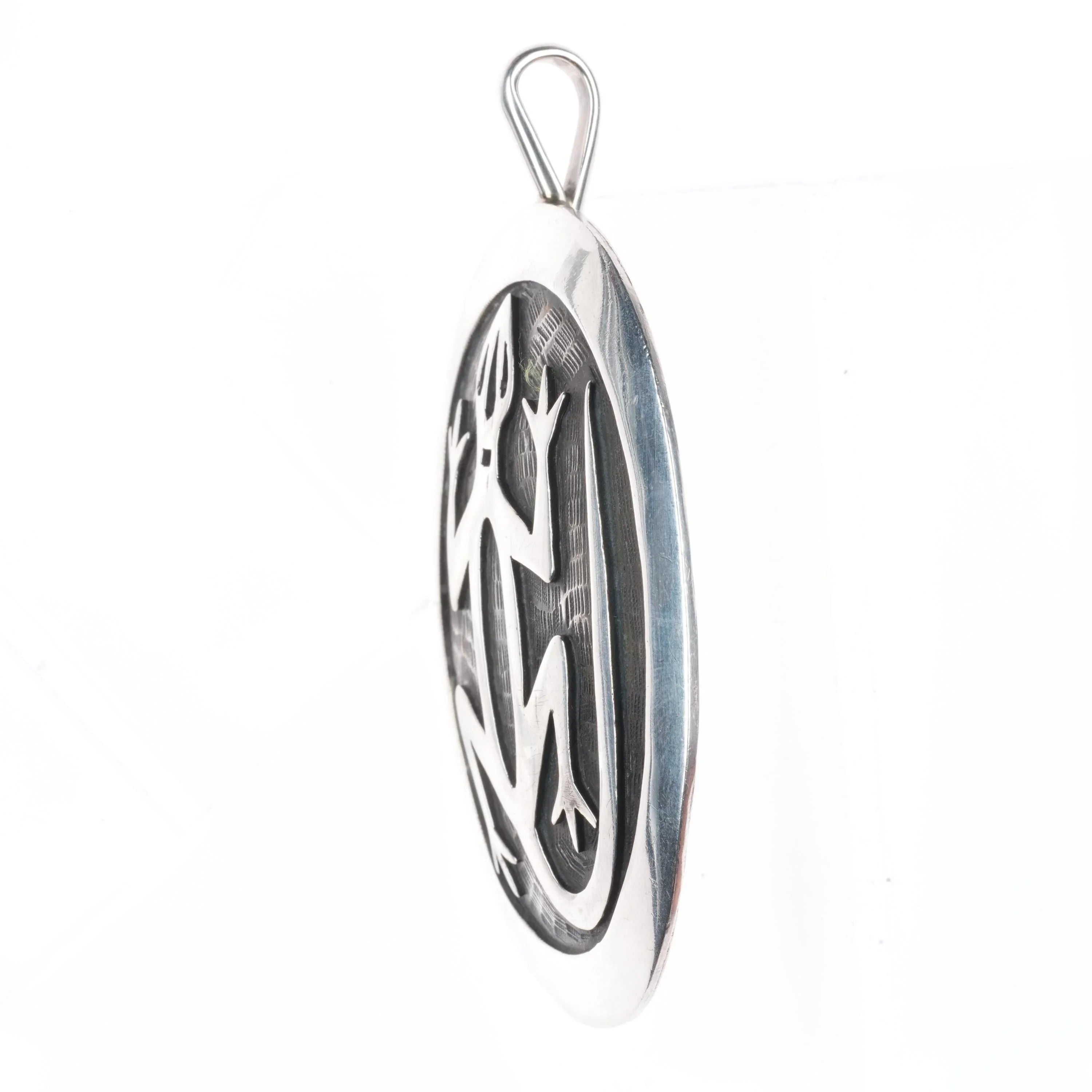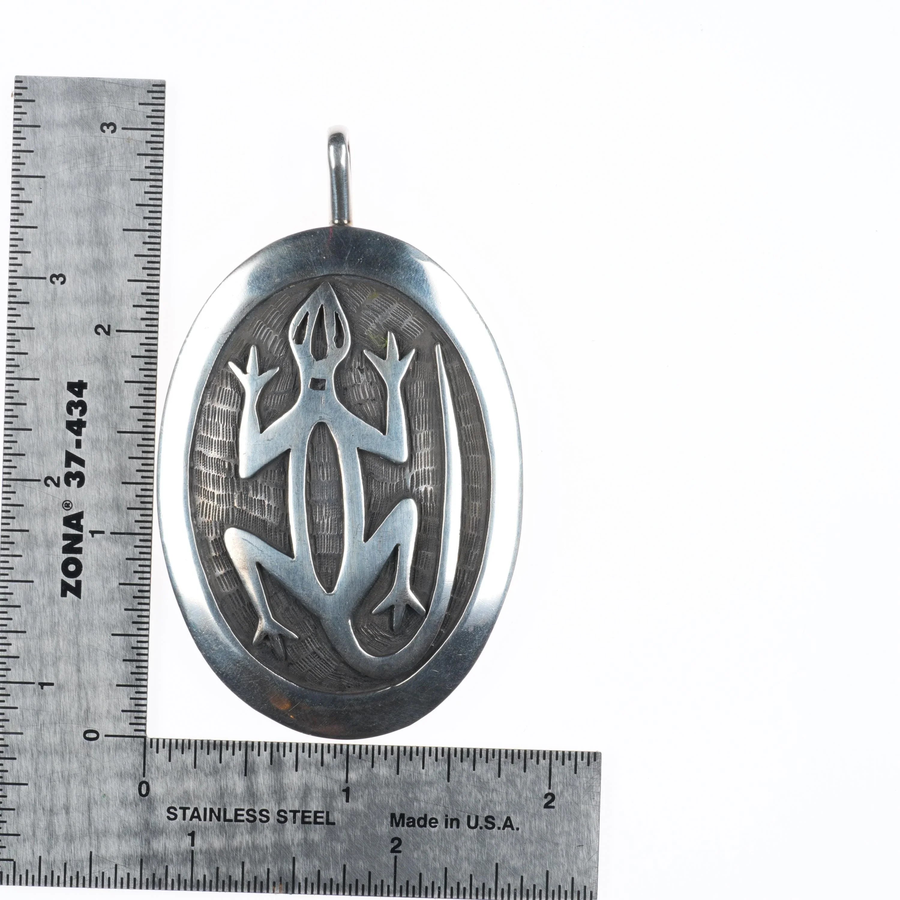 Large Bernard Dawahoya Hopi overlay lizard pendant sterling silver. Solid sterling silver tested and guaranteed with artists hallmarks and measurements in the pictures. No issues, circa last quarter of the 20th century.
