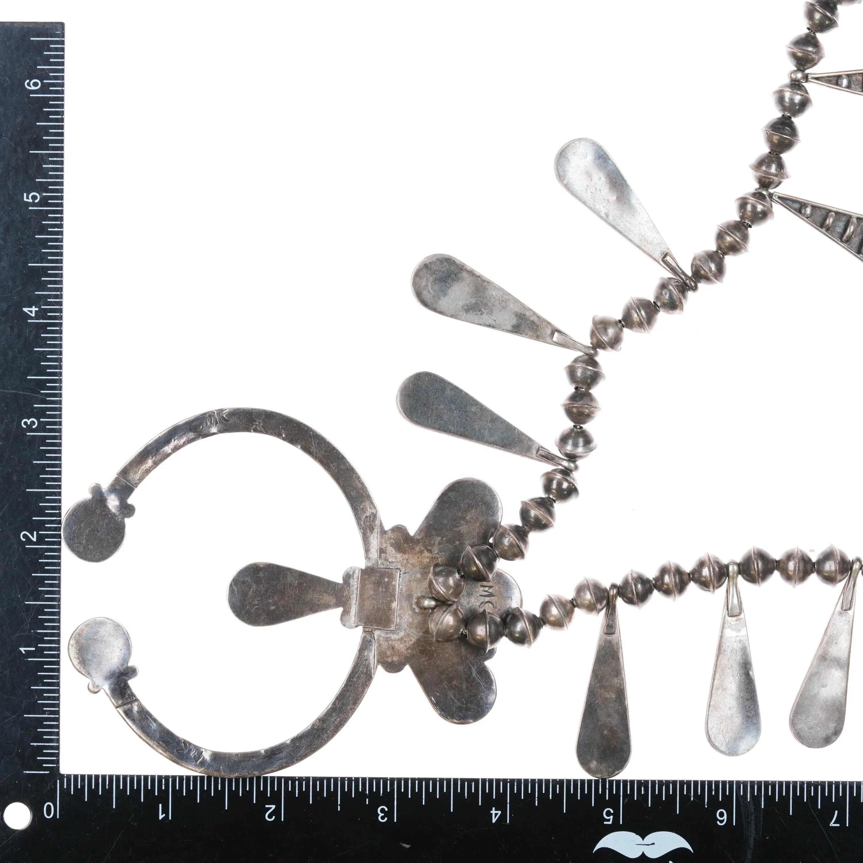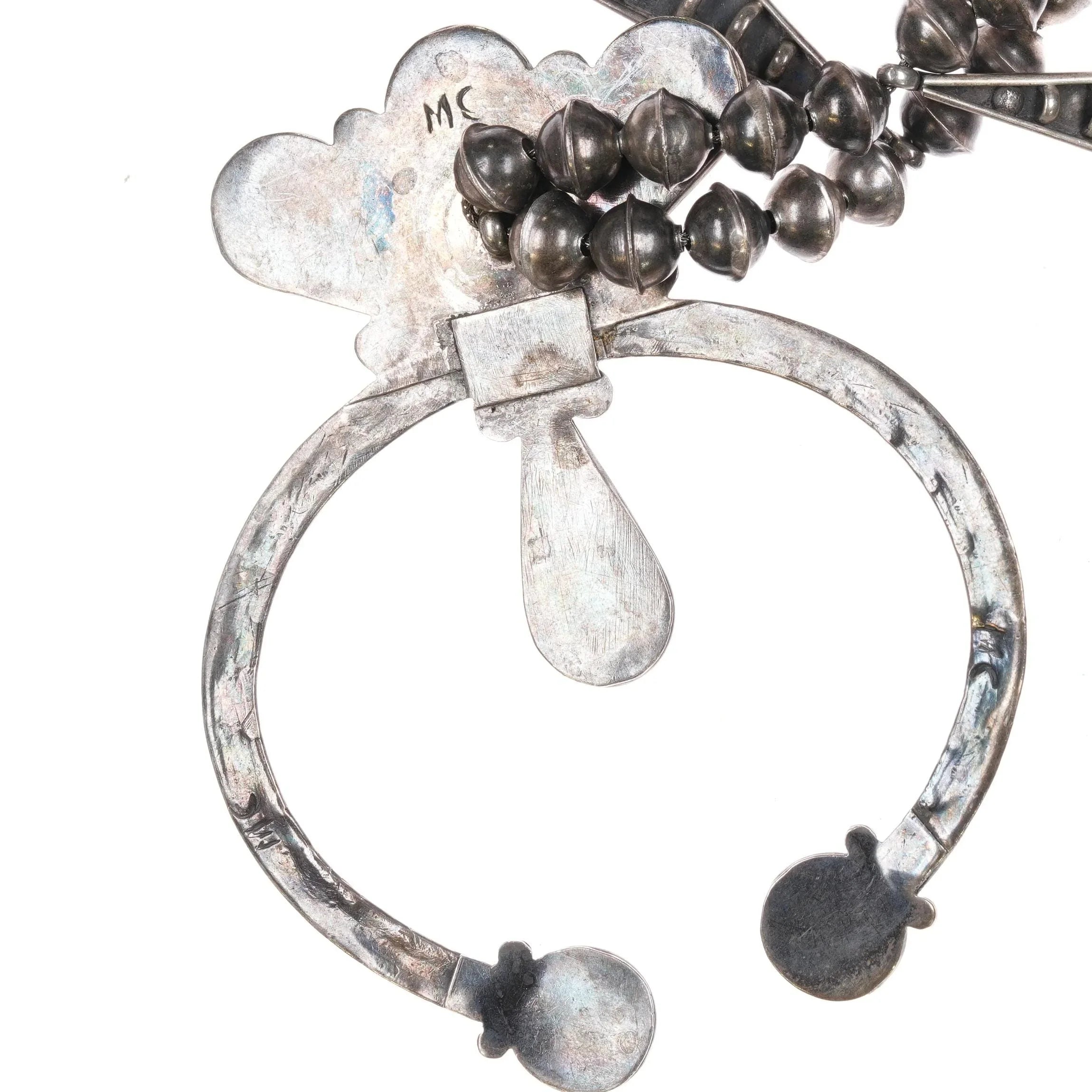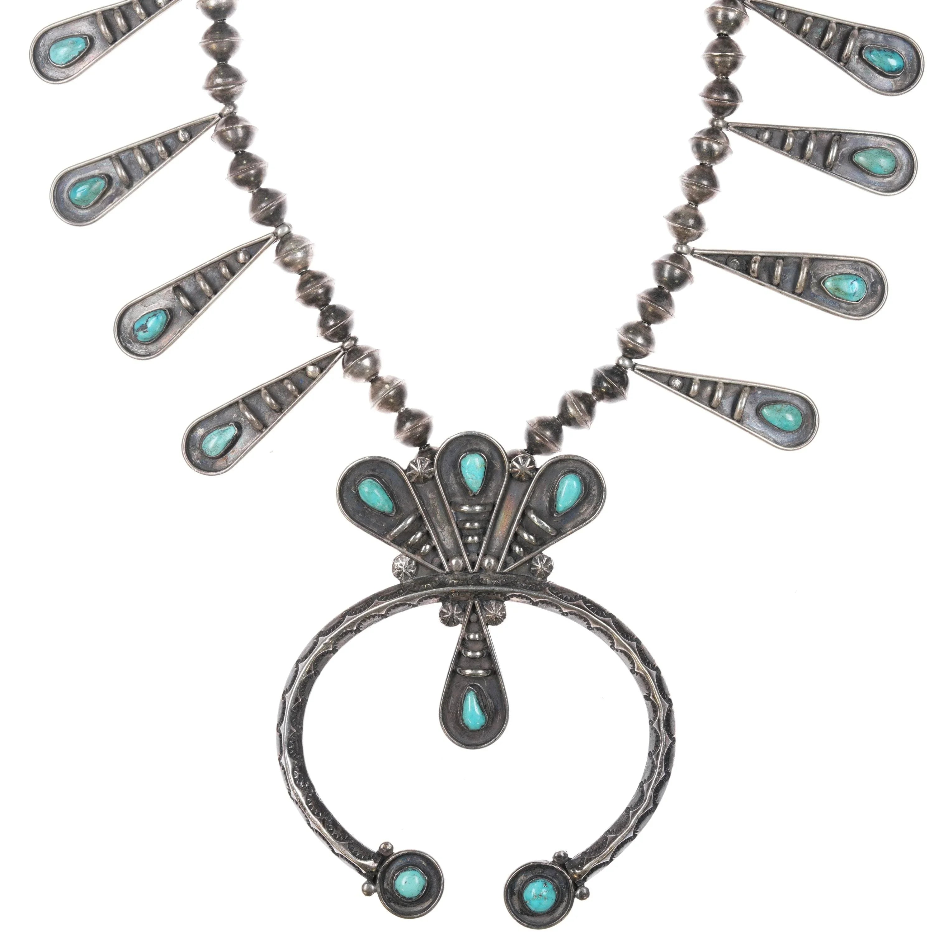 Mary Chavez San Felipe pueblo sterling silver/turquoise squash blossom necklace