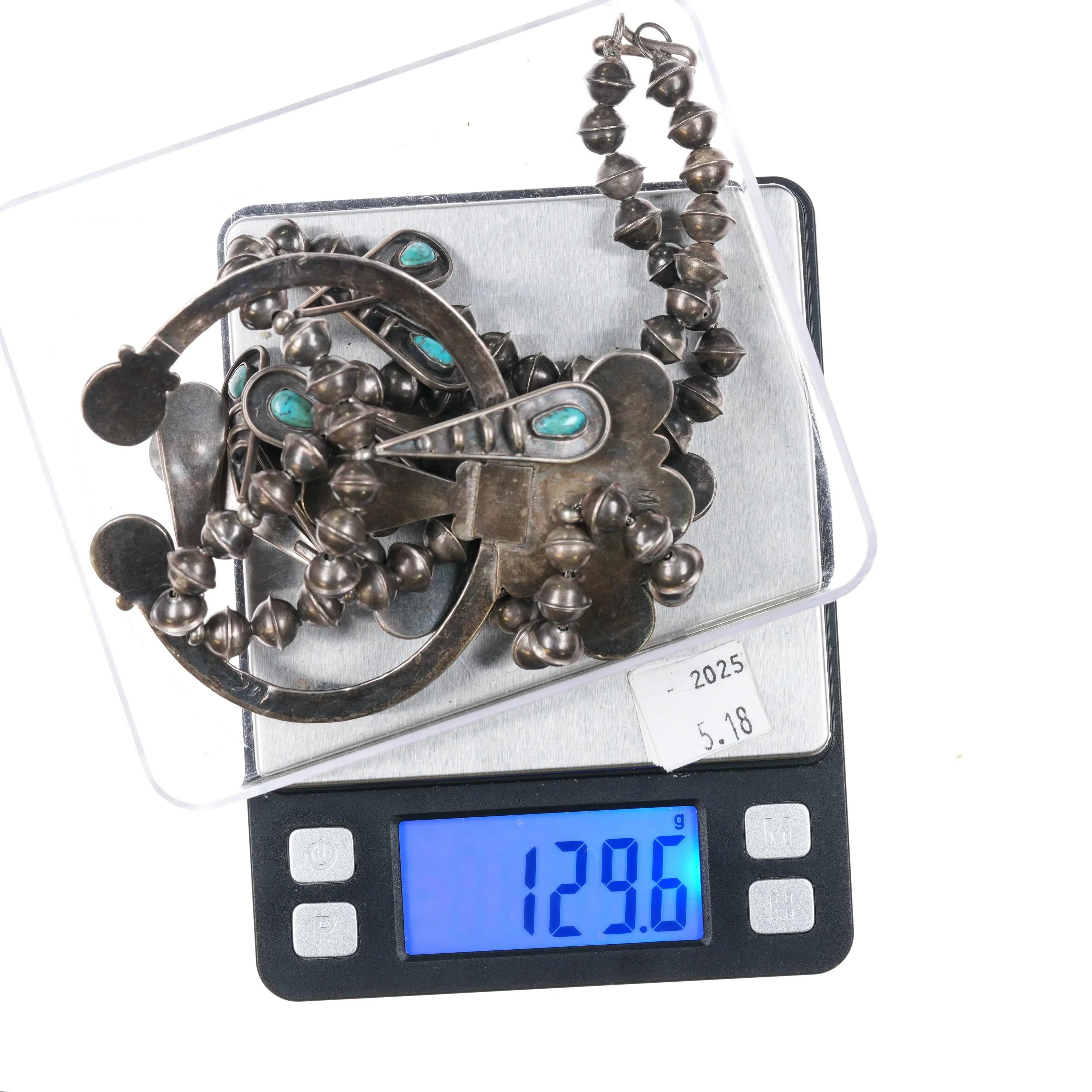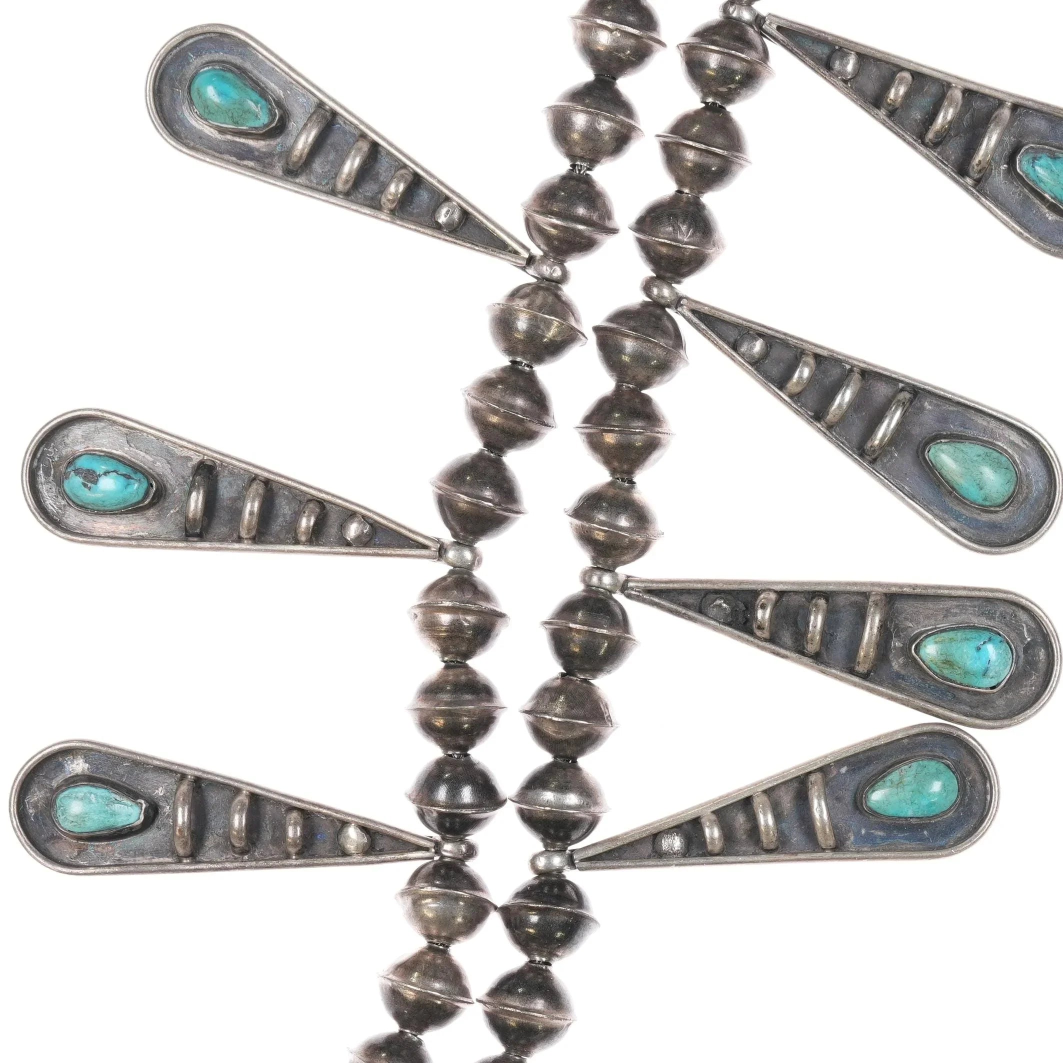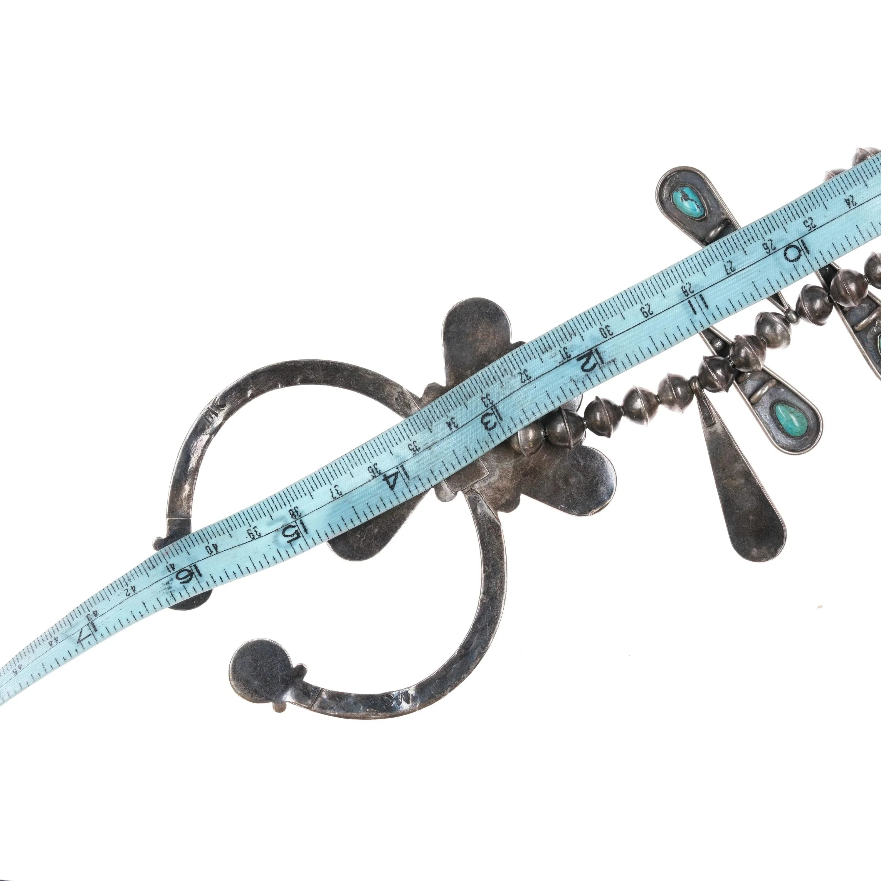 Mary Chavez San Felipe pueblo sterling silver/turquoise squash blossom necklace