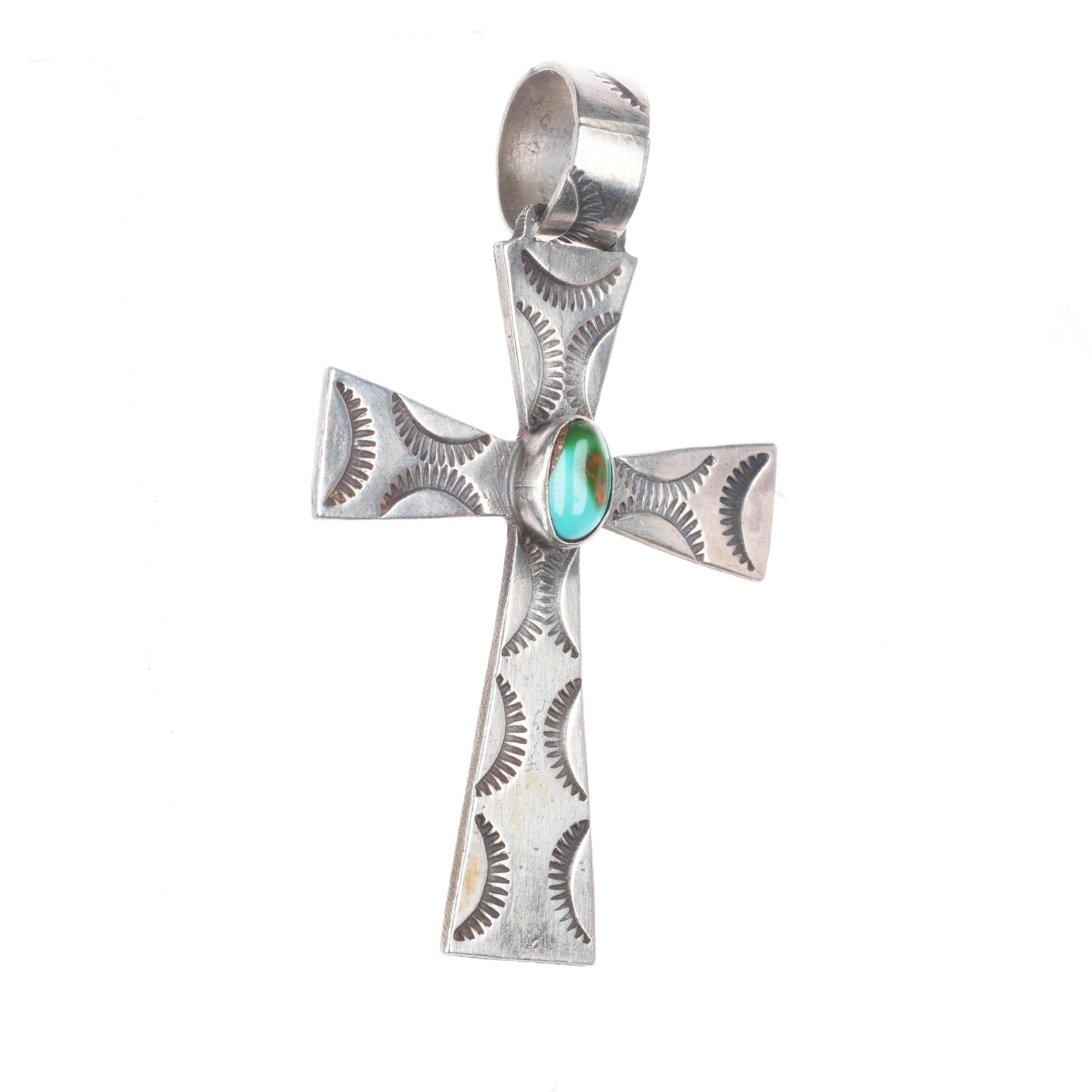Ray Delgarito Navajo sterling silver Royston turquoise big cross pendant