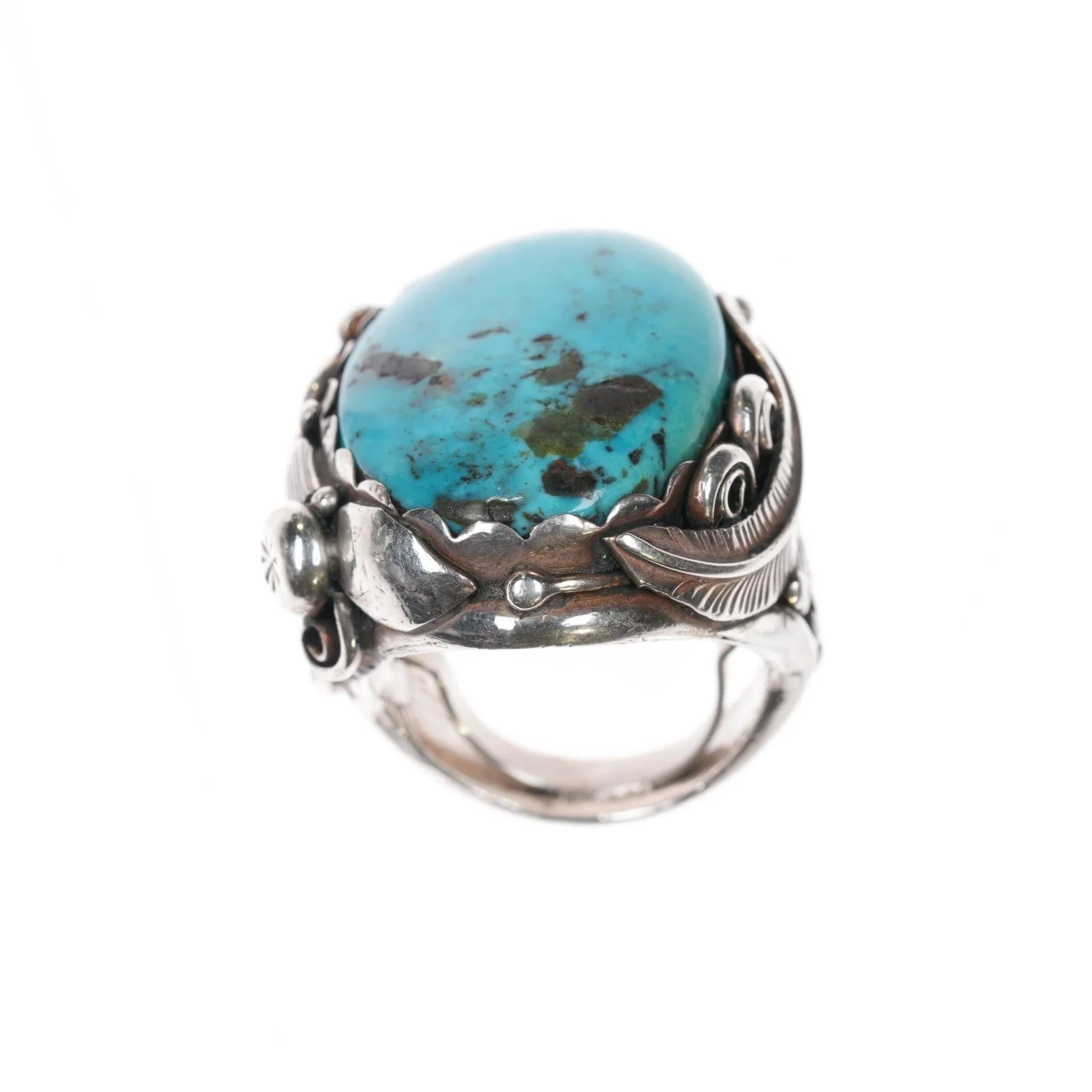 Sz6.5-9 CR Native American sterling interior stamped sterling and turquoise ring