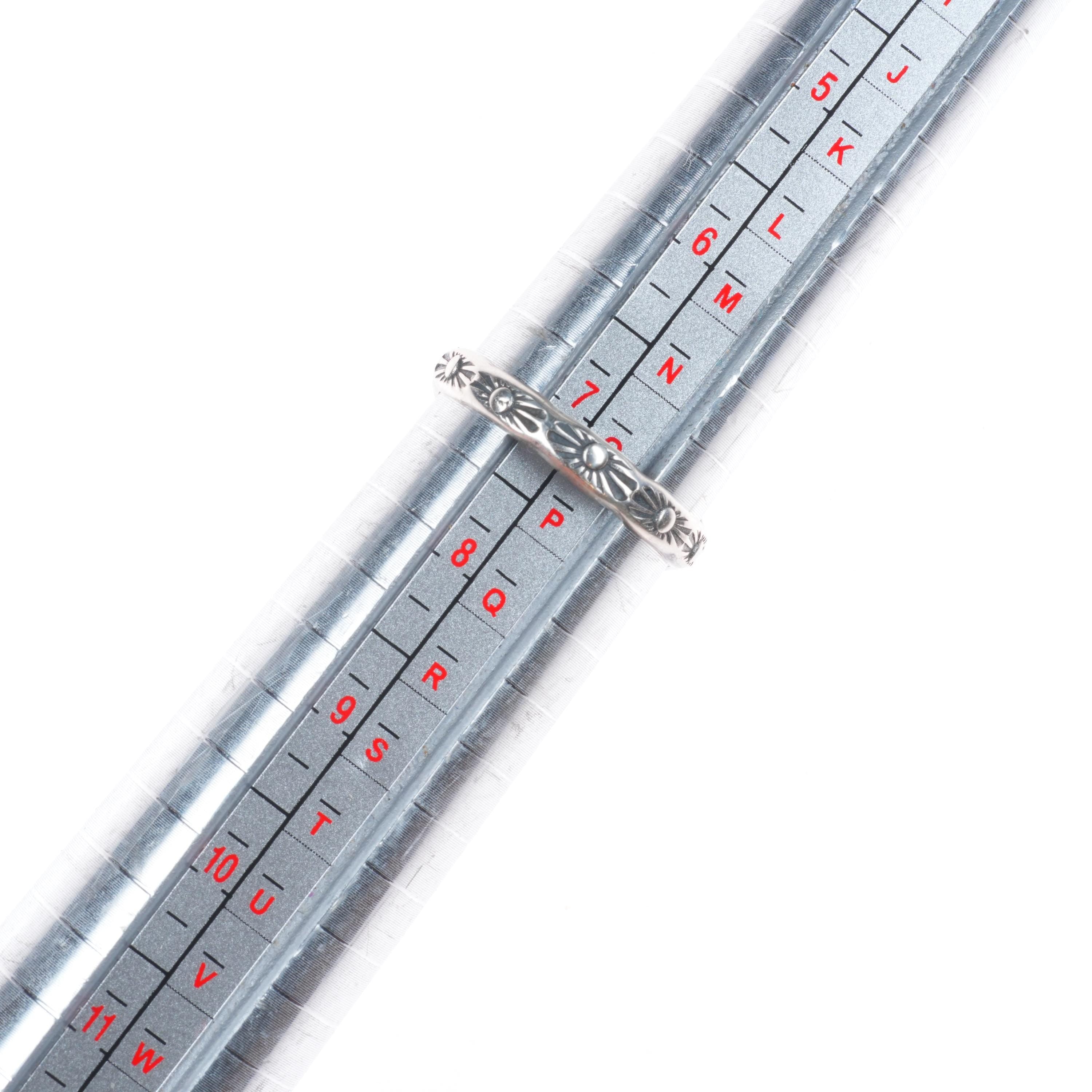 sz7.5 CE Vintage Navajo sterling silver 3 stone stamped shank long ring