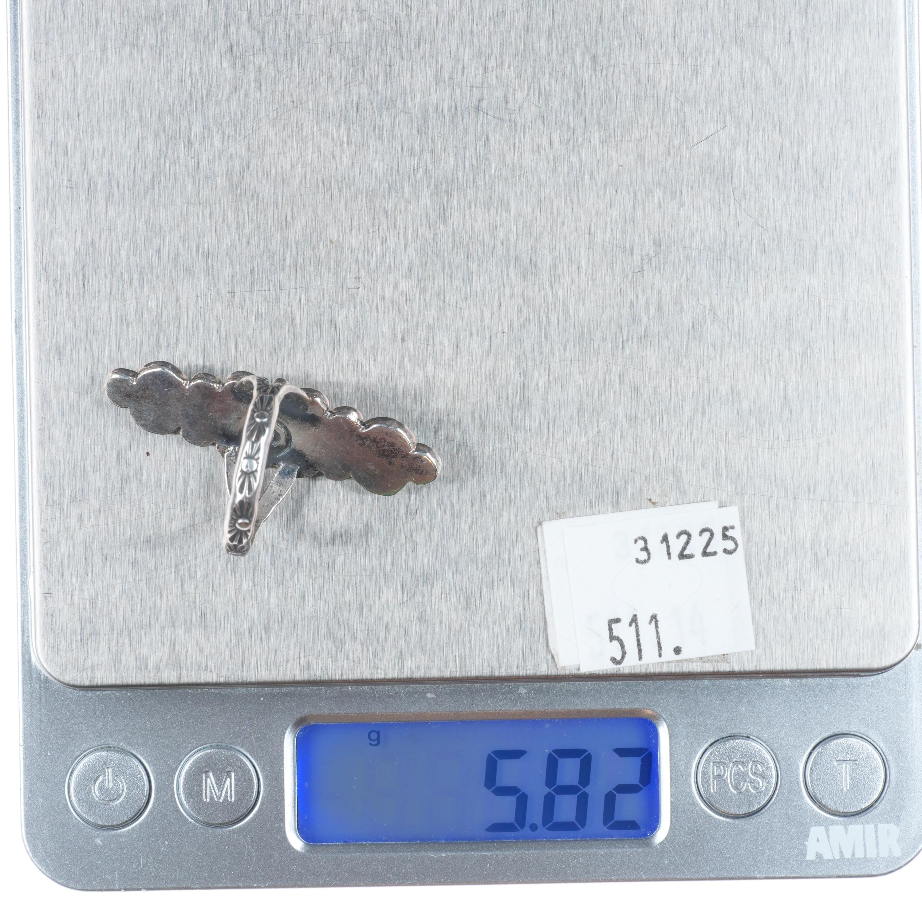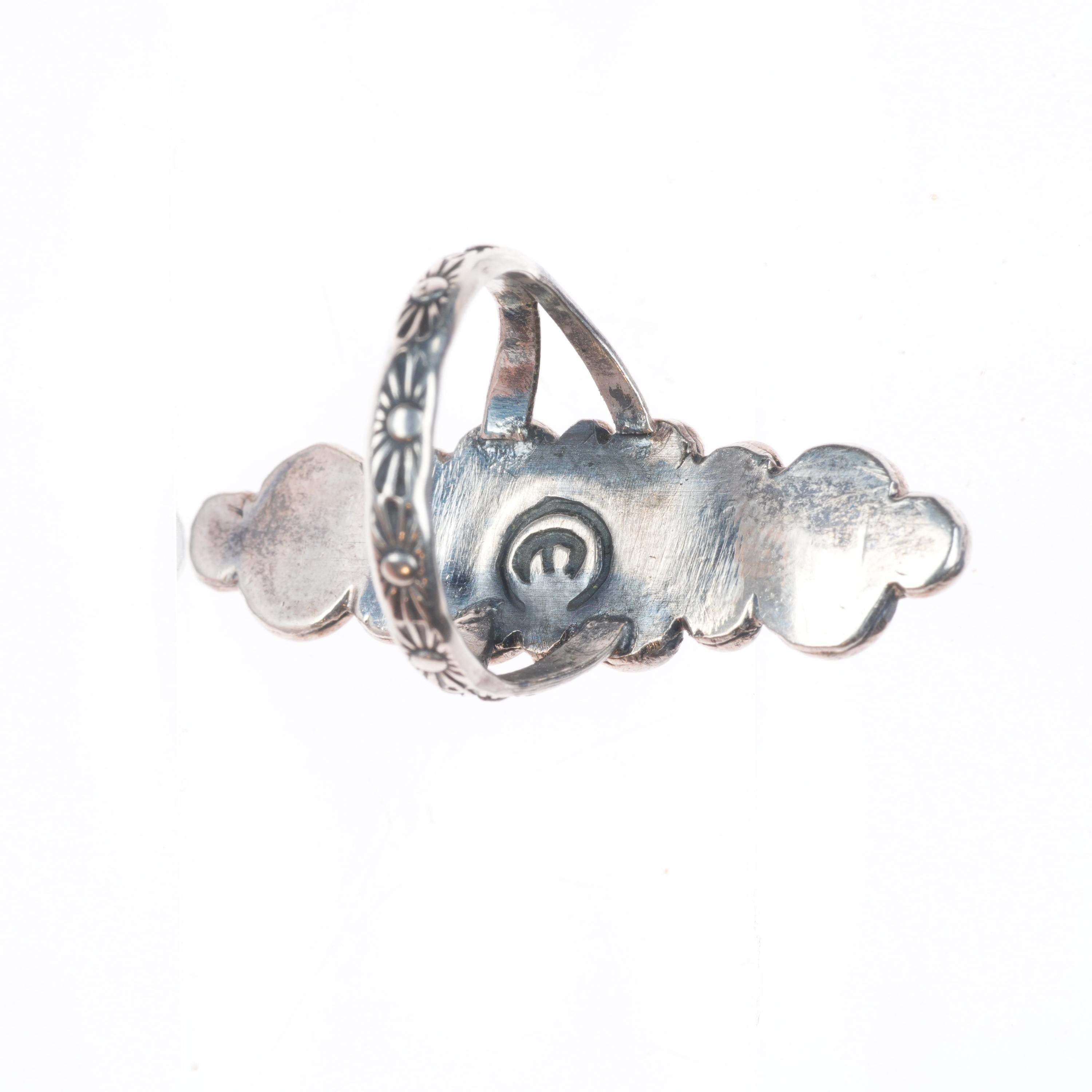 sz7.5 CE Vintage Navajo sterling silver 3 stone stamped shank long ring Nice ring from the third quarter of the 20th century. Unknown hallmark.
