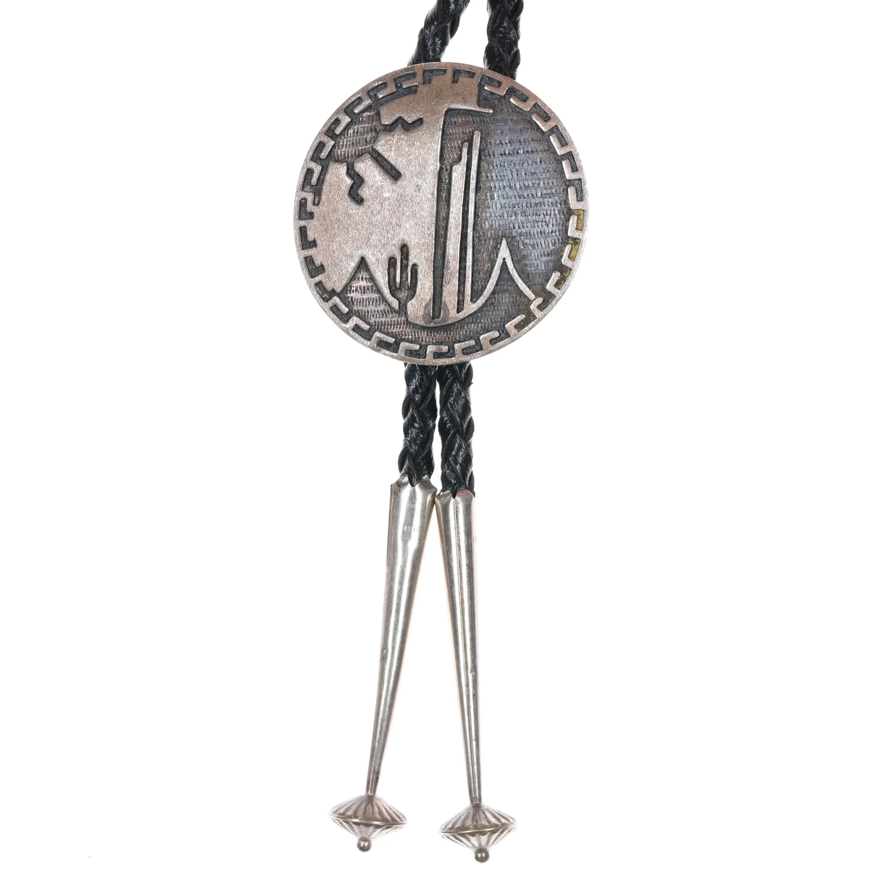 Vintage Silver Cloud Sterling silver bolo tie overlay style. Solid sterling silver slide and tips. Weight and measurements in pics. 38" long.