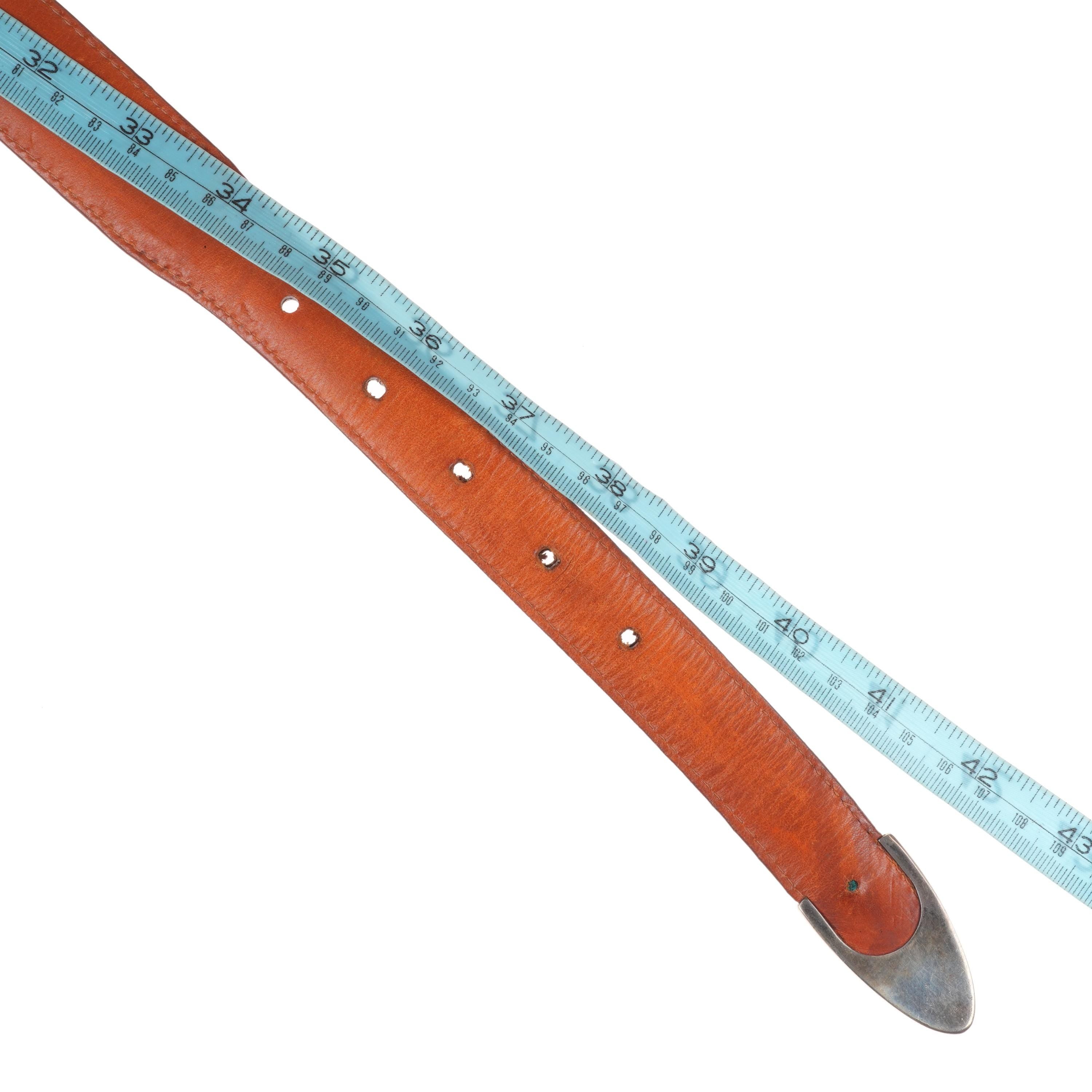 Belt fits up to a 39" waist with existing holes. Hole placements shown on tape measure, Could be cut a little shorter, possibly another hole added. These are rather rare especially in the 1" size, typically they are smaller 3/4" size.