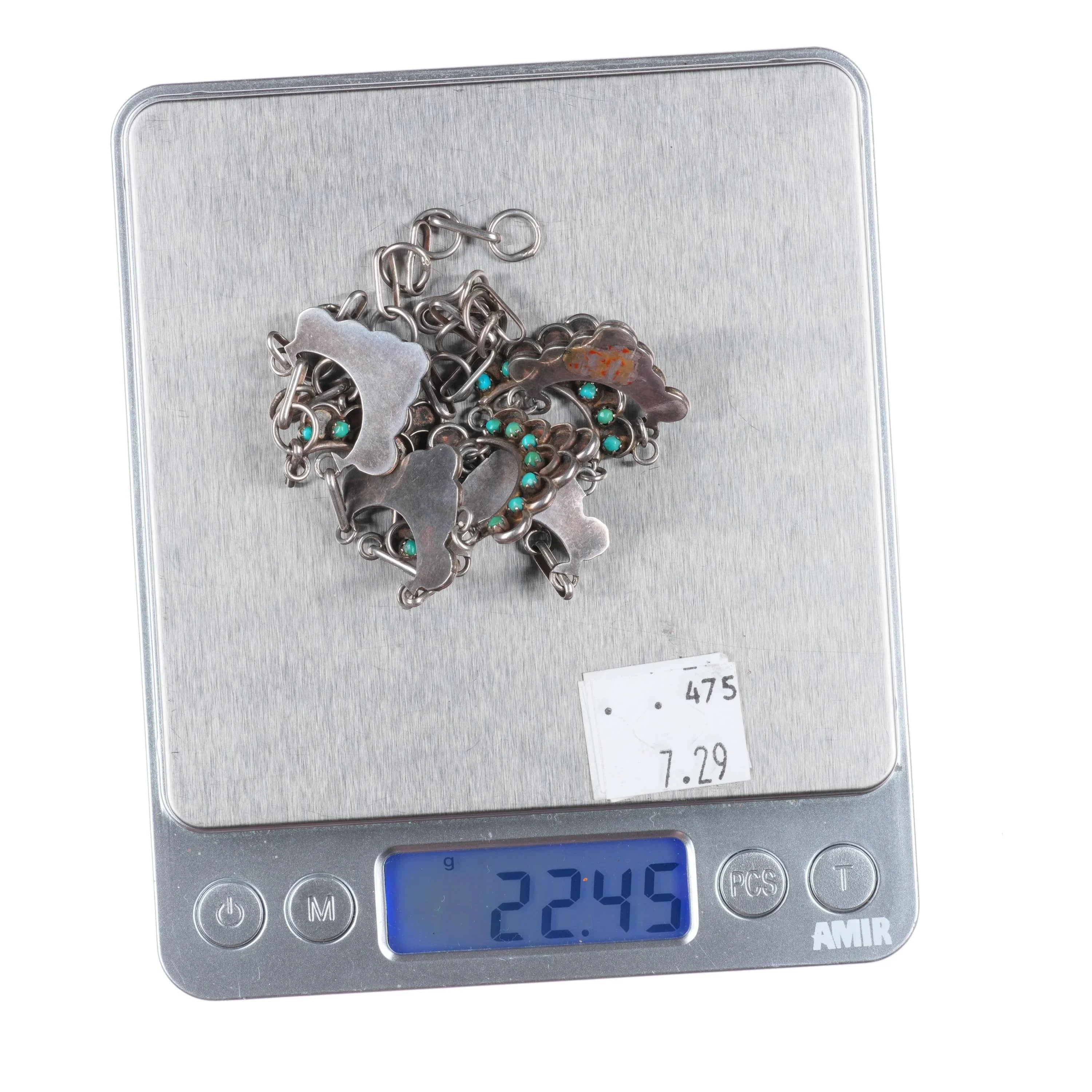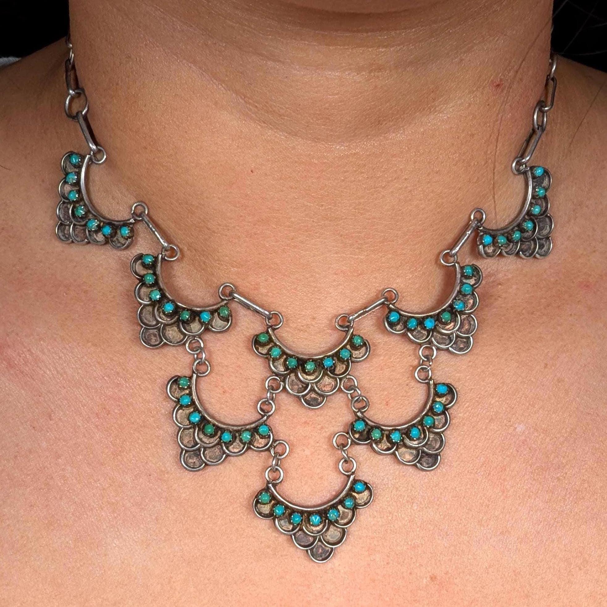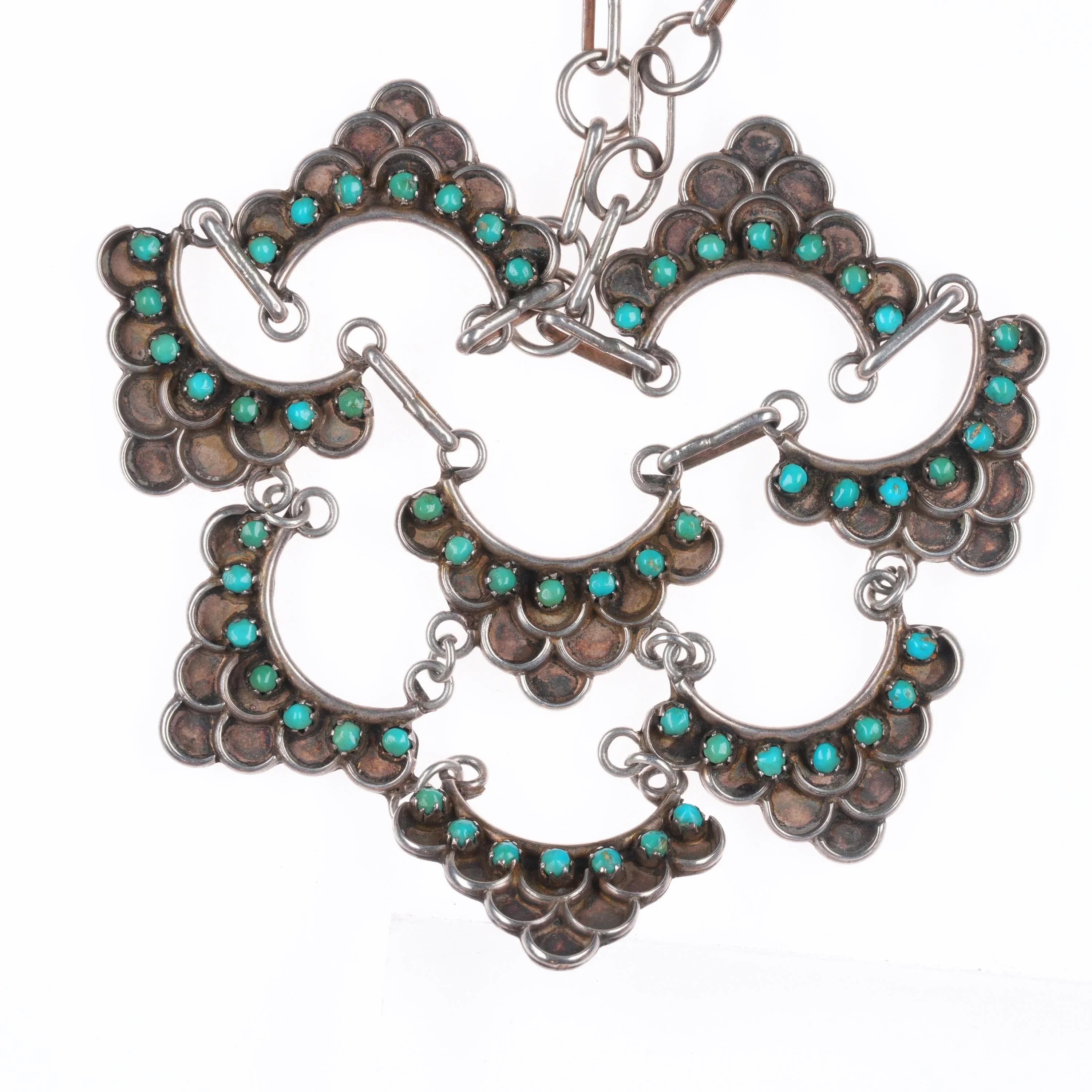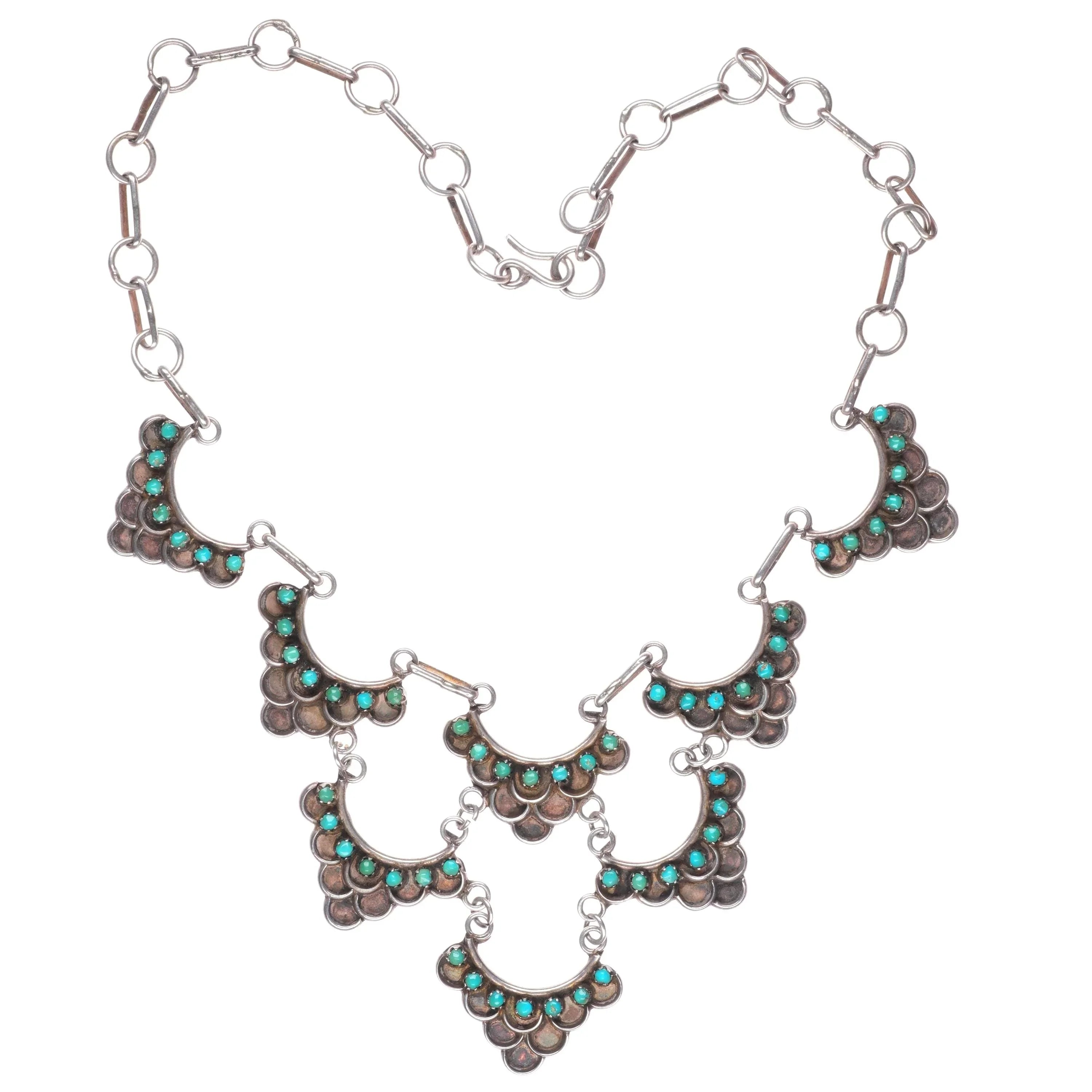 14.5" Vintage Zuni snake eye turquoise sterling silver link necklace