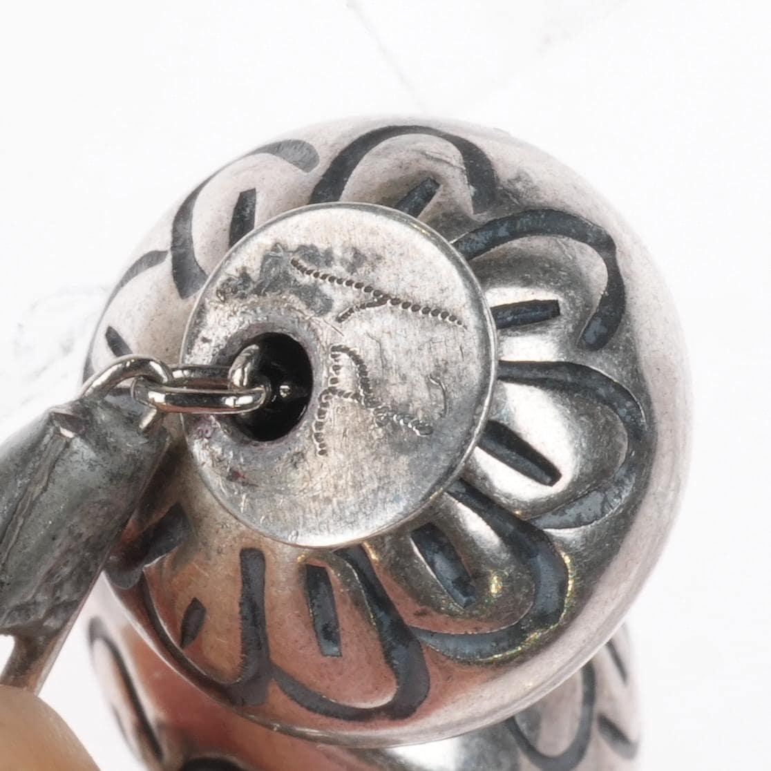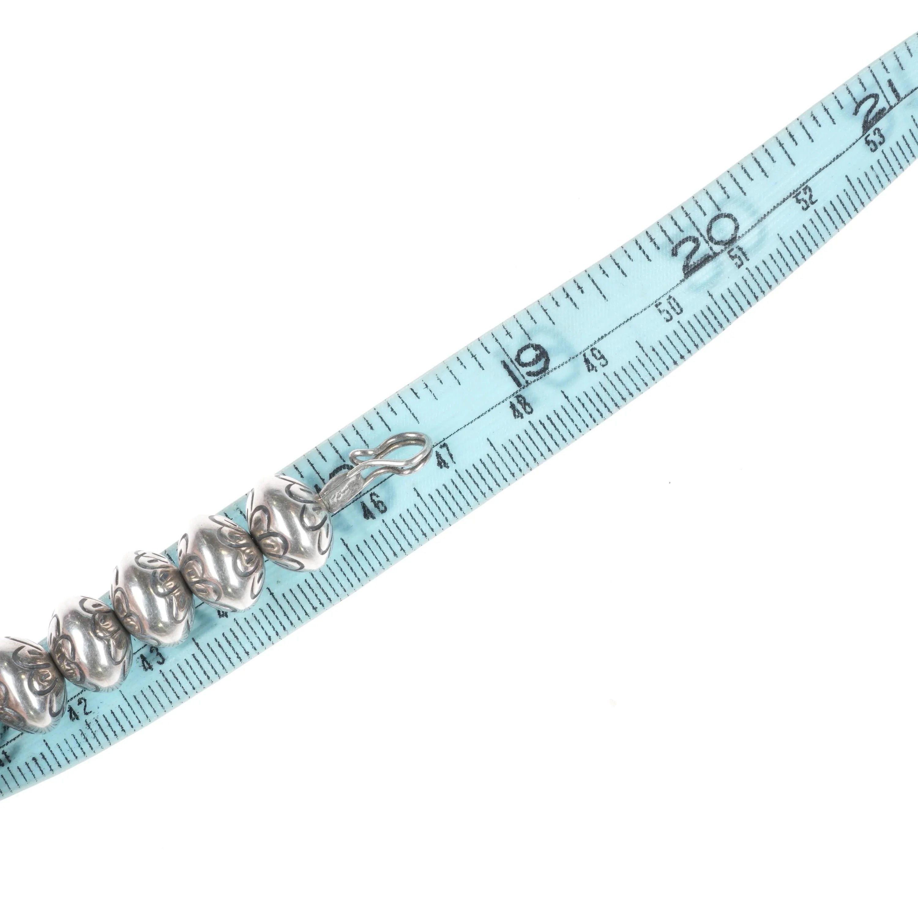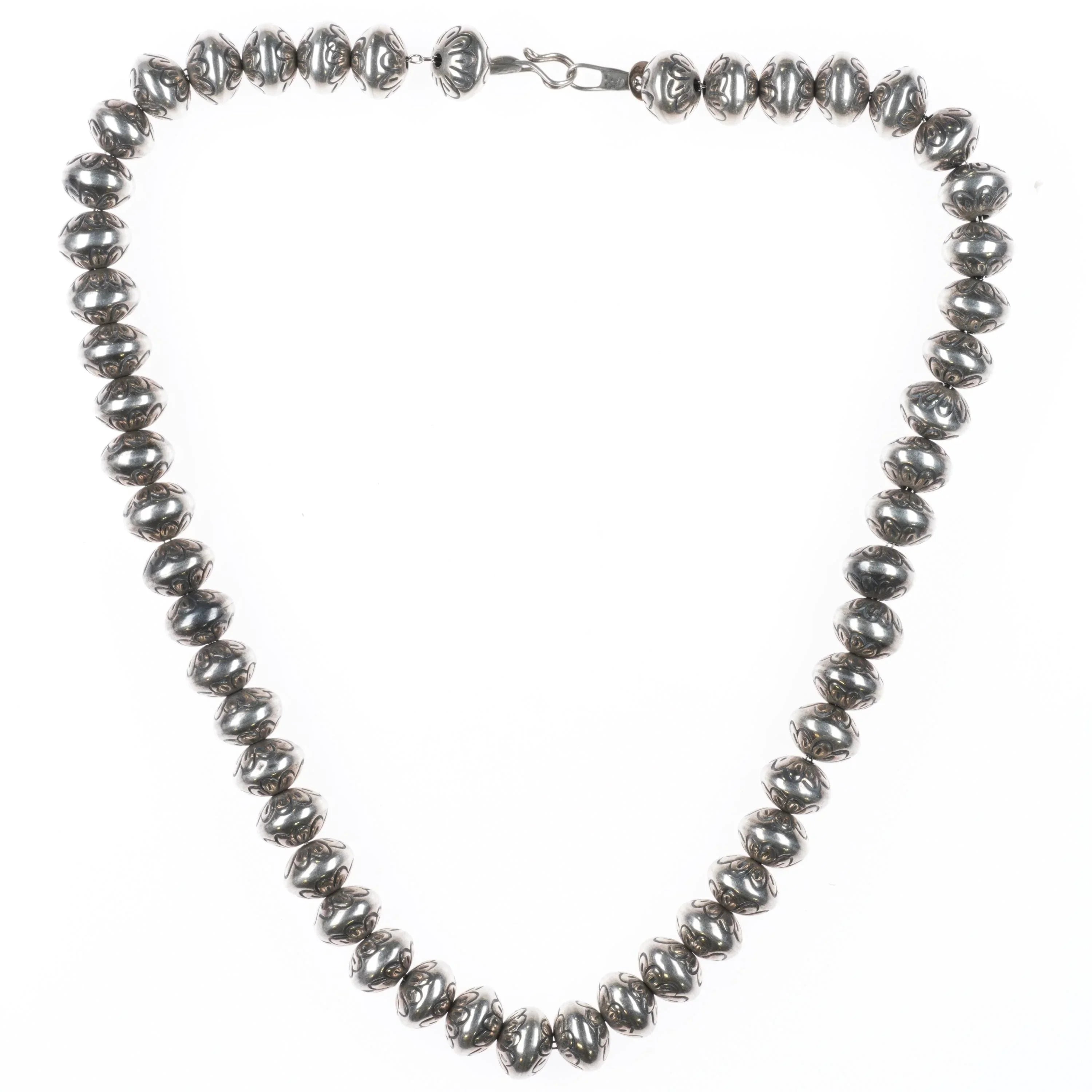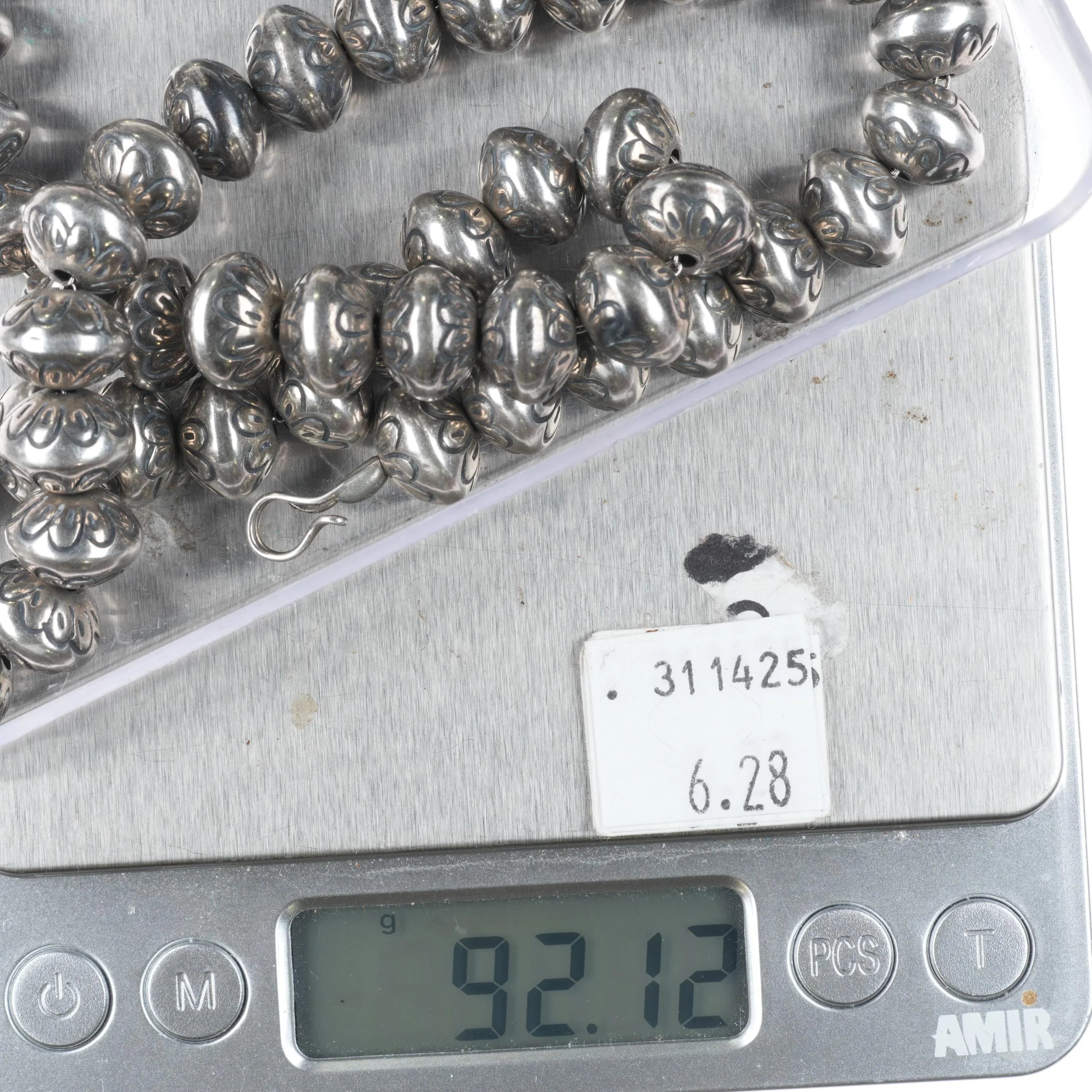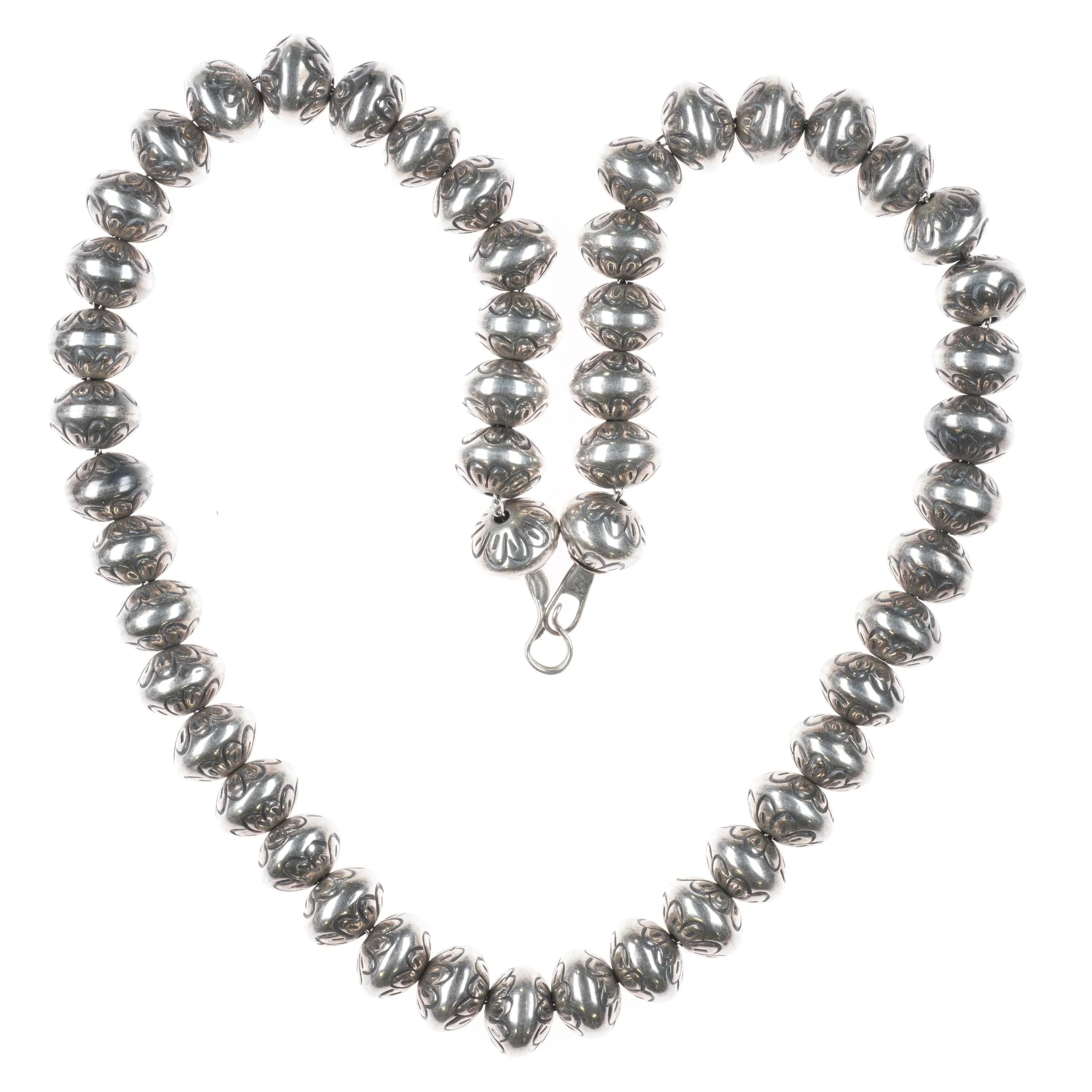 18.5" PY Navajo pearls beaded hand stamped handmade sterling silver necklace