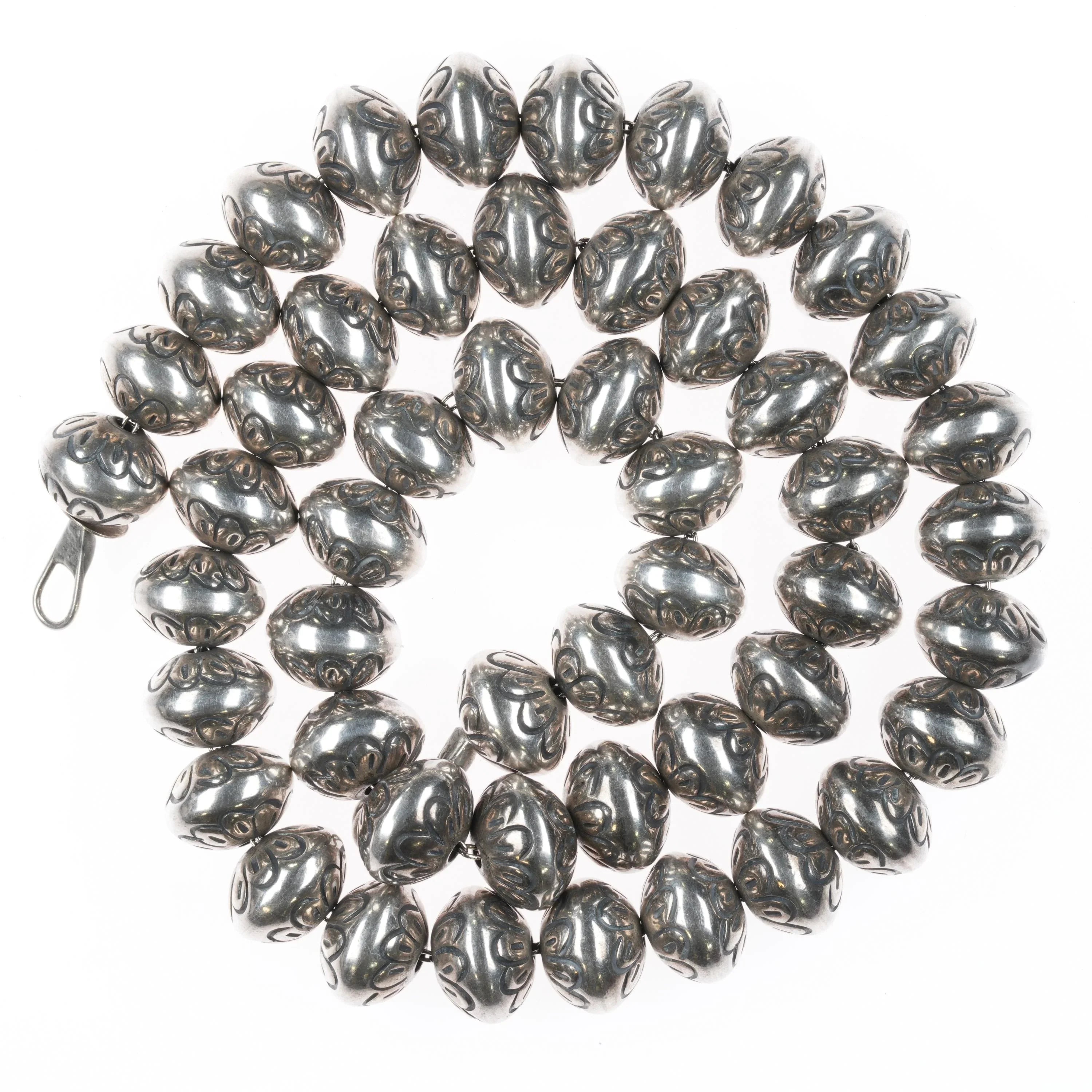 18.5" PY Navajo pearls beaded hand stamped handmade sterling silver necklace. Solid sterling silver, marked as shown, with weight and measurements in the pictures. Tested and guaranteed solid sterling silver. No damage. PY is likely P Yazzie, not sure who that is but the quality of workmanship is top notch.