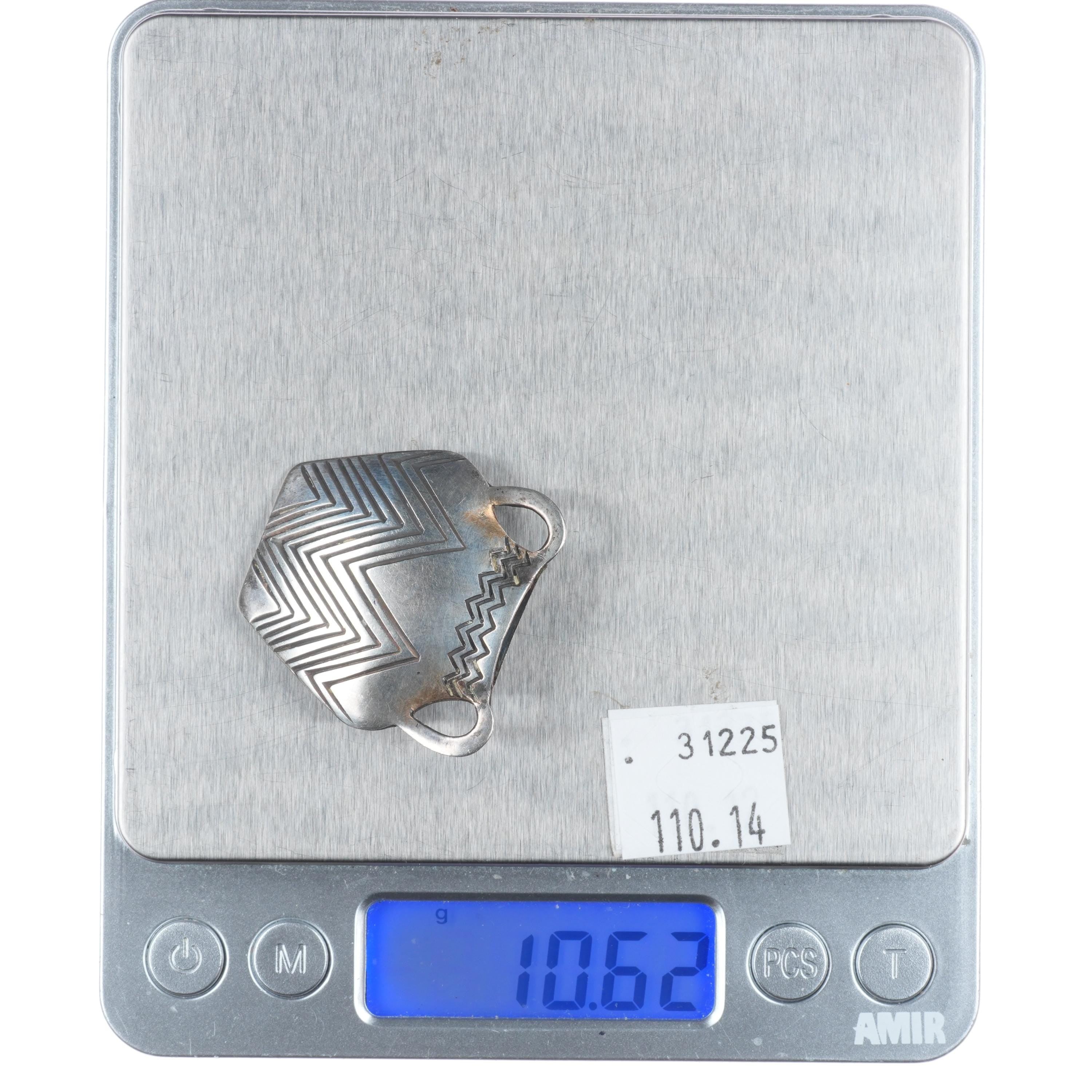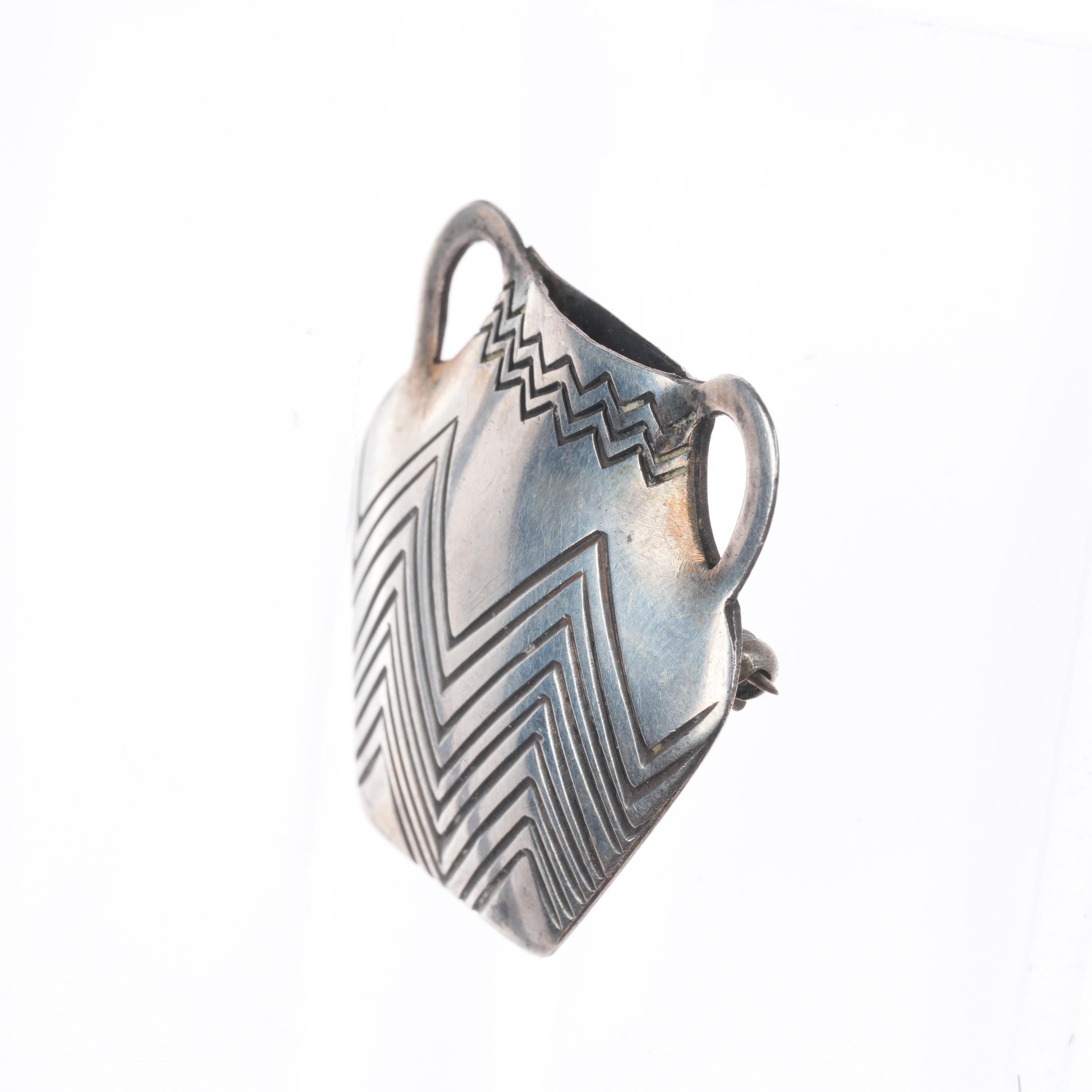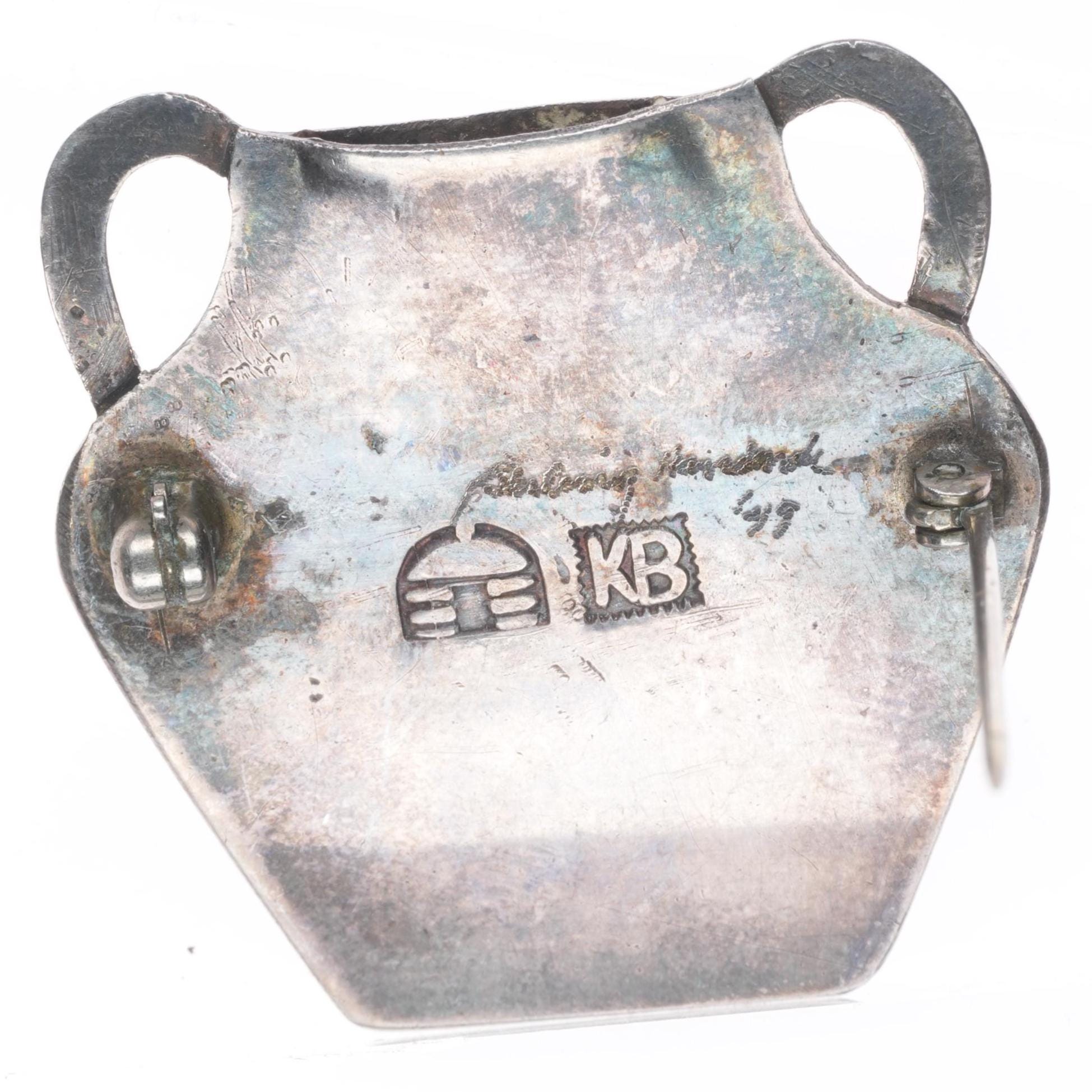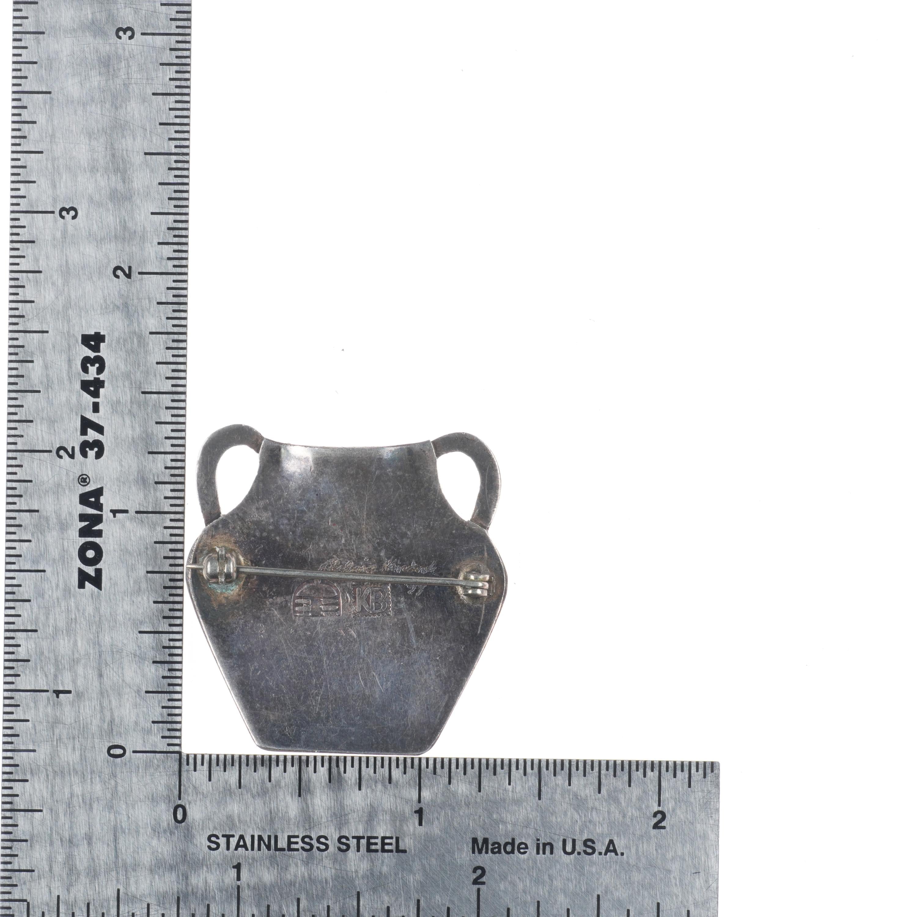 1949 Kenneth Begay Navajo sterling silver olla flower holder vase brooch/pin