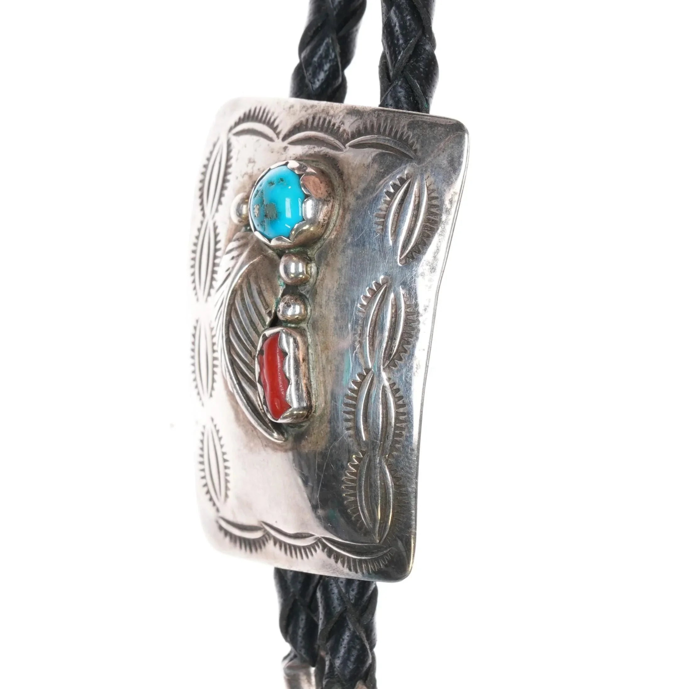 1980's Jeff Largo Navajo sterling, turquoise, and coral bolo tie