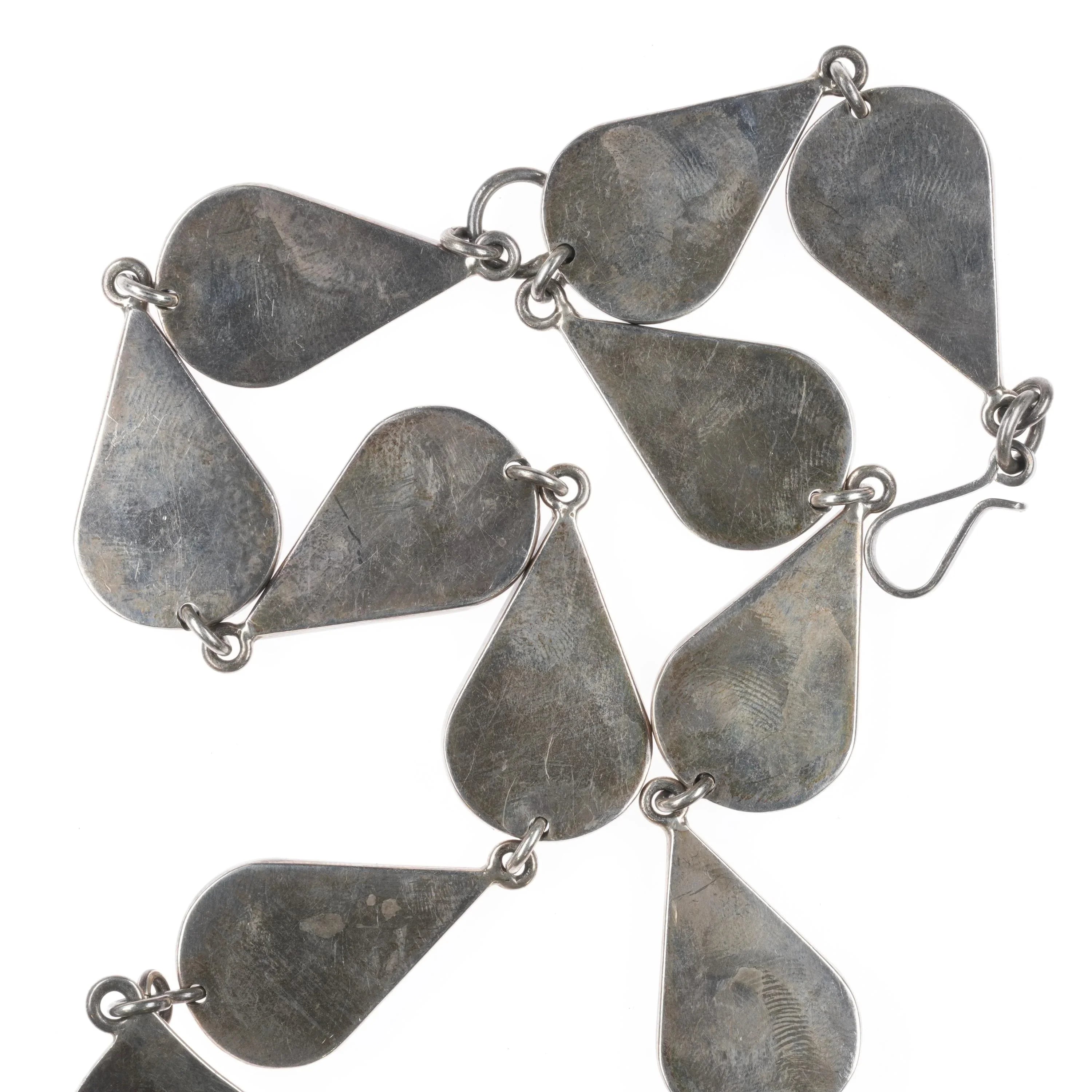 21" Retro Mexican Aztec style sterling silver turquoise chip inlay link necklace