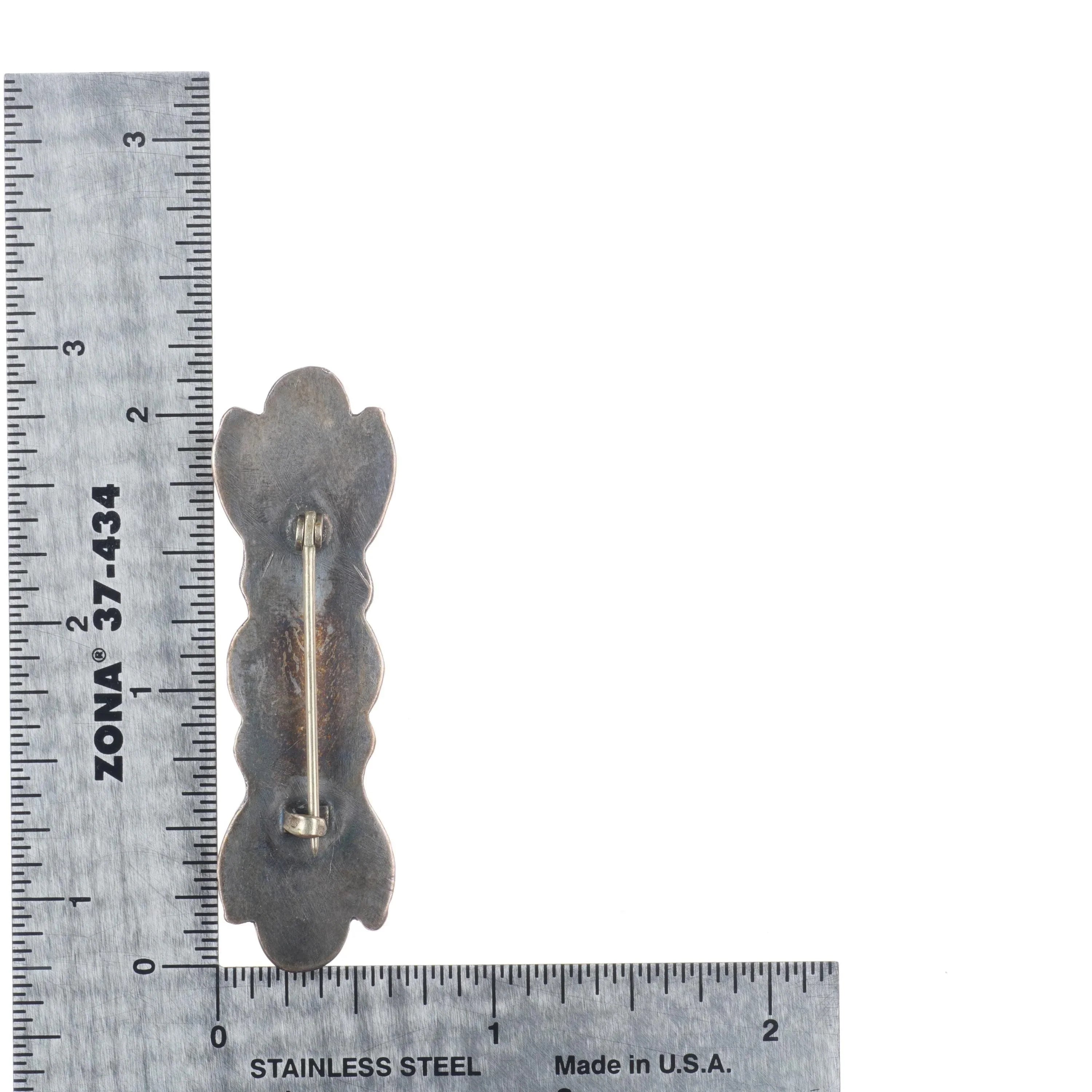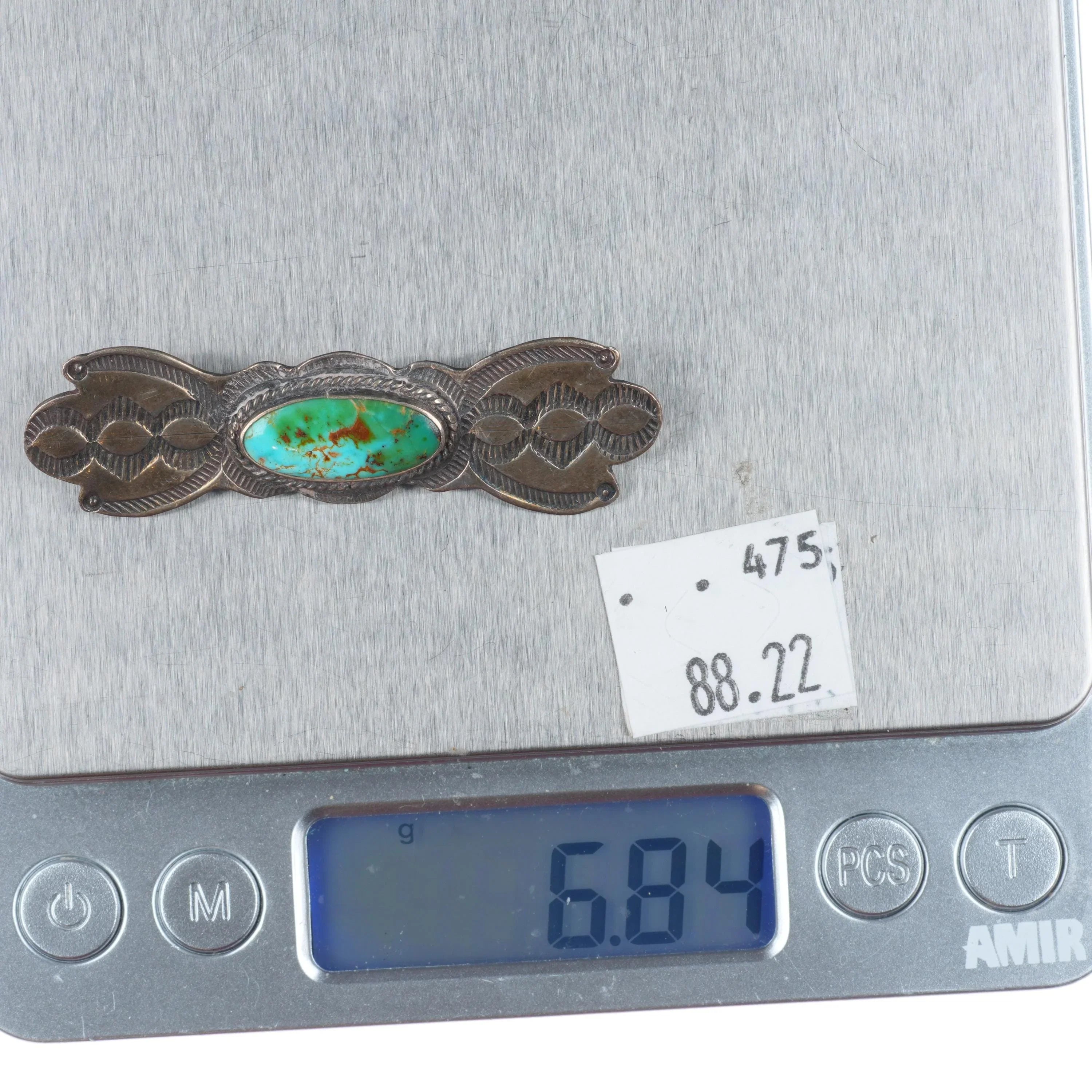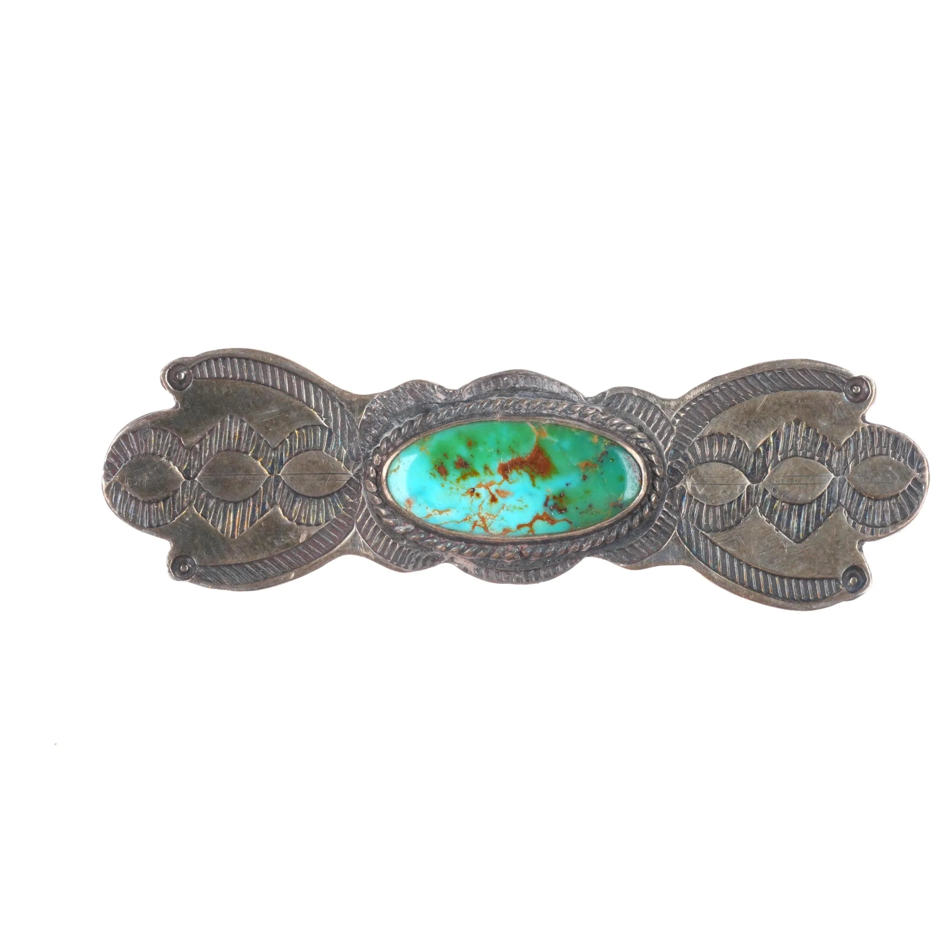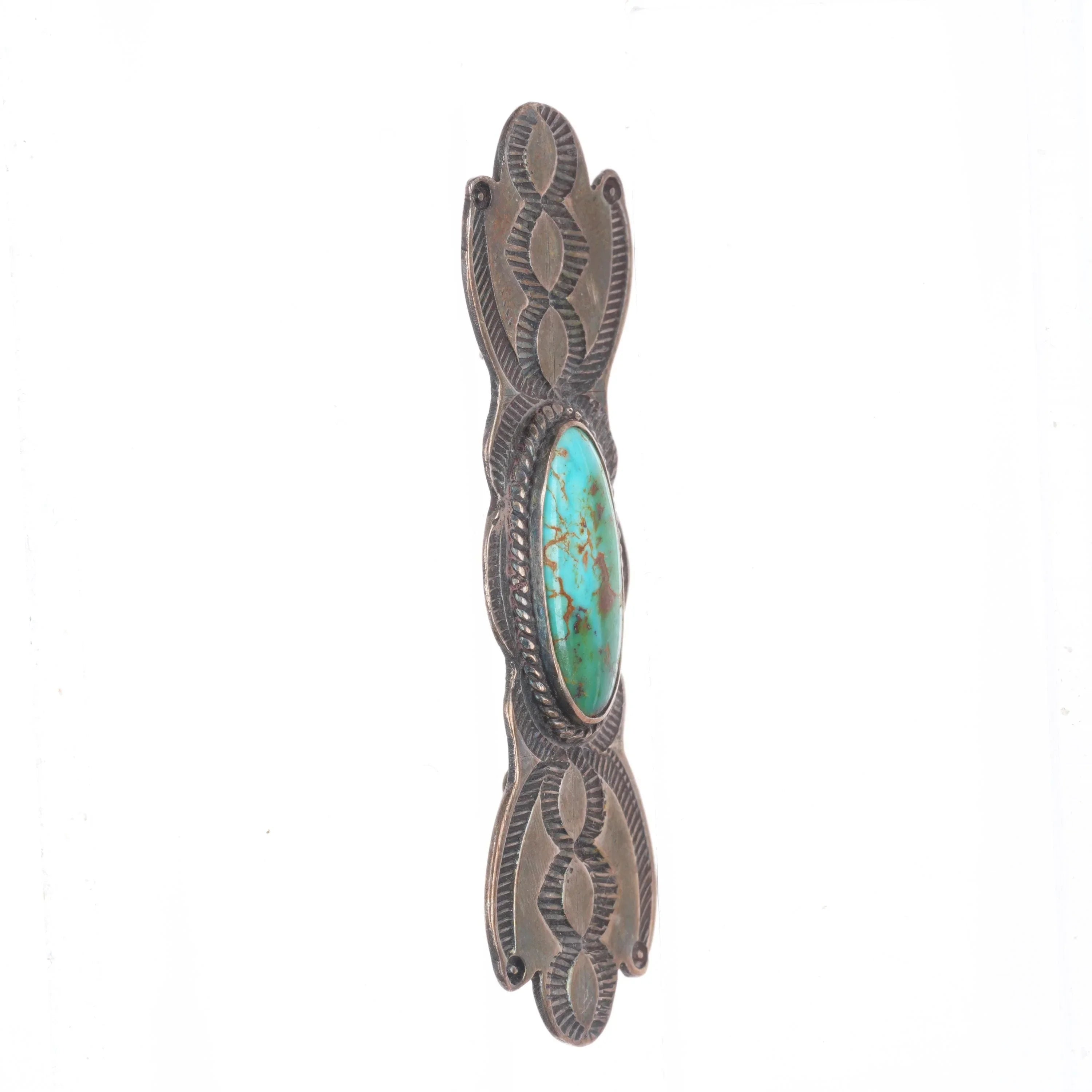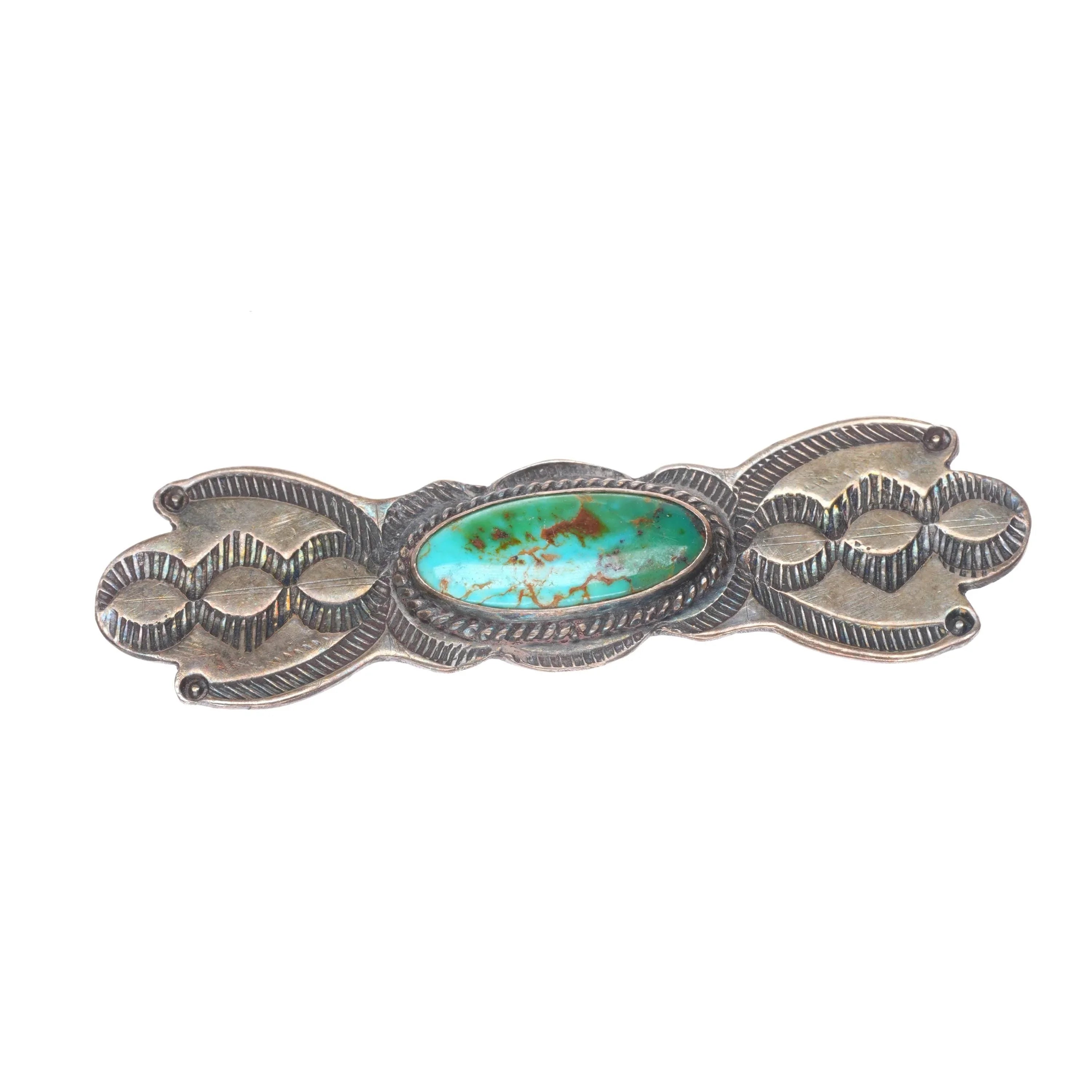 30's-40's Navajo sterling silver Royston turquoise hand stamped pin/brooch