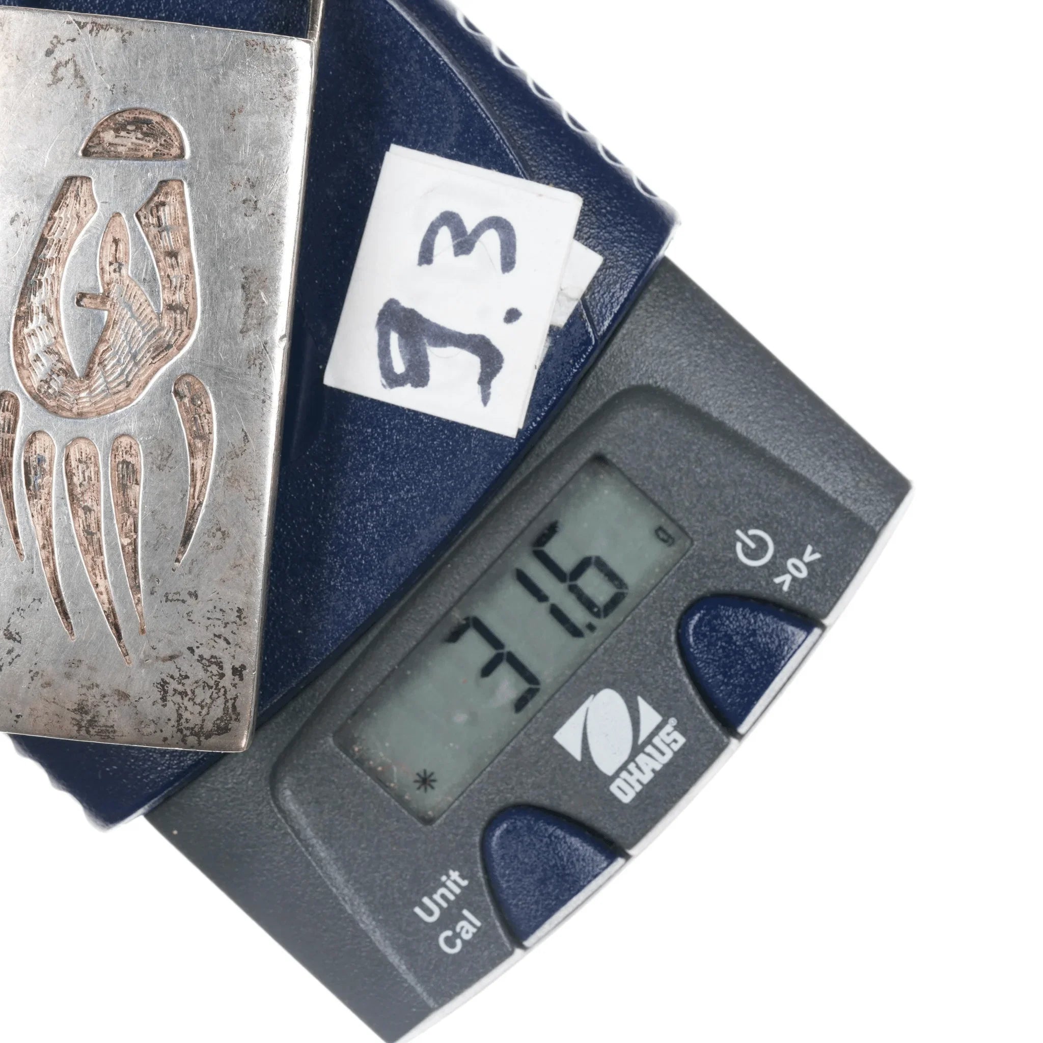 50's-60's Native American sterling overlay style belt buckle. Weight and measurements in pics.