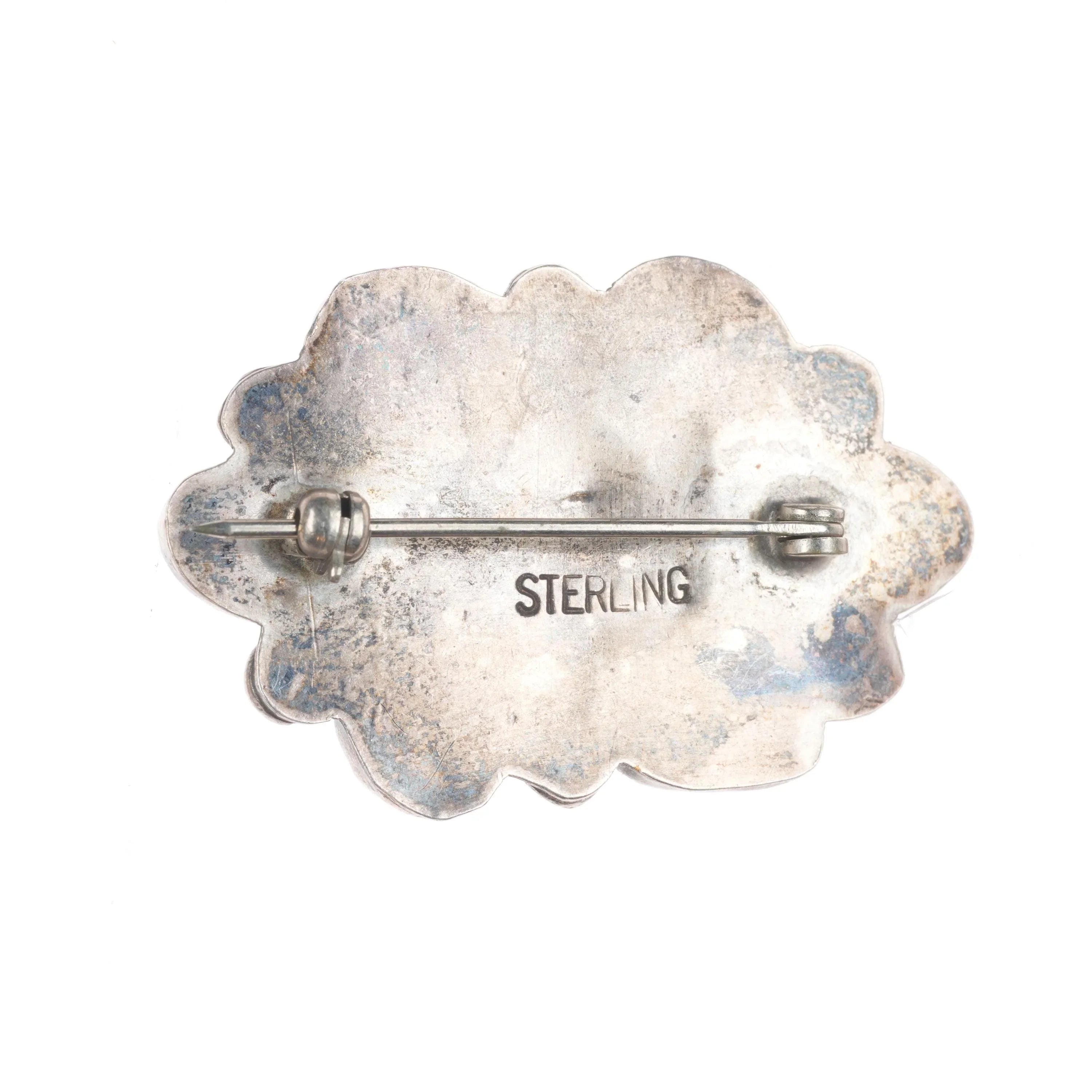 50‘s-60‘s Vintage Navajo sterling silver turquoise cluster pin/brooch. Weight and measurements in pics, all solid sterling. Tested and guaranteed solid sterling silver. Circa third quarter of the 20th century.