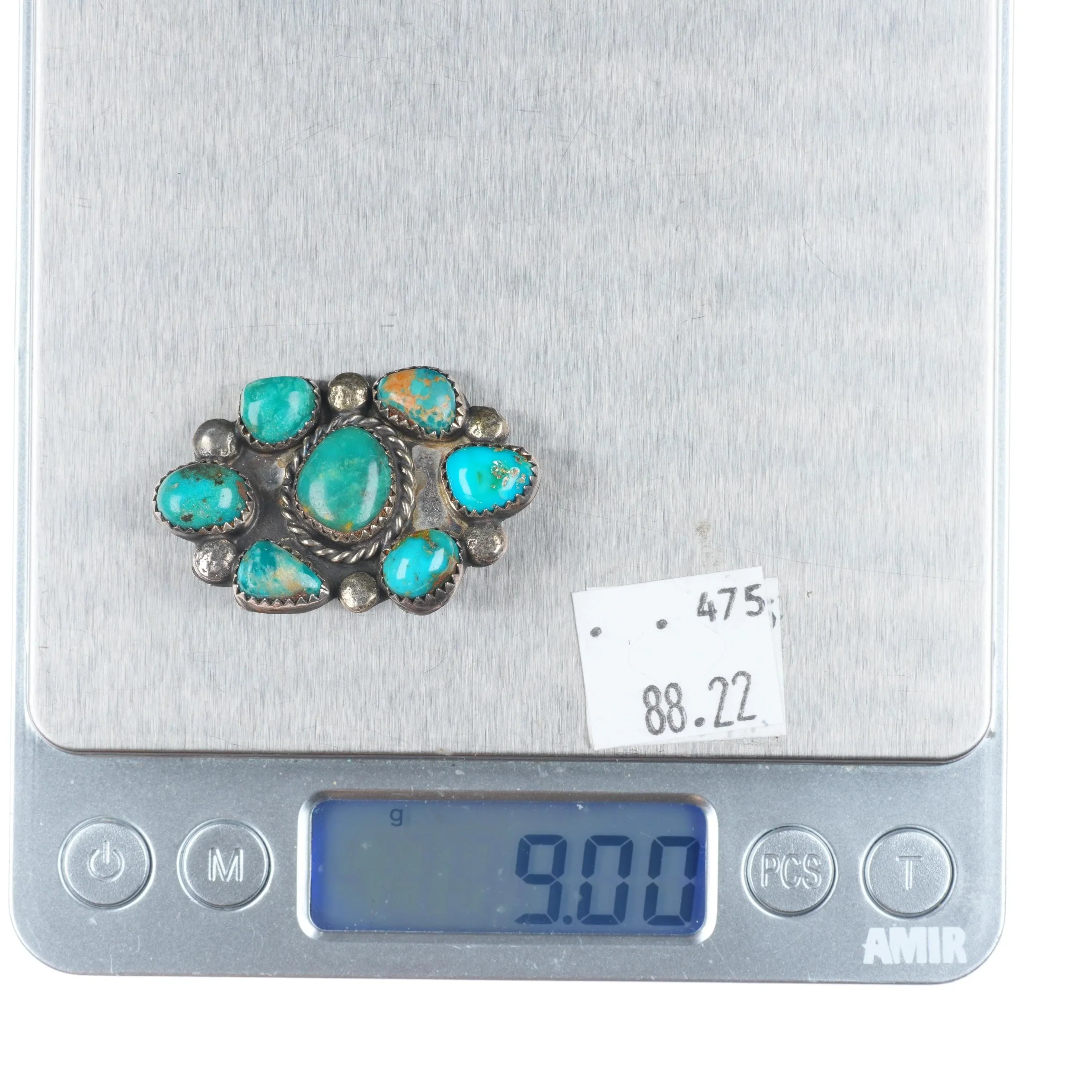 50's-60's Vintage Navajo sterling silver turquoise cluster pin/brooch