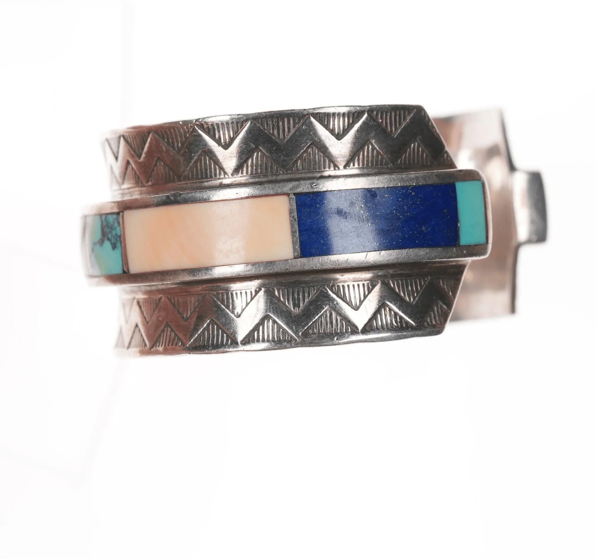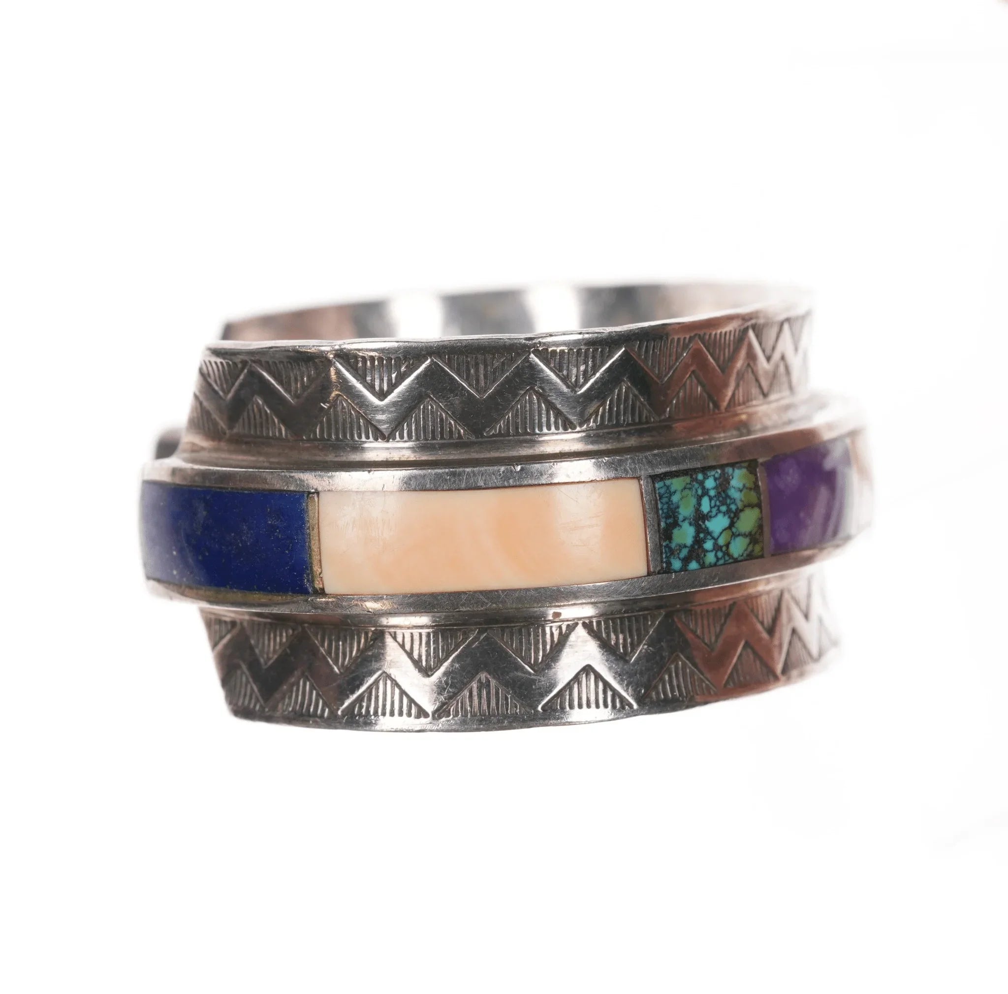 6.25" Benny Armijo Navajo high grade mult-stone inlay modernist sterling cuff bracelet. All high grade natural material with no issues.. No damage or issues.