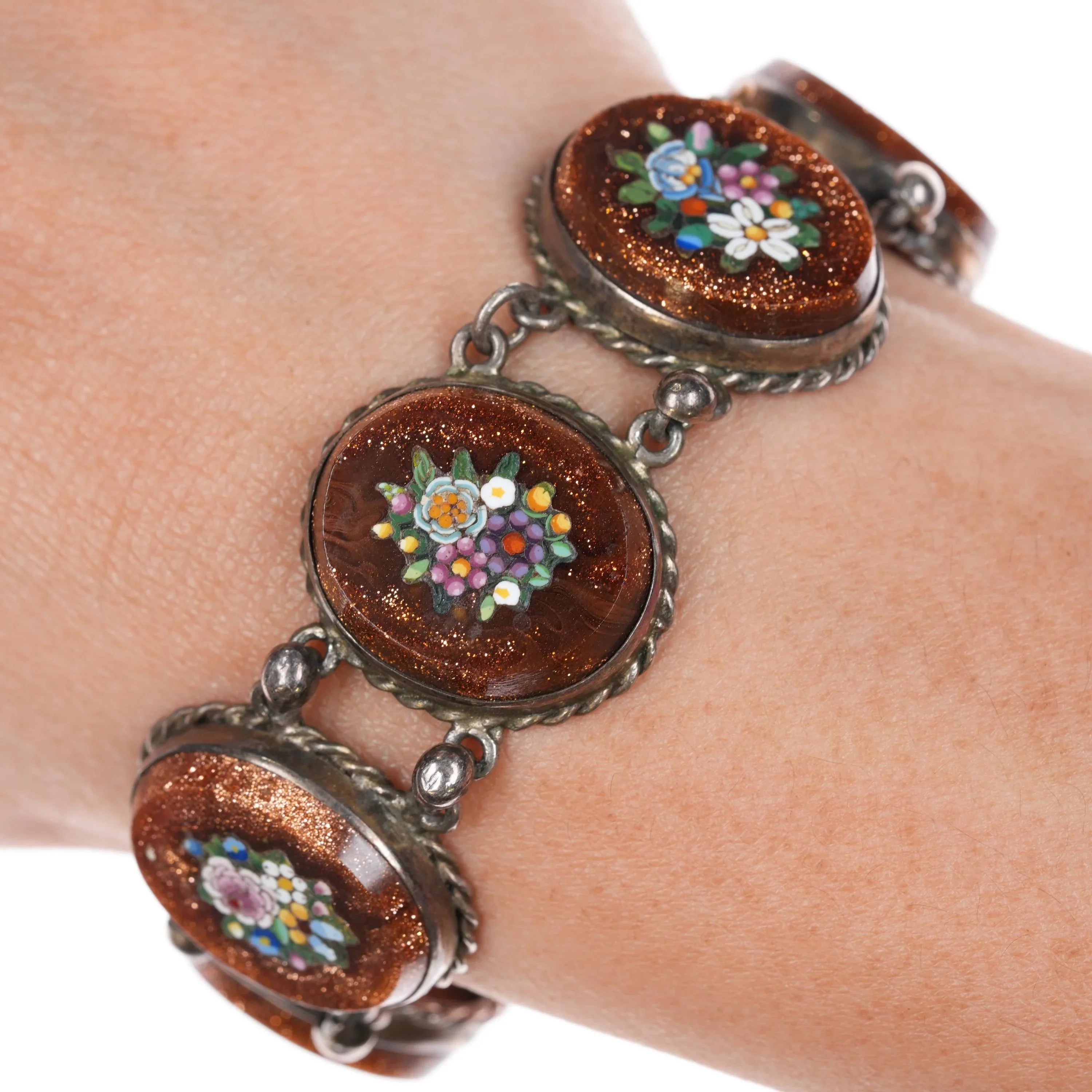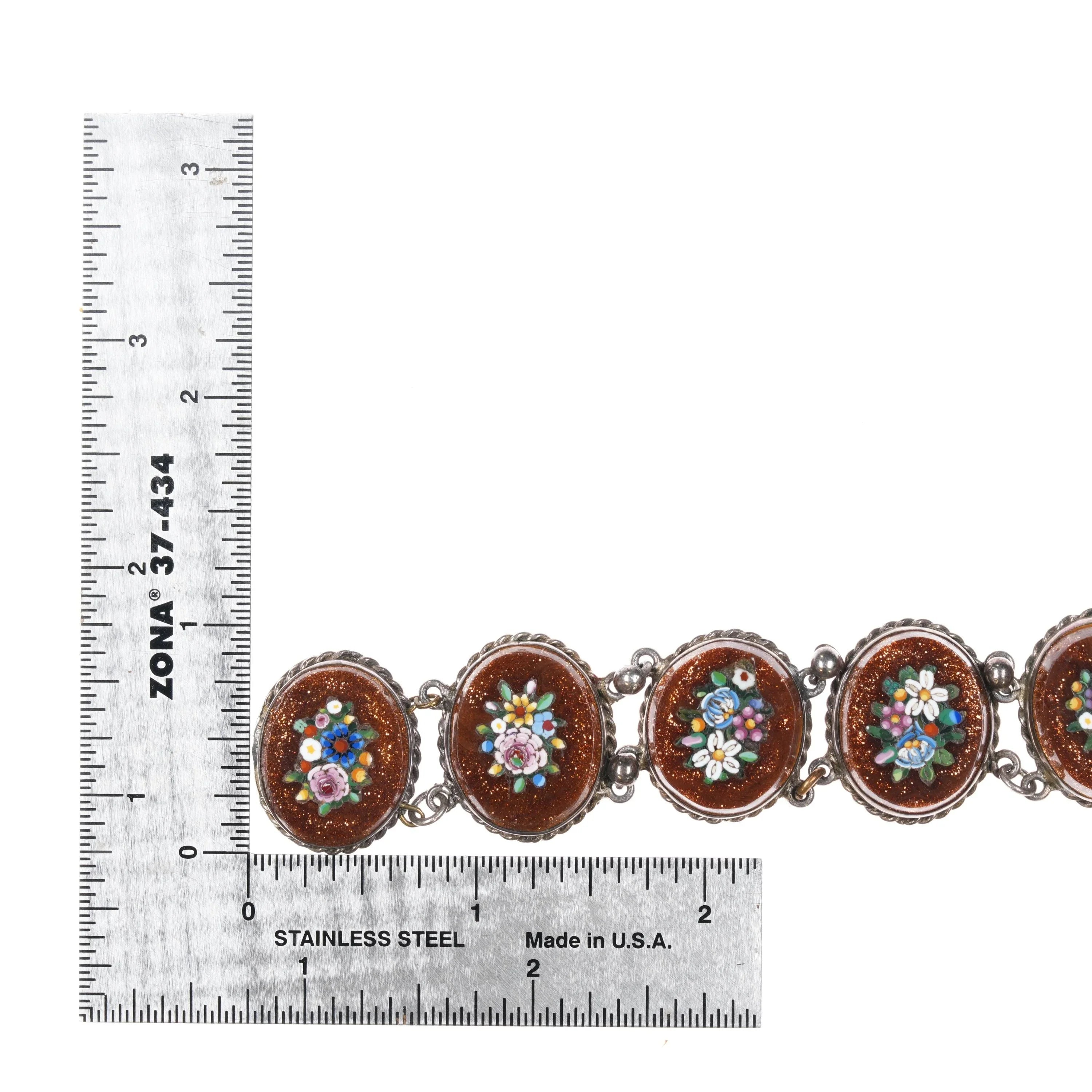 6.25" Antique Italian sterling silver Micro-Mosaic art glass link bracelet