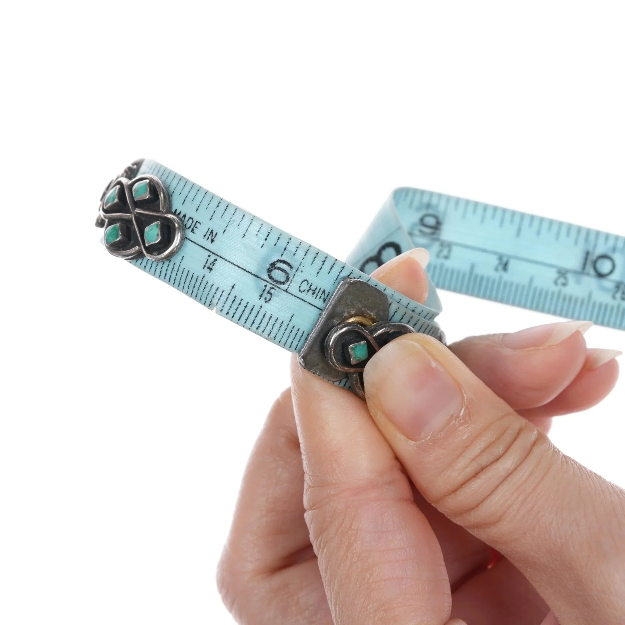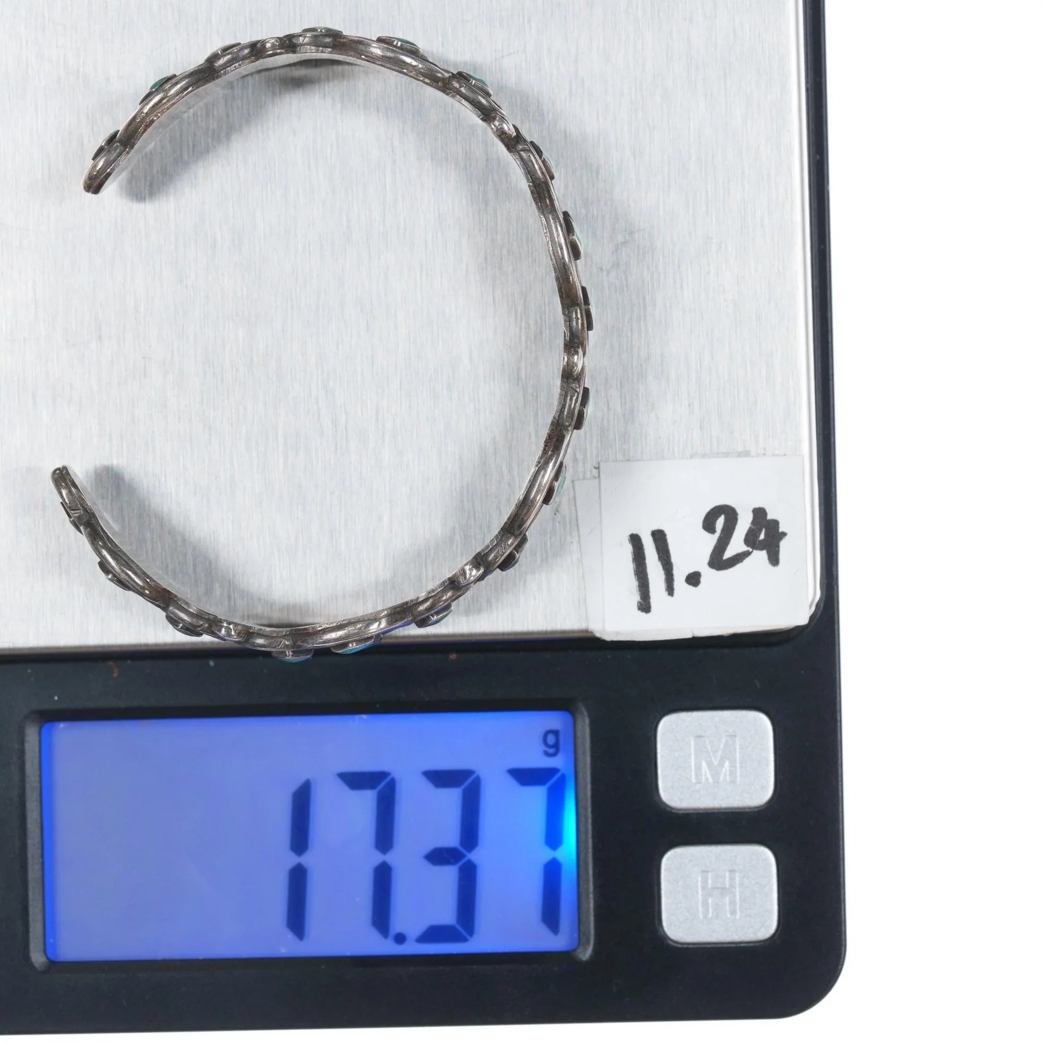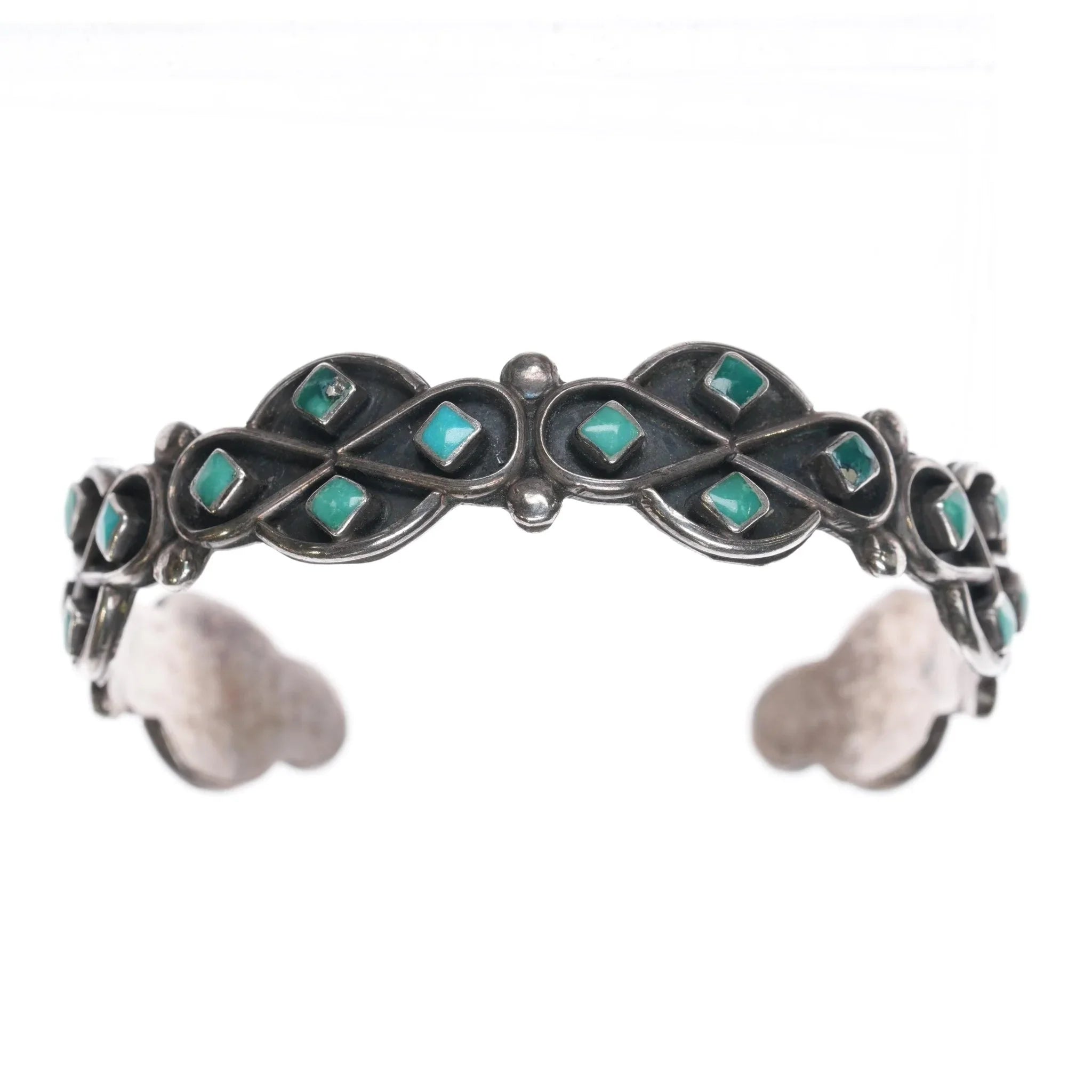 6.25" c1950‘s Vintage Zuni sterling and turquoise inlay shadowbox cuff bracelet. Weight and measurements in pics. Solid sterling with no markings, third quarter of the 20th century.