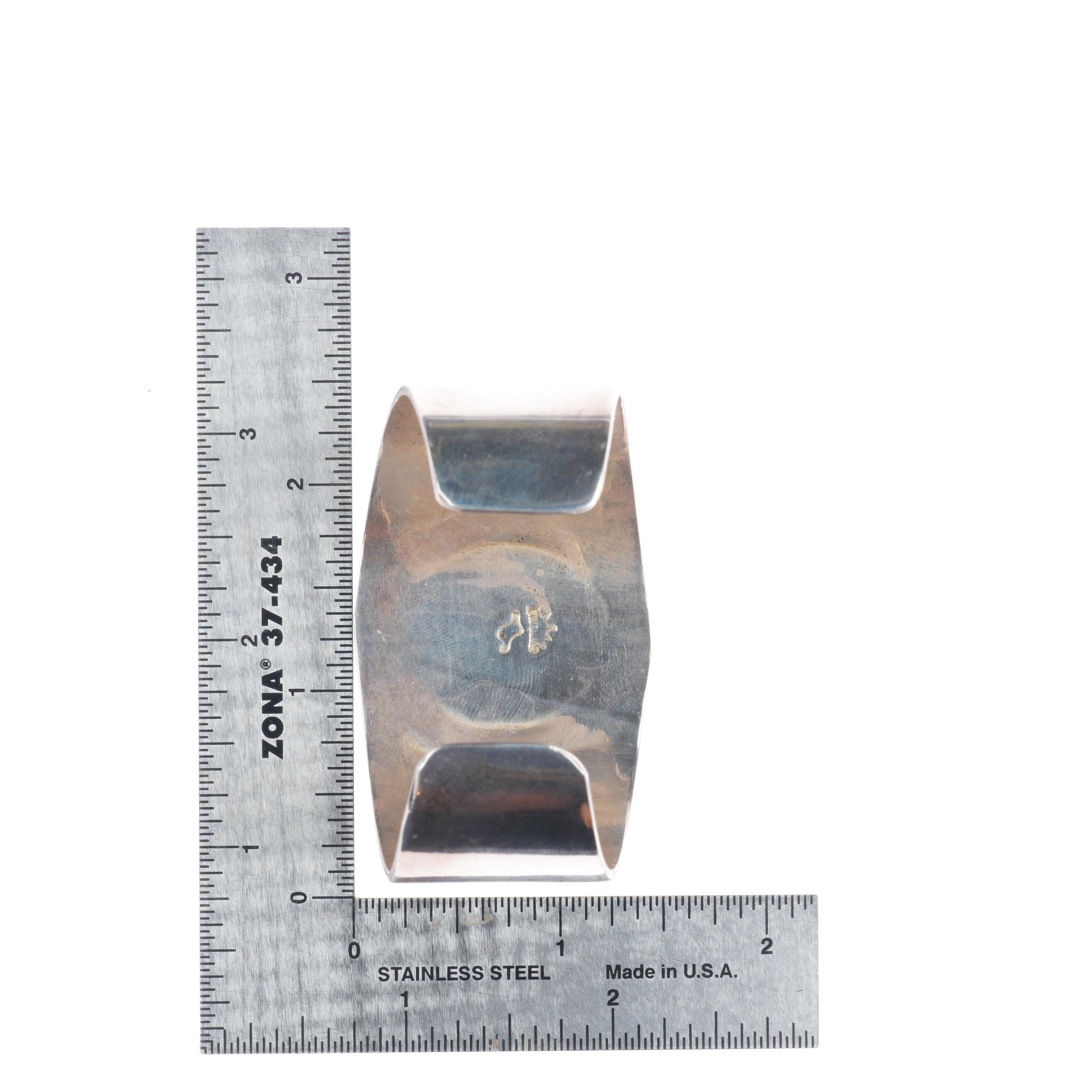 6.25" Vintage Hopi sterling silver Kokopelli and sunface cuff bracelet. Tested and guaranteed solid sterling silver with weight and measurements... Read more