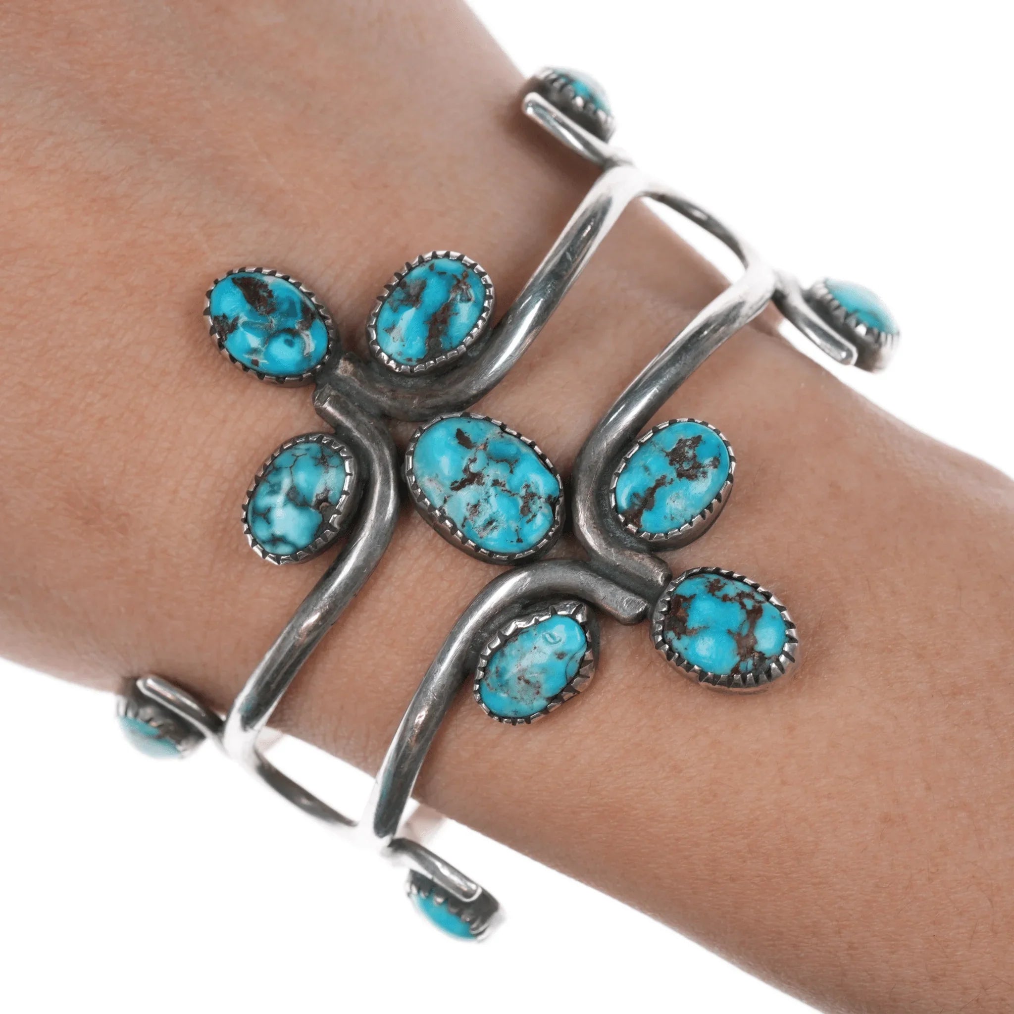 All precious metals are tested and guaranteed. A Native American jewelry piece referred to as "silver" or "ingot" is guaranteed to be at least 90% silver. I rarely use the word "sterling" when referring to older Native American silver or really any older silver jewelry as silver contents vary and "sterling" is 92.5% silver. No older jewelry is going to be exactly 92.5% silver, some a little over, some a little under. It wasn't an exact thing with handmade jewelry. I've seen thousands of pieces xrf'd to prove this. Bracelets are photographed on a 6" women's wrist.