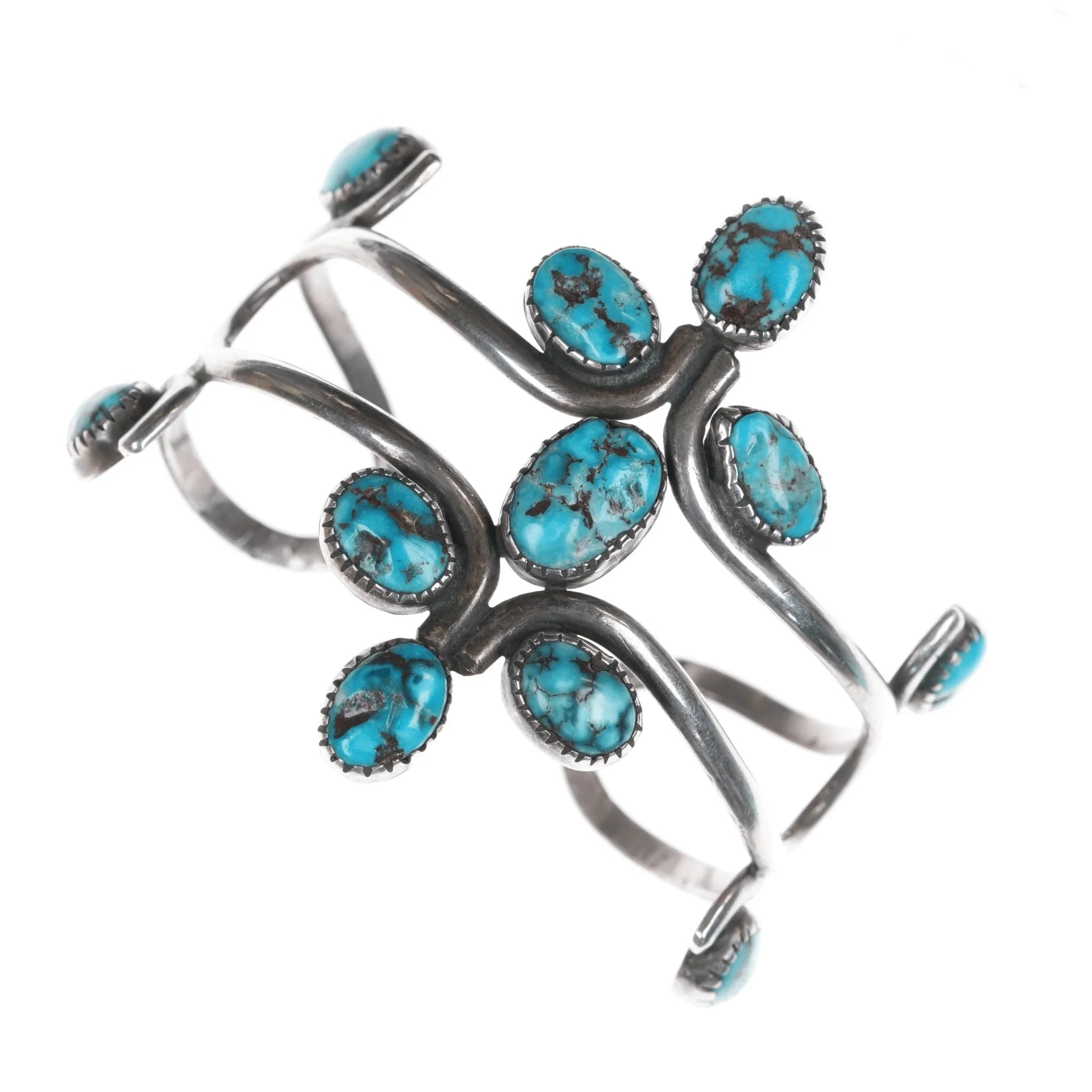 6.25" Vintage Native American silver wire cuff bracelet with turquoise