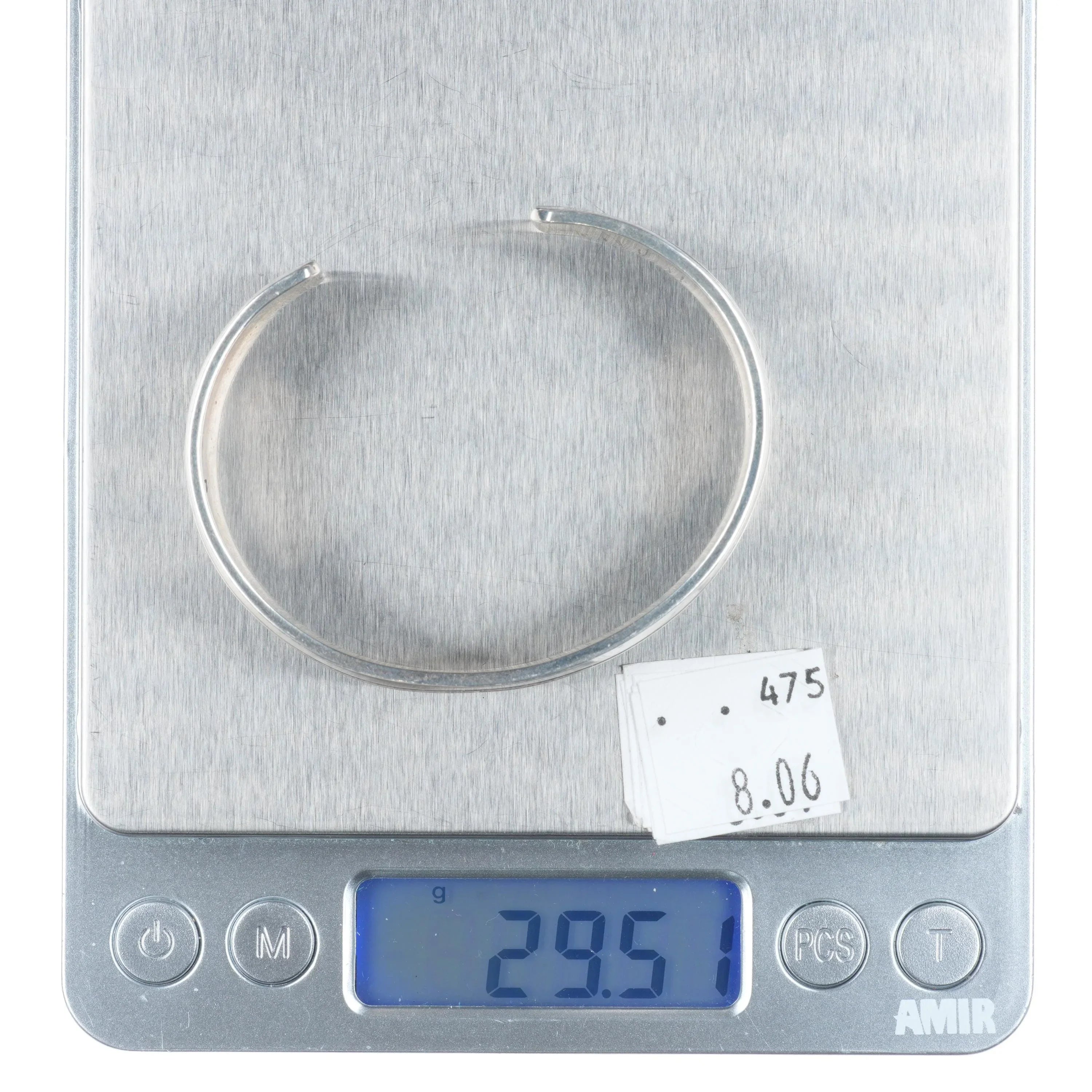 6.25" Vintage Navajo sterling silver banded modernist cuff bracelet D feather