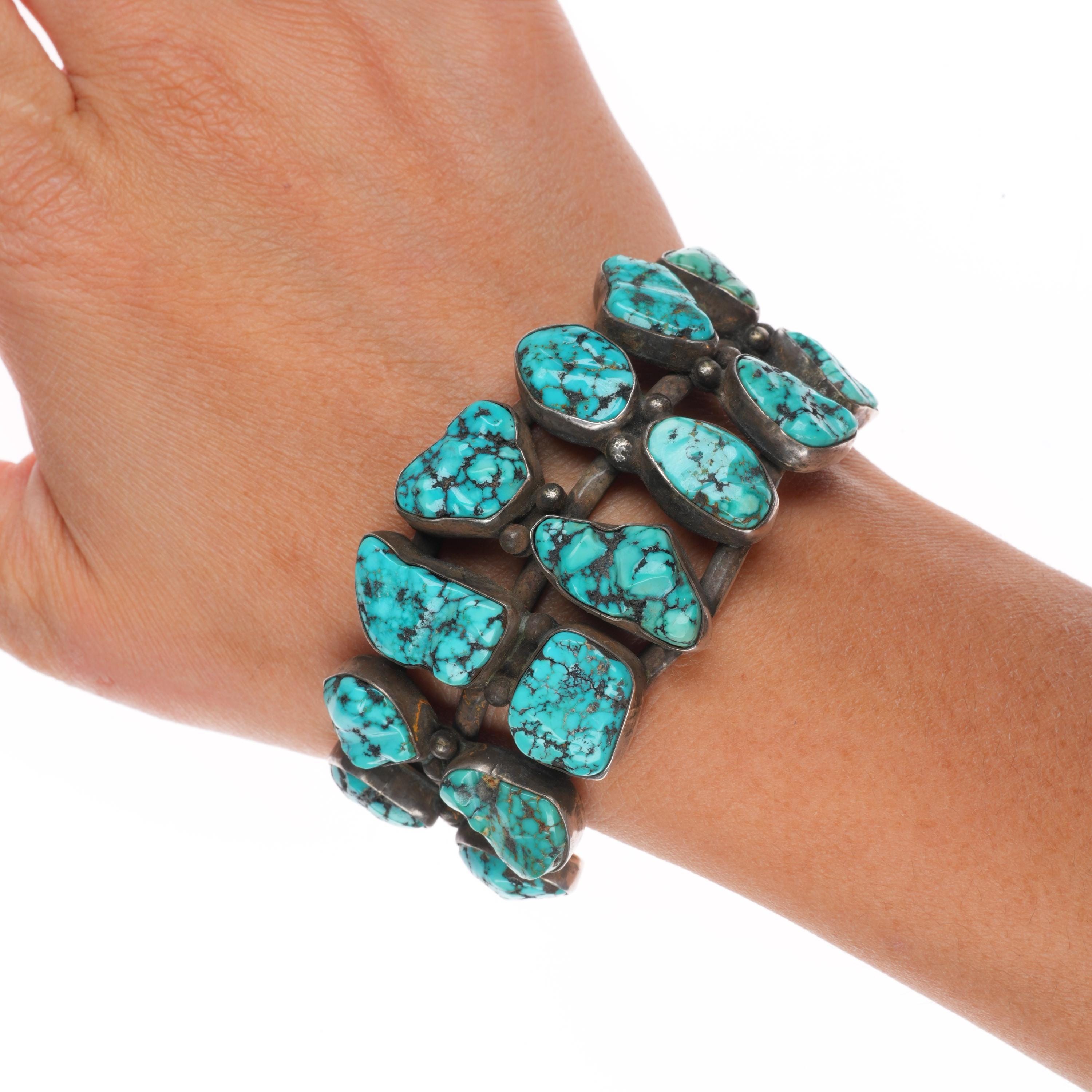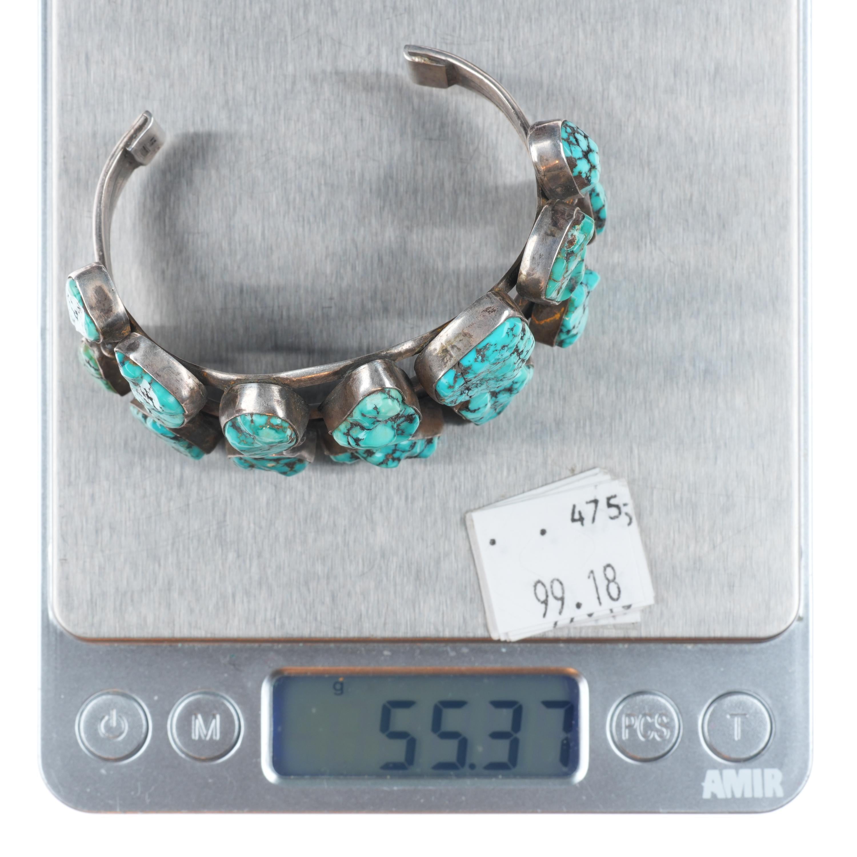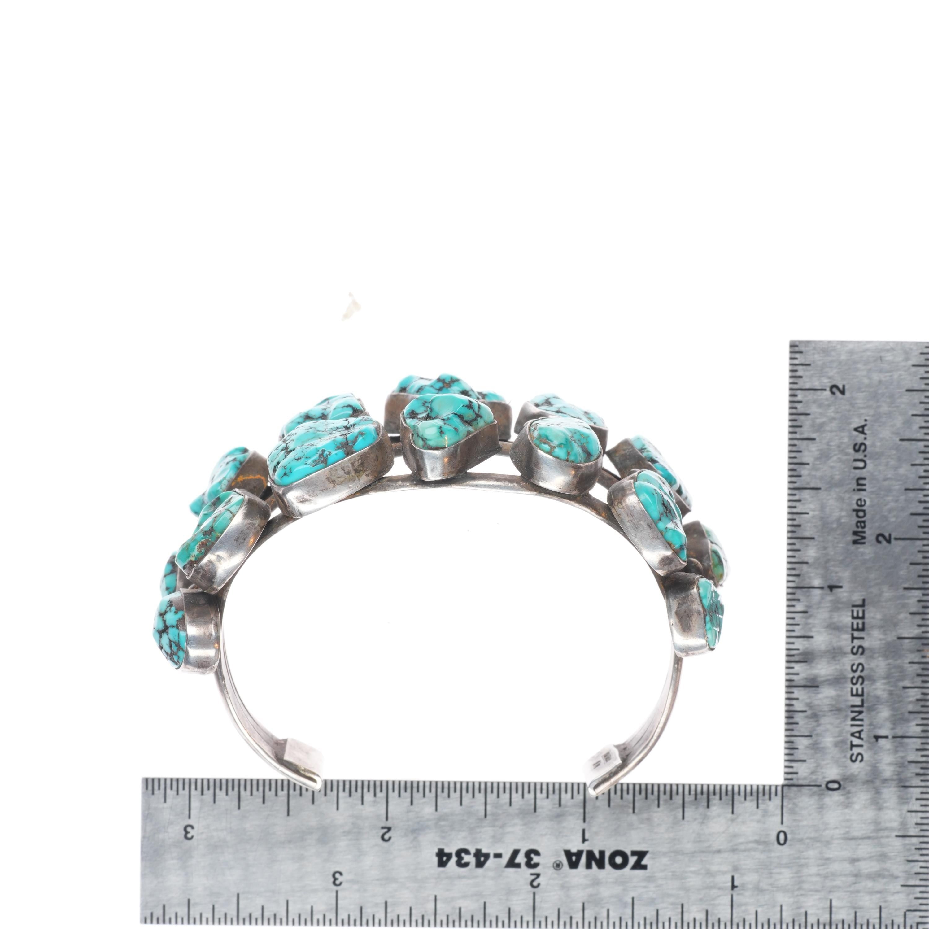 6.25" Vintage NS Zuni sterling silver carved spiderweb turquoise cuff bracelet