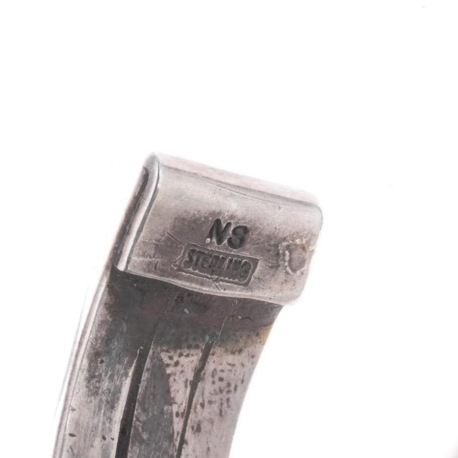 6.25" Vintage NS Zuni sterling silver carved spiderweb turquoise cuff bracelet. Tested and guaranteed solid sterling silver with weight and measurements in pictures. Circa third quarter of the 20th century. Unknown artist, attributed to Zuni tribe.