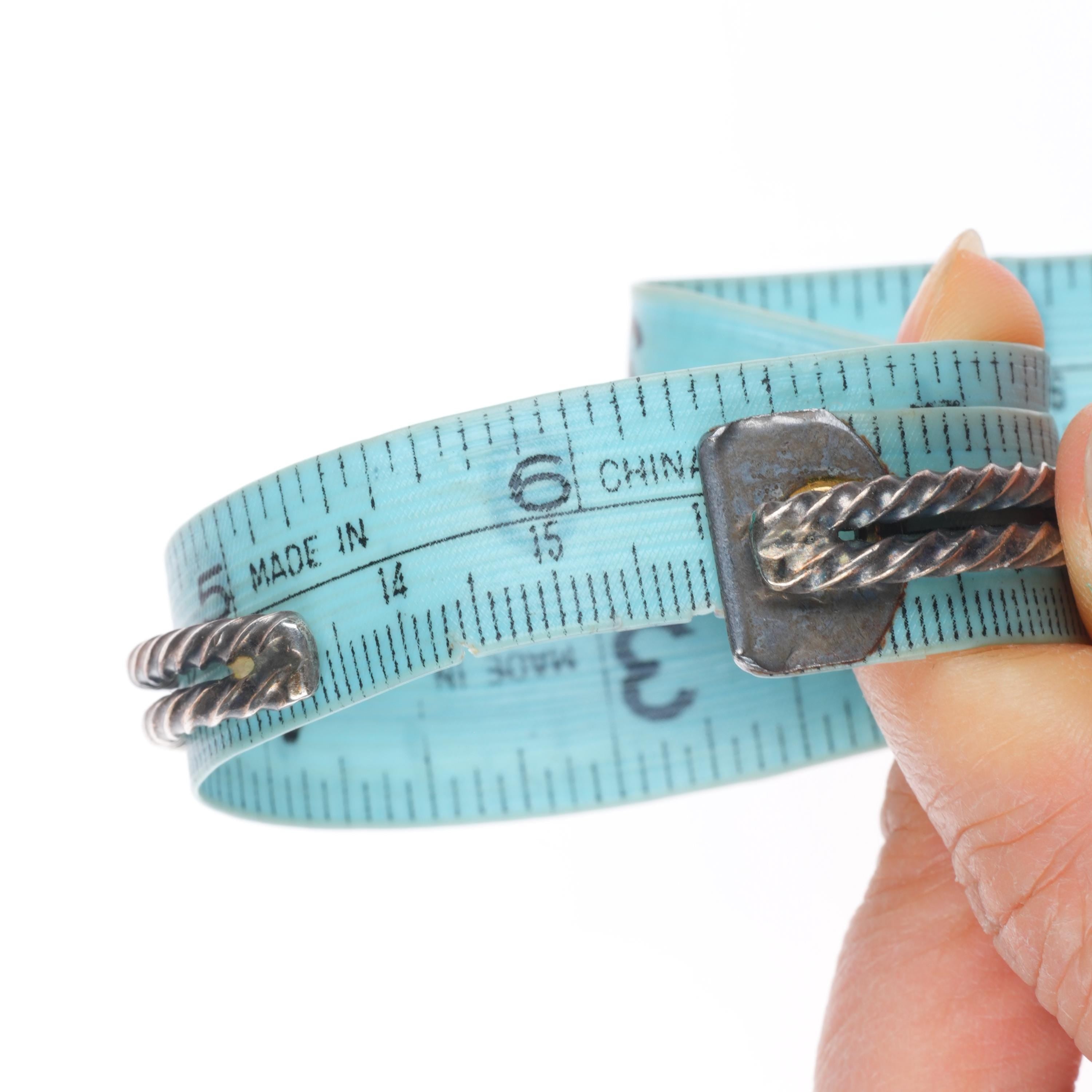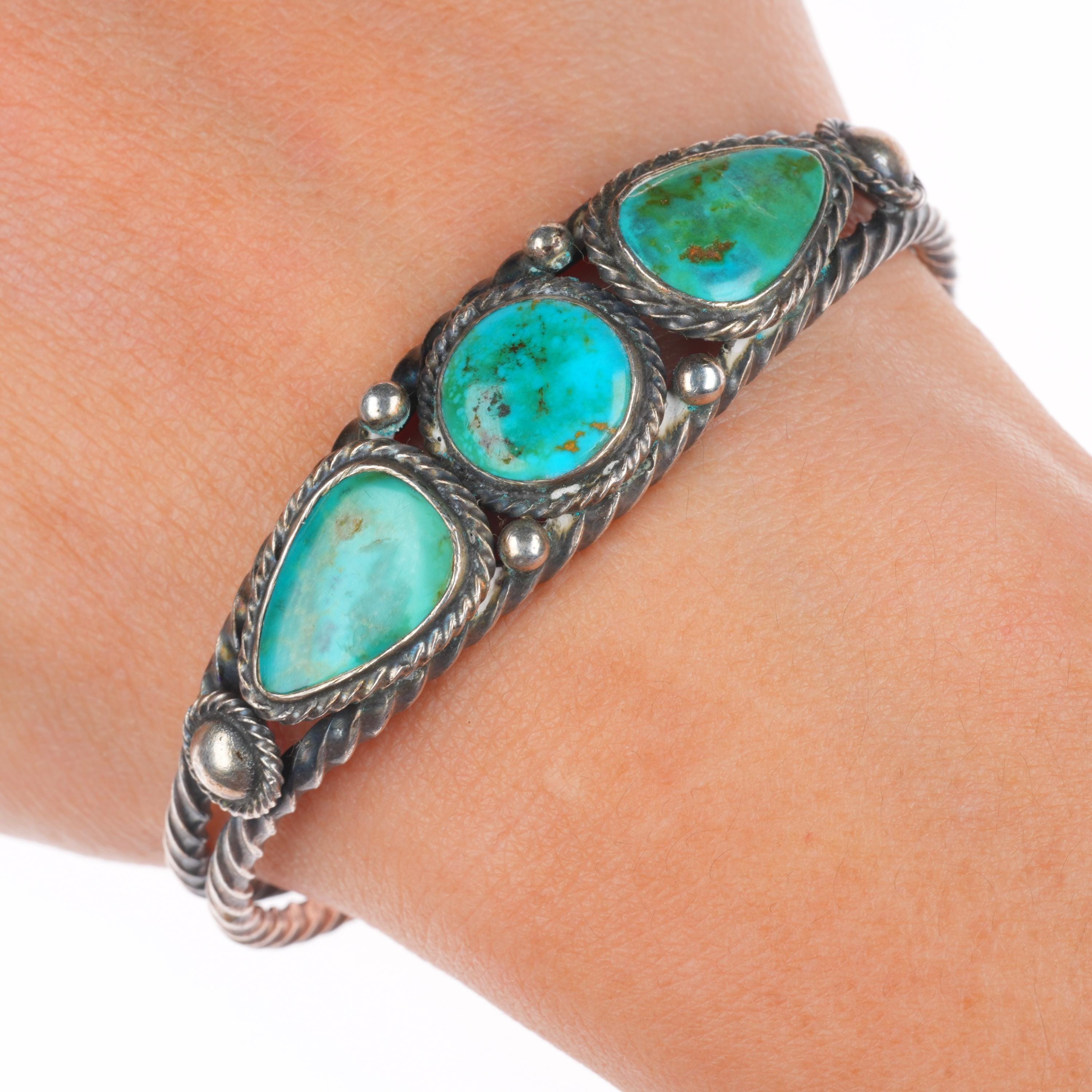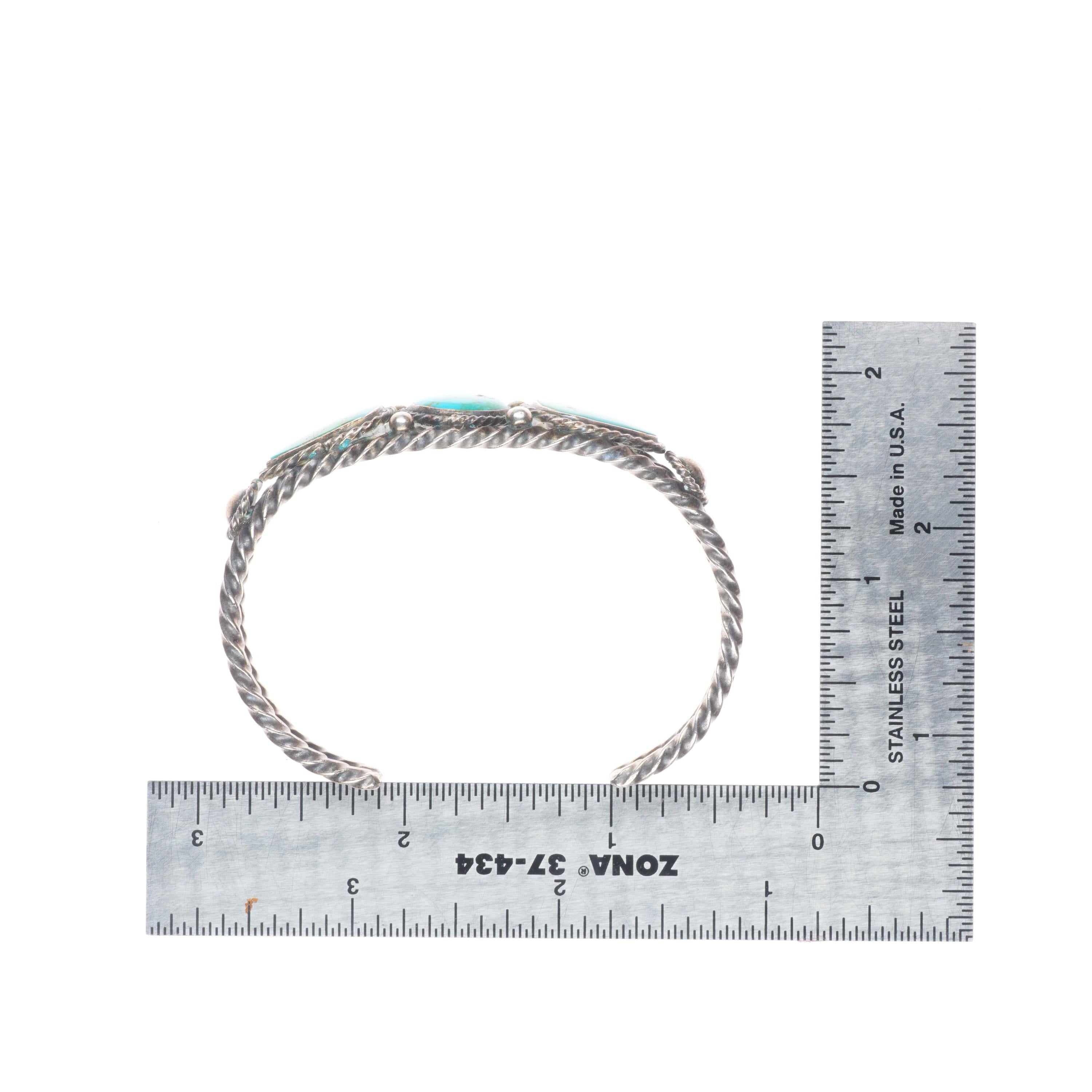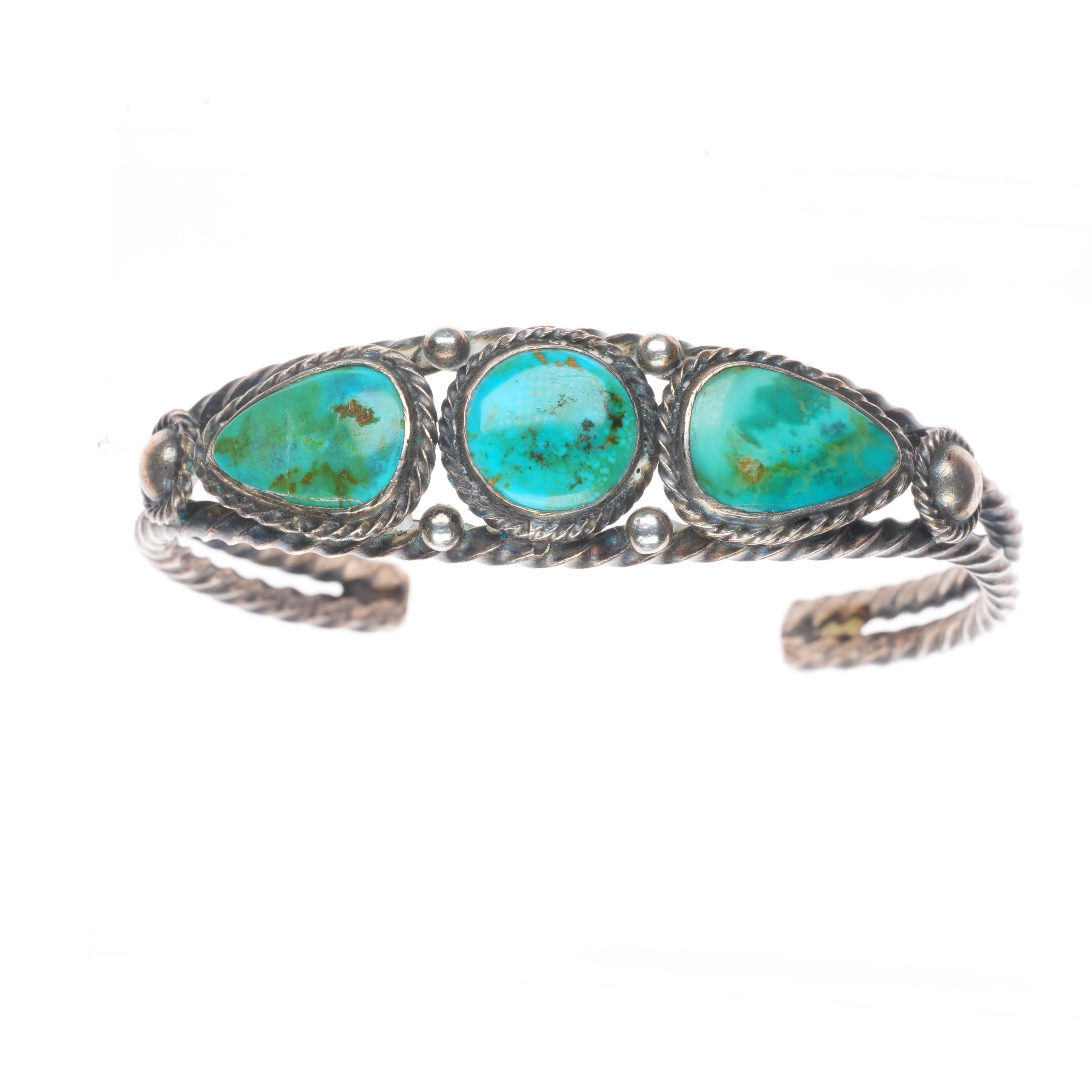 6.3" 1930's Vintage Navajo twisted sterling silver wire turquoise cuff bracelet Share WhatsApp Facebook X Pin it Messenger Email Product form $850.00 Excl. VAT 1 in stock Quantity Add to cart This item is a recurring or deferred purchase. By continuing, I agree to the cancellation policy and authorize you to charge my payment method at the prices, frequency and dates listed on this page until my order is fulfilled or I cancel, if permitted.