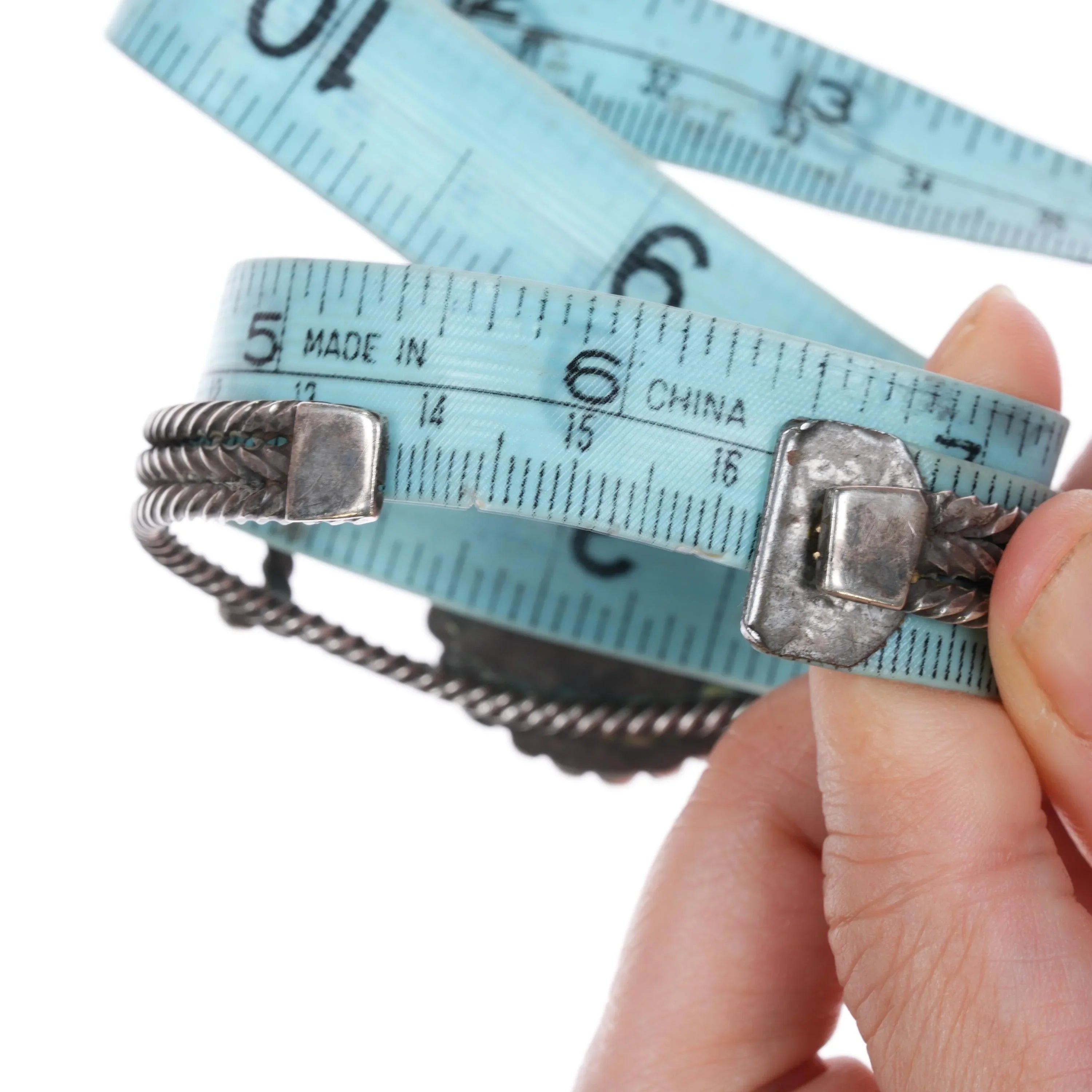 6.37" c1940's Navajo twisted sterling silver wire nice turquoise cuff bracelet