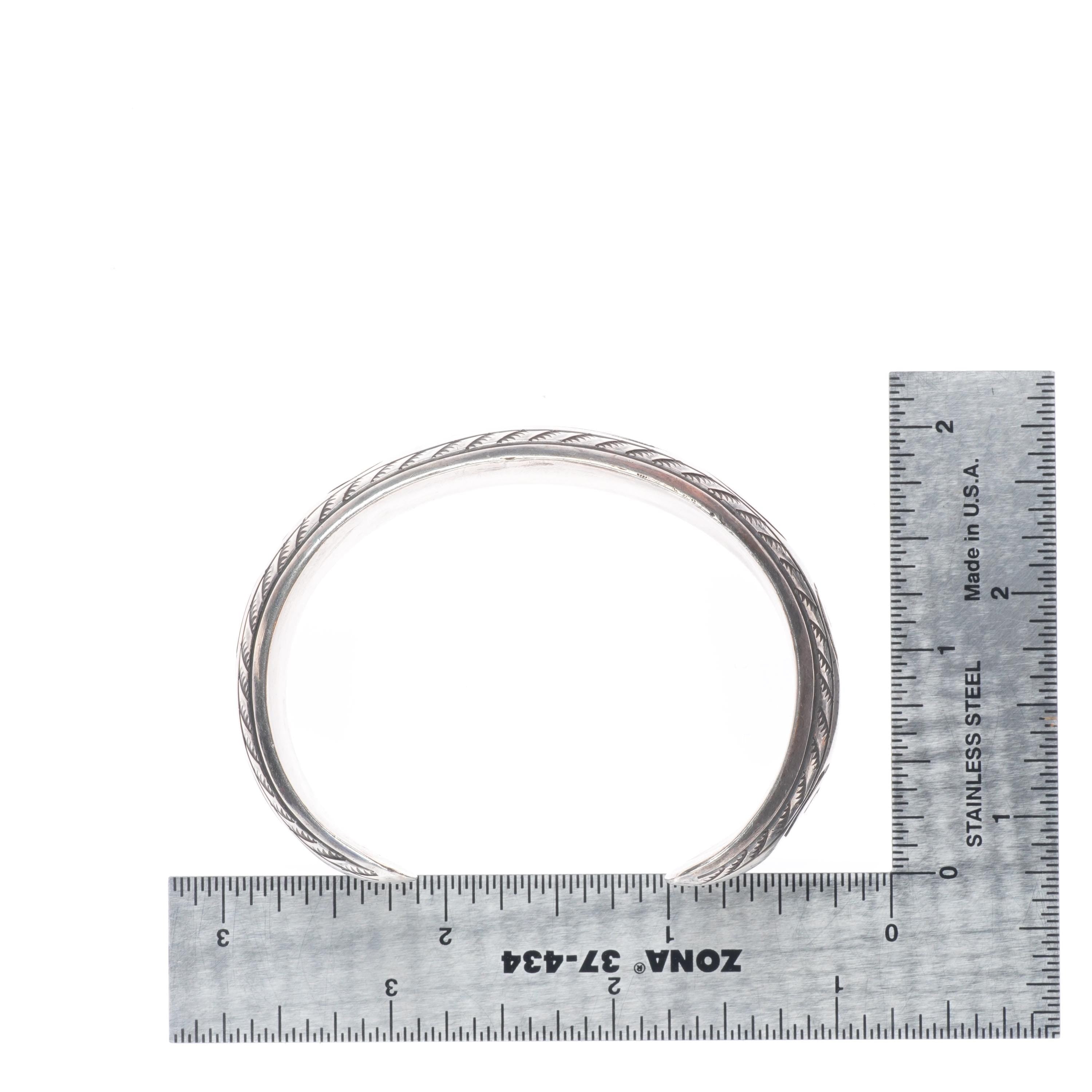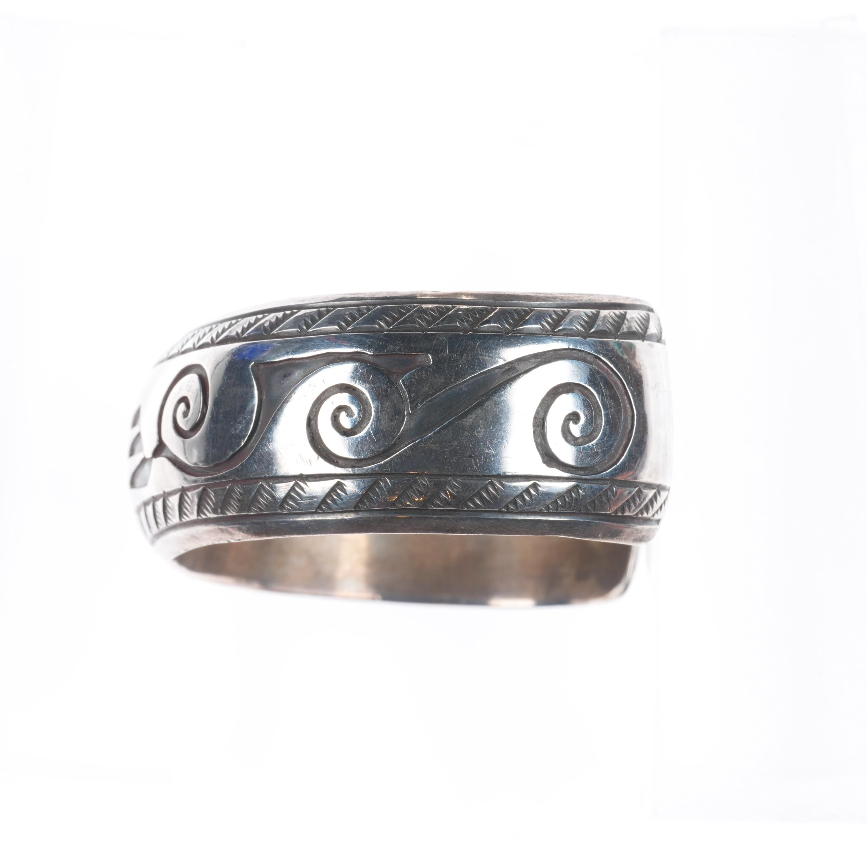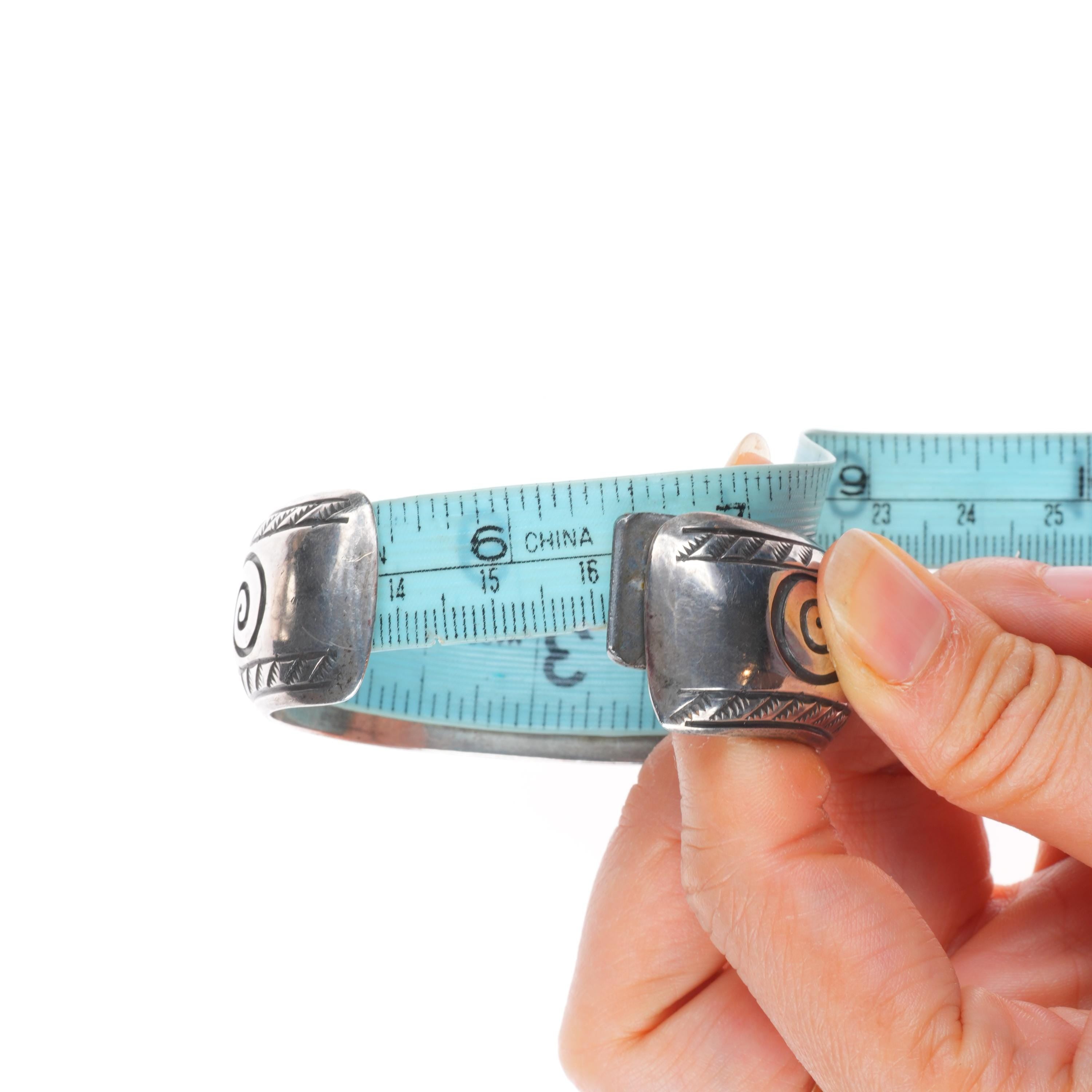 6.4"Herbert Cayatineto Navajo sterling silver hand stamped/overlay cuff bracelet. Tested and guaranteed solid sterling silver with weight and measurements in pictures. Great condition with age appropriate wear, circa third quarter of the 20th century.