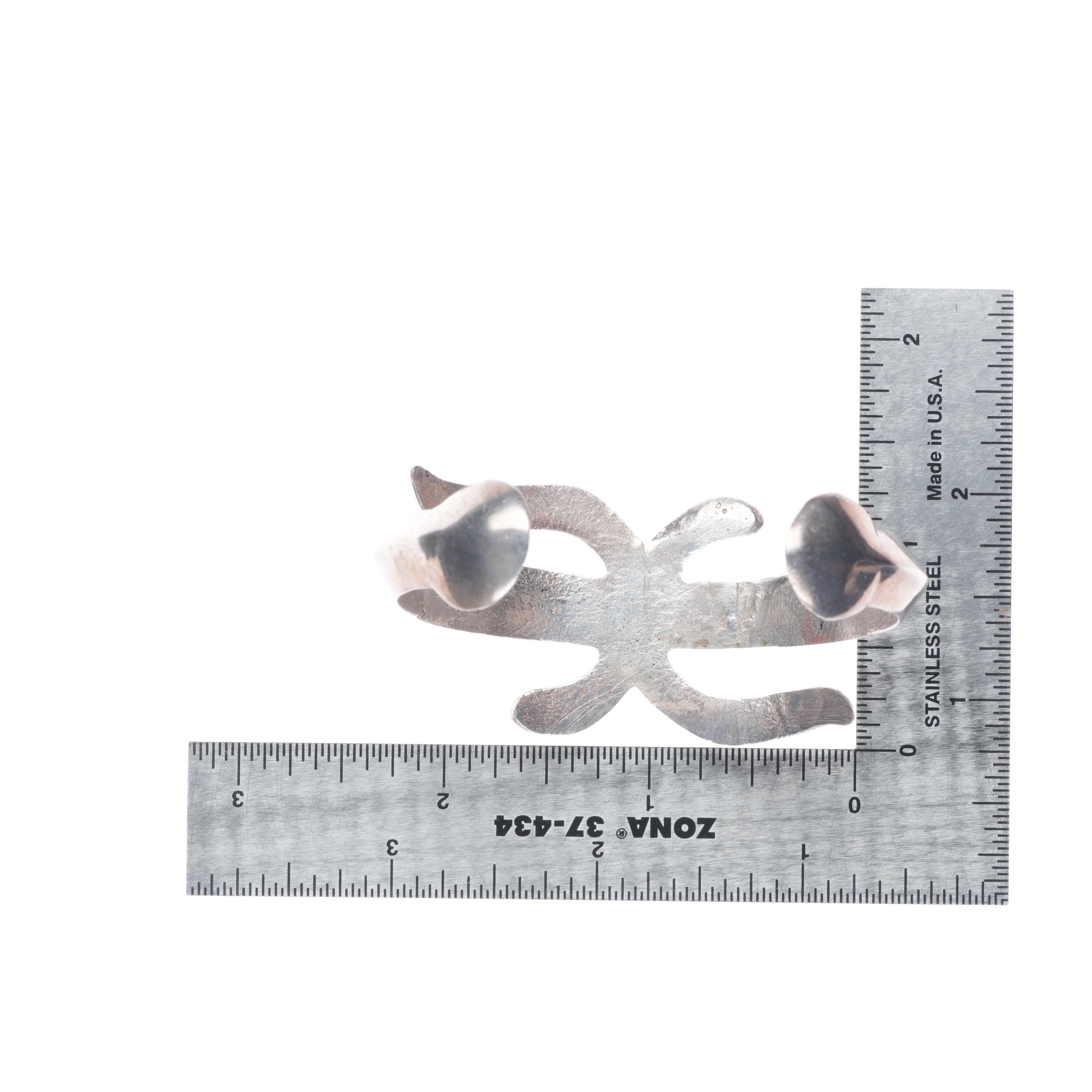 6.5" 40's-50's Vintage Navajo cast sterling silver simplistic cuff bracelet. Tested and guaranteed solid sterling silver with weight and measurements in pictures. Overall expected wear circa mid 20th century. From a high end collection of historic Navajo and Zuni jewelry. 41 grams