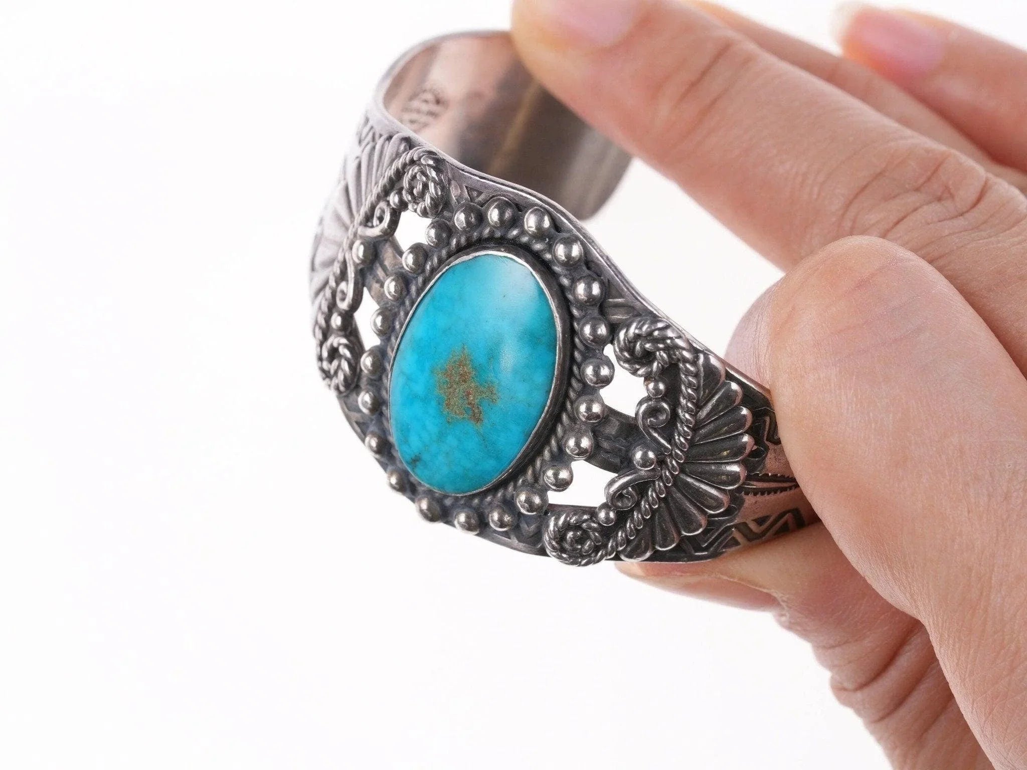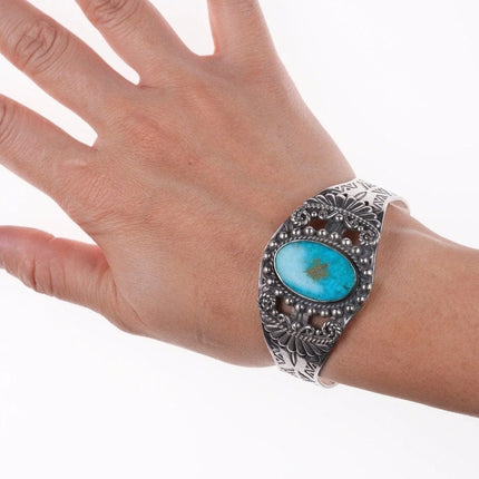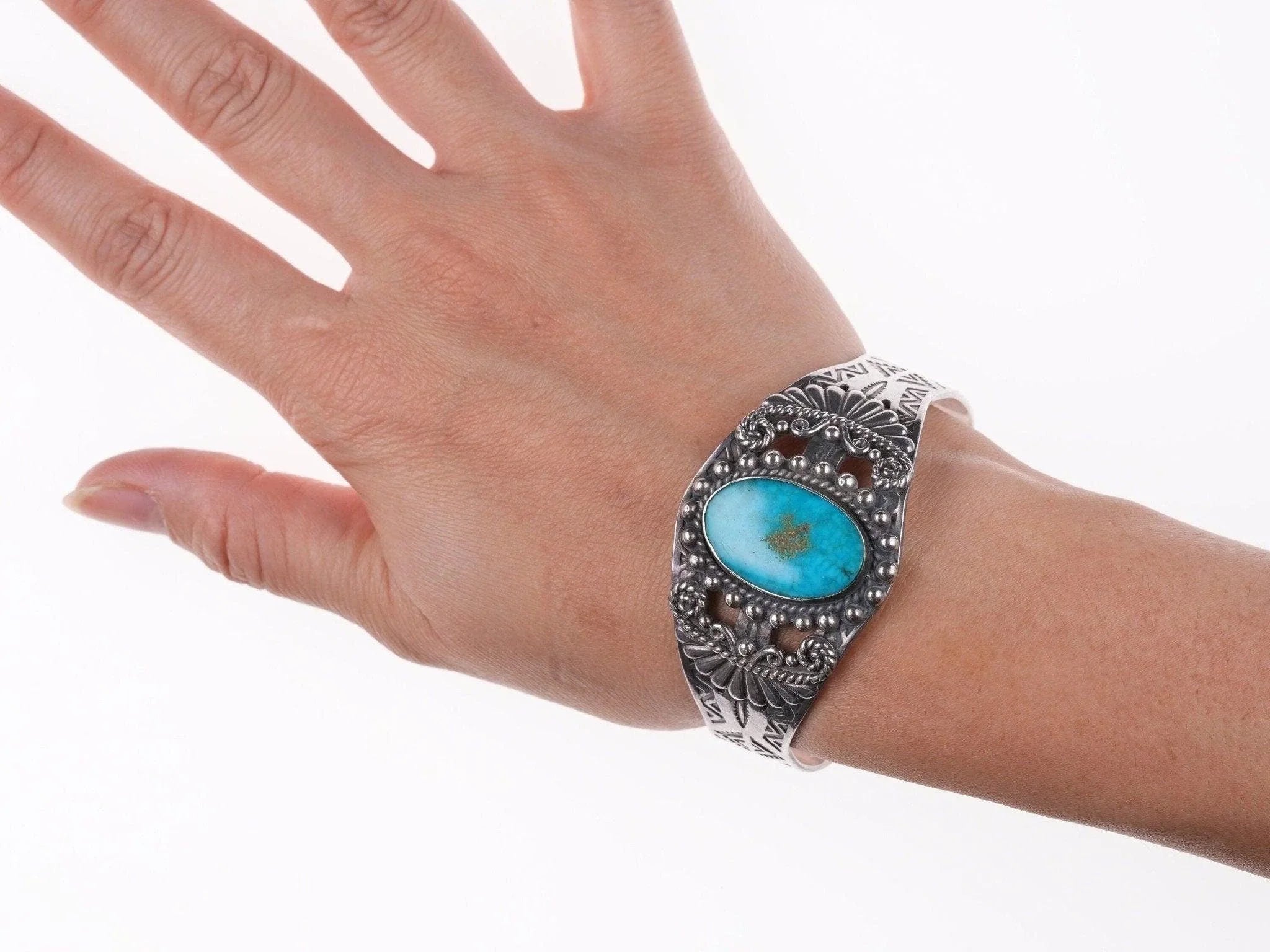 6.625" c1950's Maisels Navajo sterling and turquoise cuff bracelet
