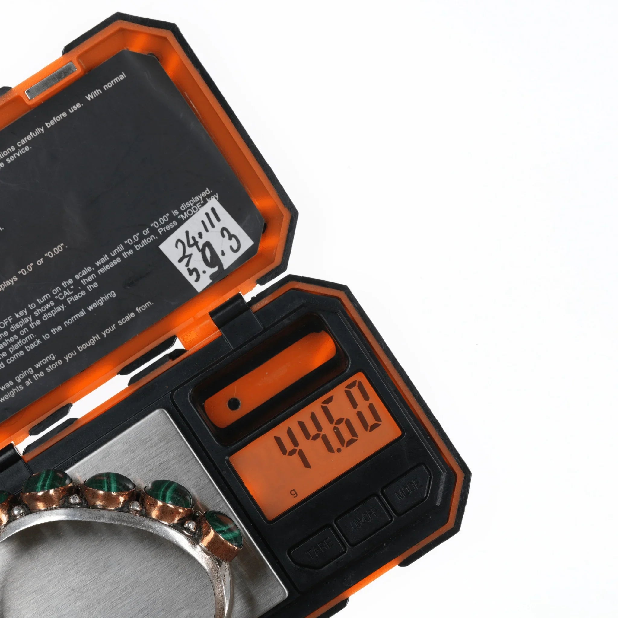 6.6" Navajo sterling silver copper malachite cuff bracelet.  Sterling with copper bezels. Marked or<br>unmarked as shown in pics, weight and other measurements in pics. Sorry but my<br>jewelry is stored in a secure location and cannot be accessed for more pictures,<br>videos, or measurements until sold. If you look at pictures/description your<br>question should be answered. Thank you so much for your time and consideration!<br><br>All precious metals are tested and guaranteed. A Native American jewelry piece referred to as "silver" or "ingot" is guaranteed to be at least 90% silver. Bracelets are photographed on a 6" women's wrist.