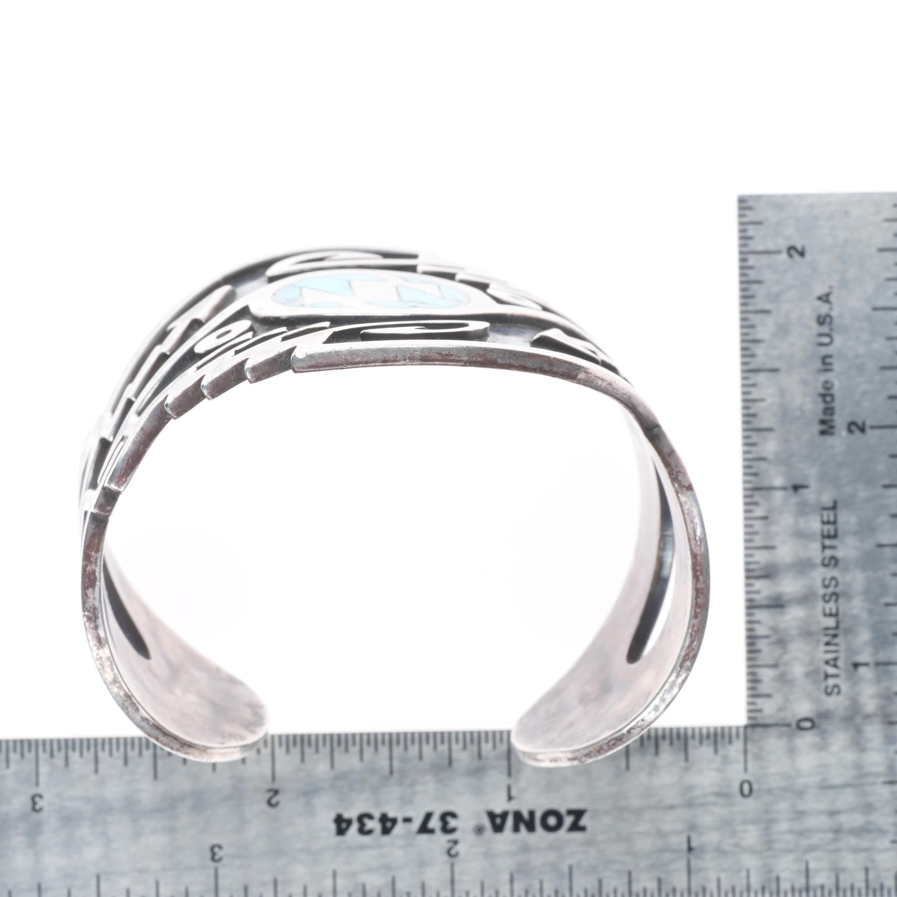 6.5" Carl Allen Begay (1912-1972) Navajo sterling silver flush inlay turquoise cuff bracelet. Tested and guaranteed solid sterling silver with weight and measurements in pictures. Great condition with age appropriate wear, circa third quarter of the 20th century.