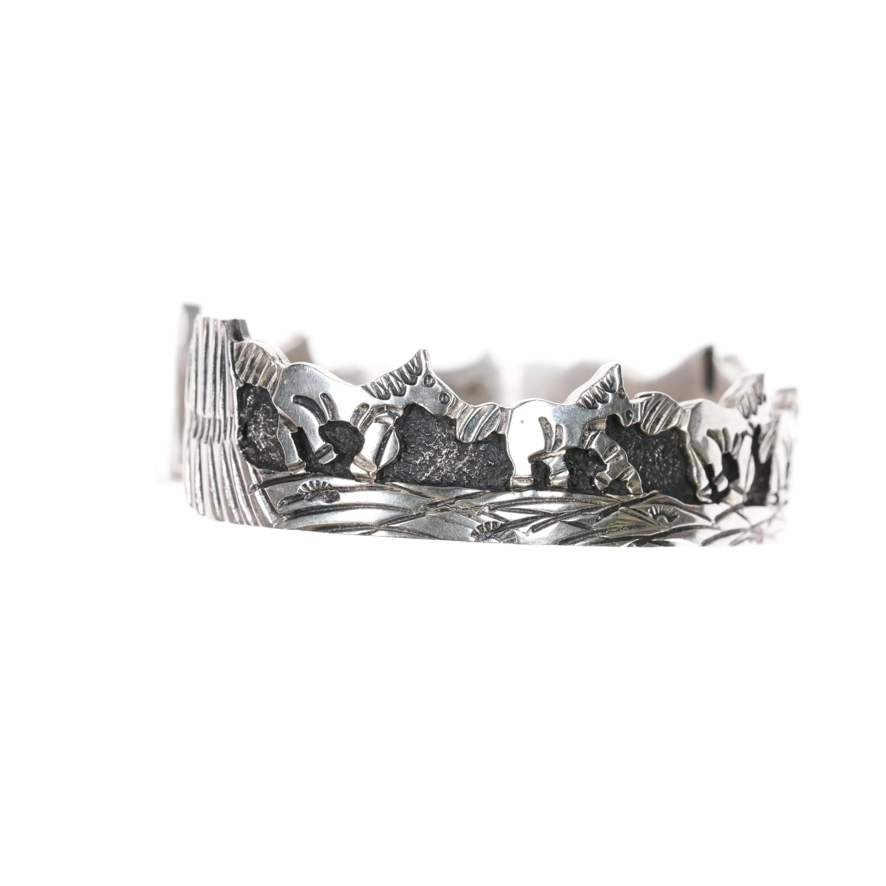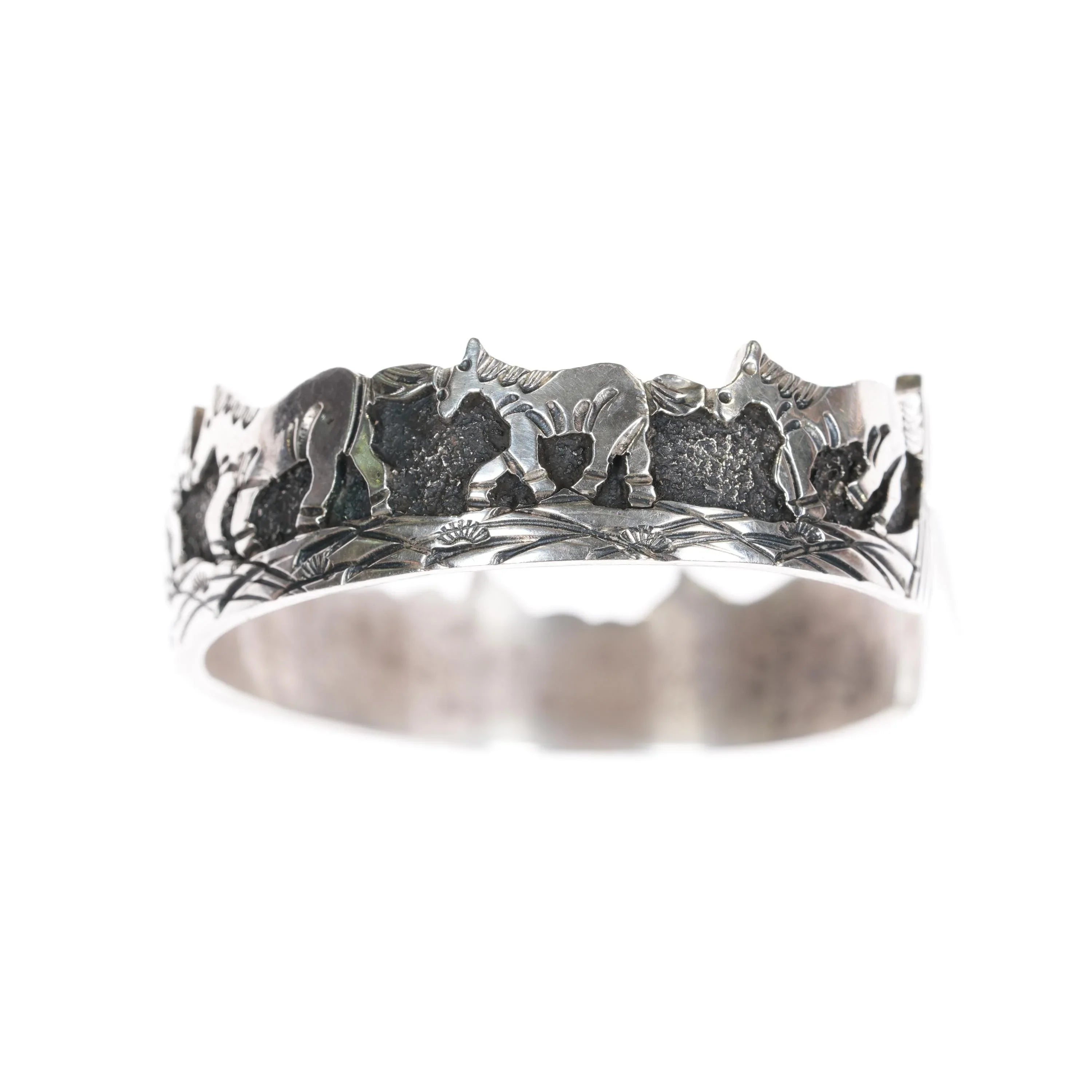 6.5" Elaine Becenti Navajo sterling wild ponies cuff bracelet
