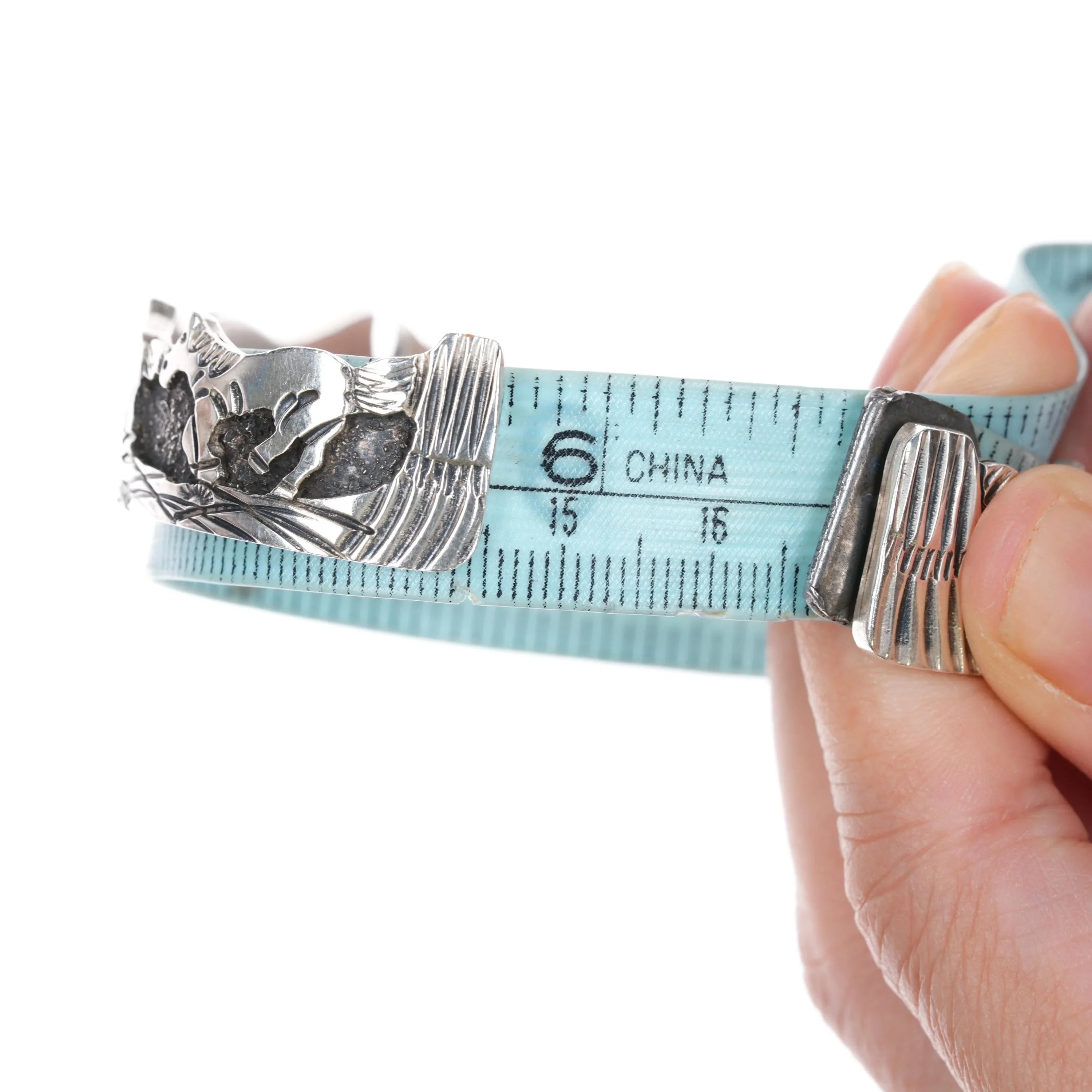 6.5" Elaine Becenti Navajo sterling wild ponies cuff bracelet. Weight and measurements in pictures, solid sterling silver. no issues.