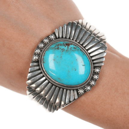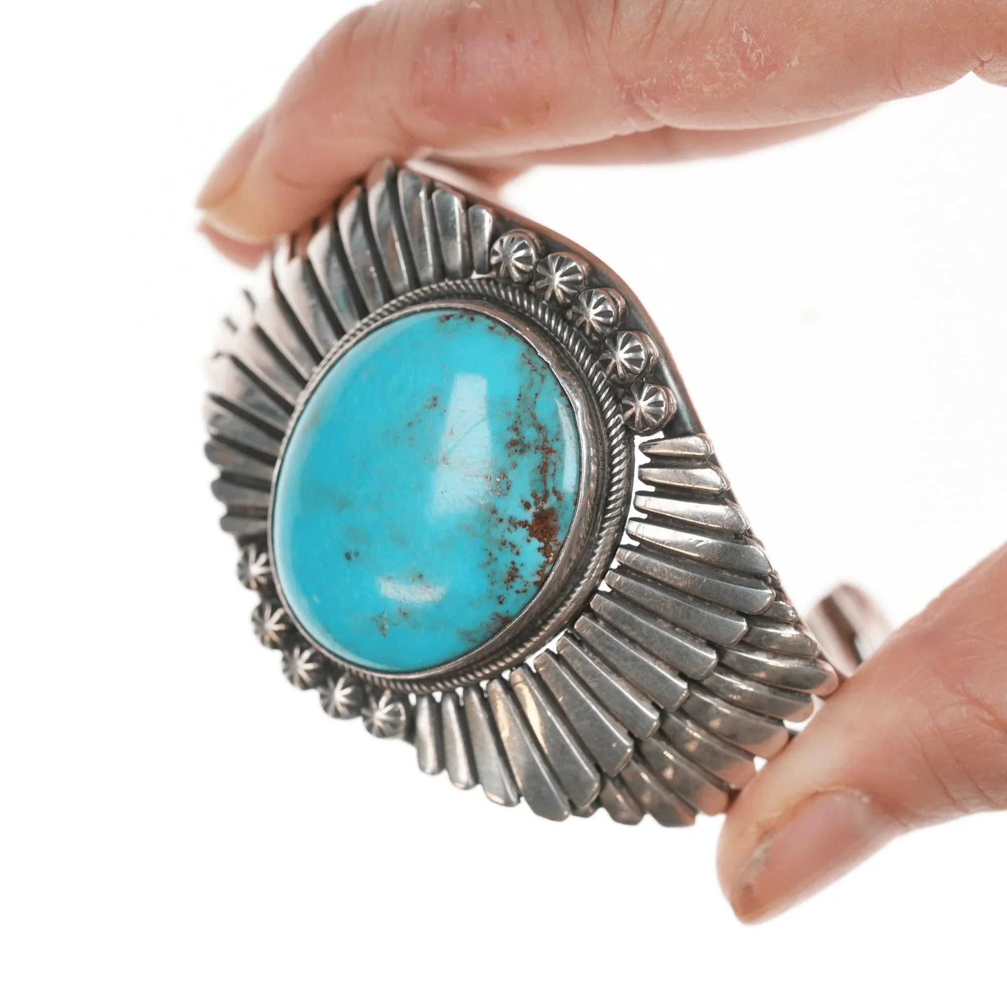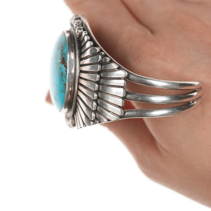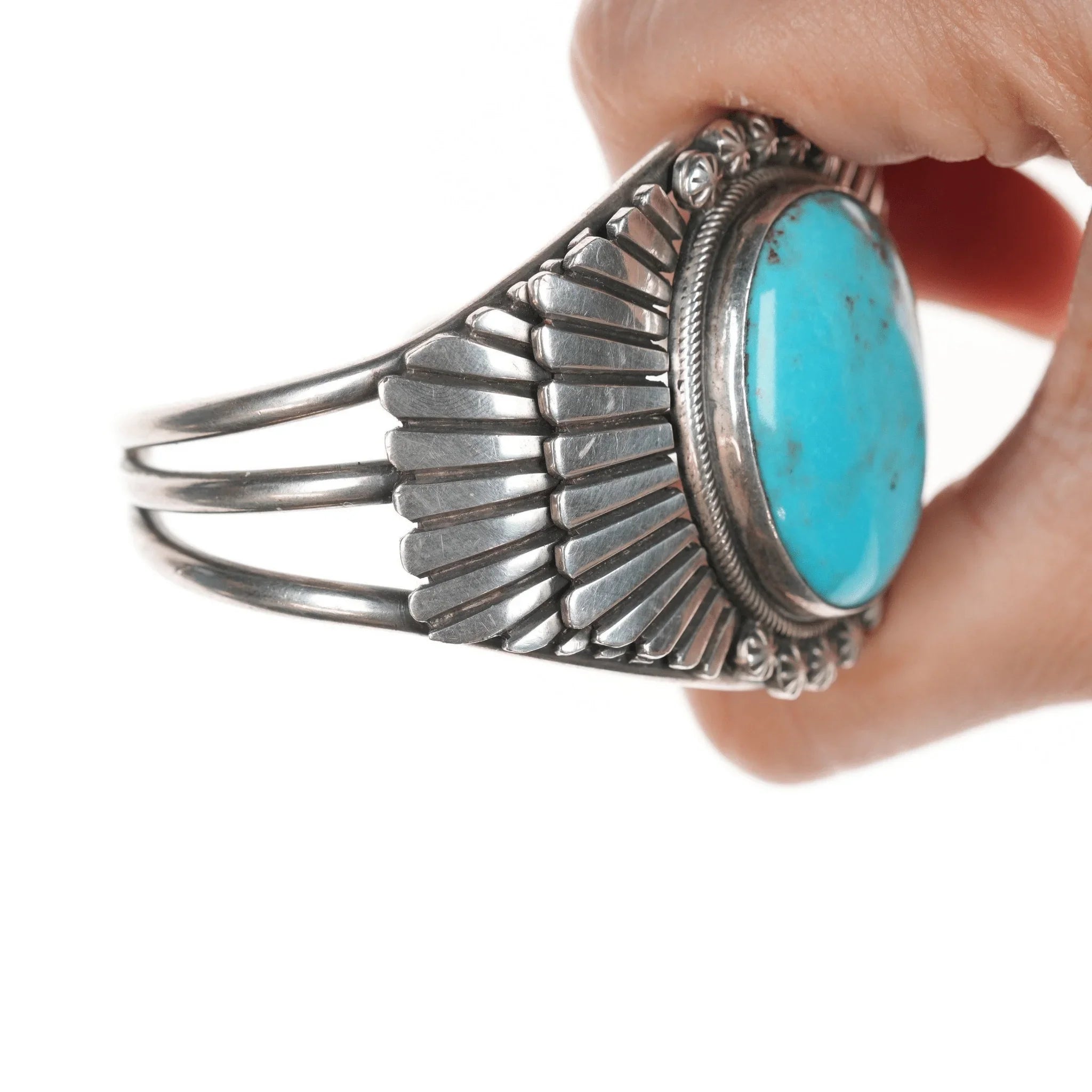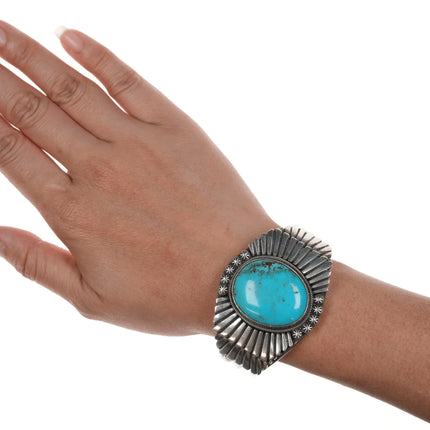 6.5" Ernest Bilagody Navajo silver and turquoise cuff bracelet
