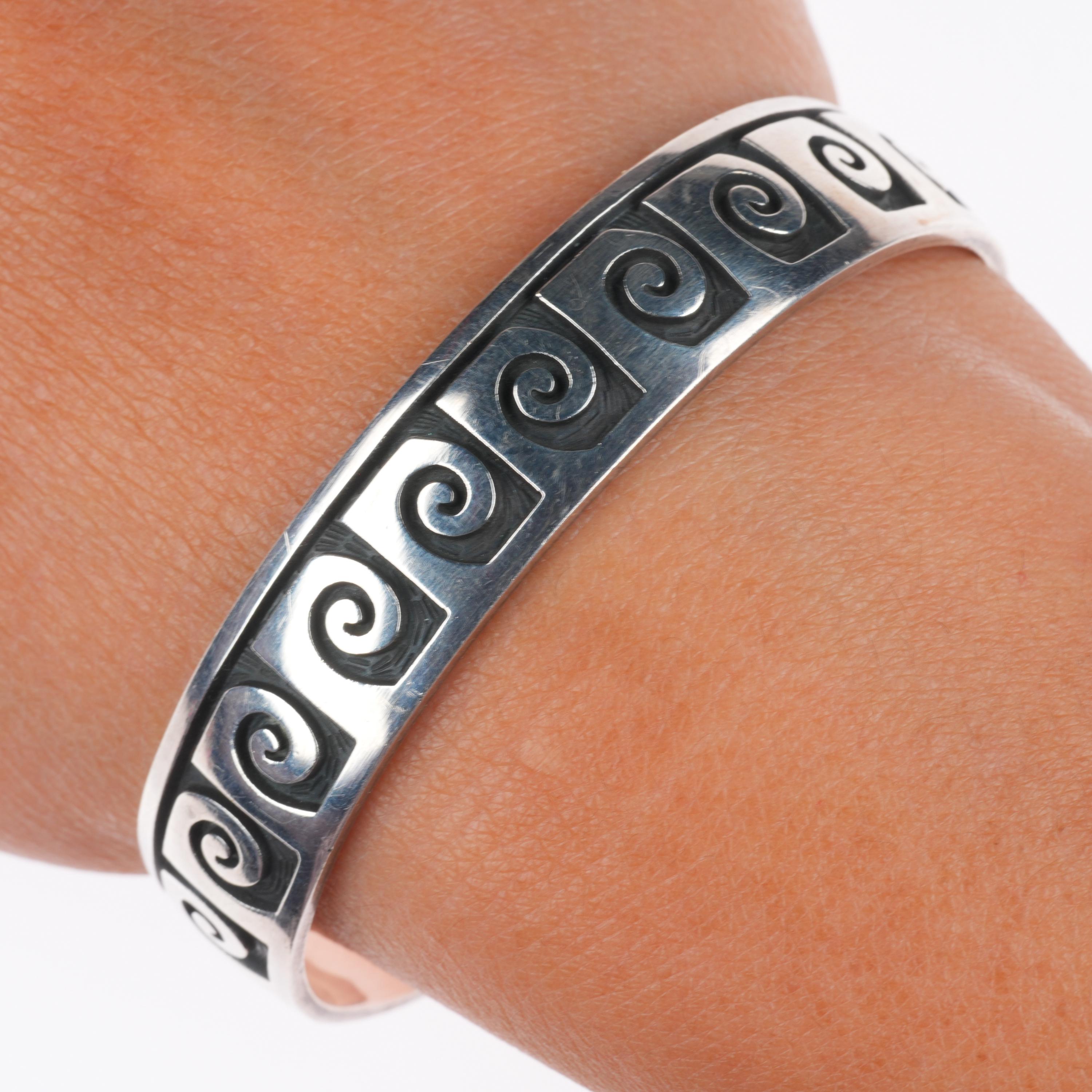 6.5" Hyson Stephen Naseyoma Hopi water/waves cuff bracelet sterling silver. Tested and guaranteed solid sterling silver, weight and measurements in photos. Circa first to early last quarter of the 20th century.