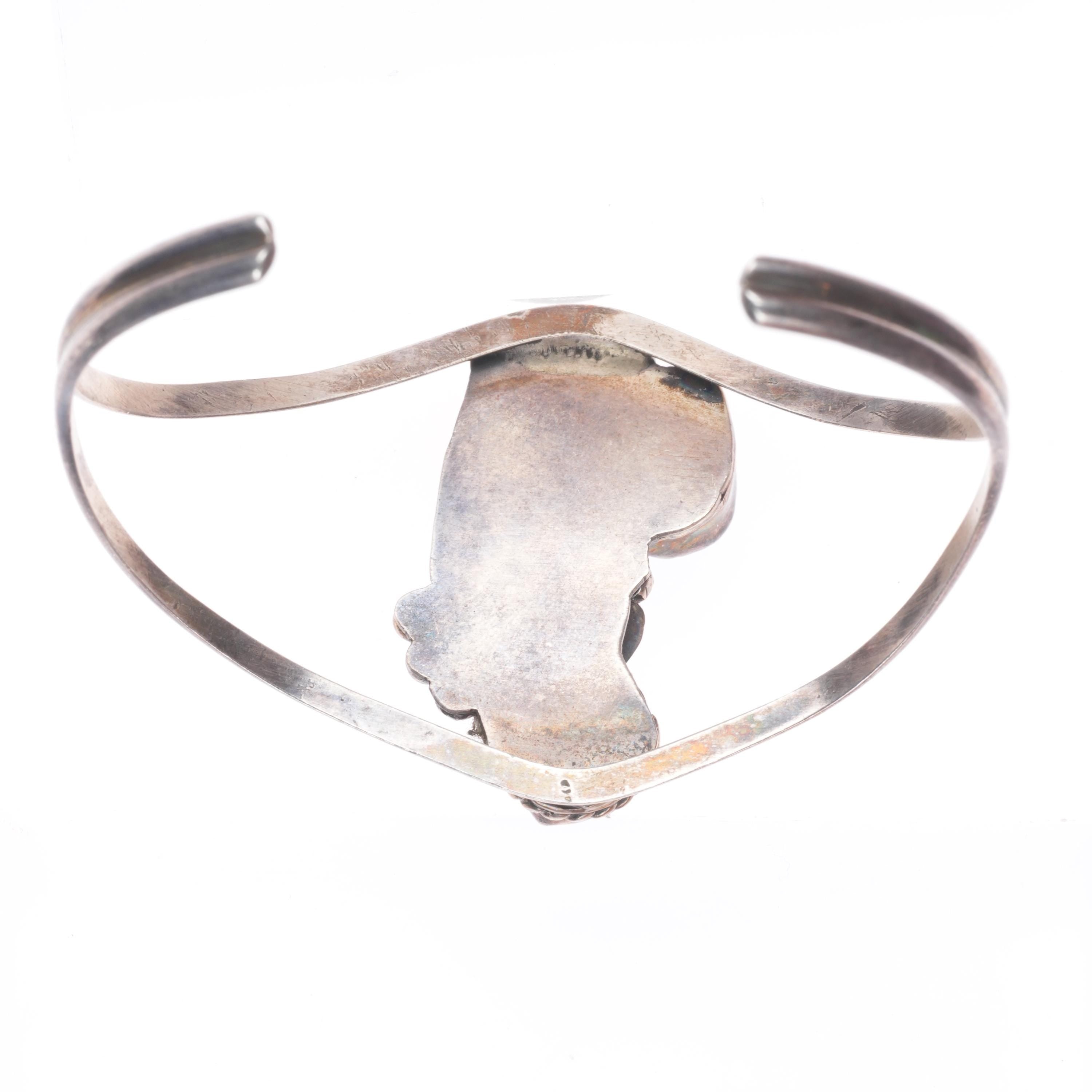 6.5" Vintage Navajo sterling silver turquoise split shank feather cuff bracelet. Tested and guaranteed solid sterling silver with weight and measurements in pictures. Overall expected wear circa third quarter of the 20th century.