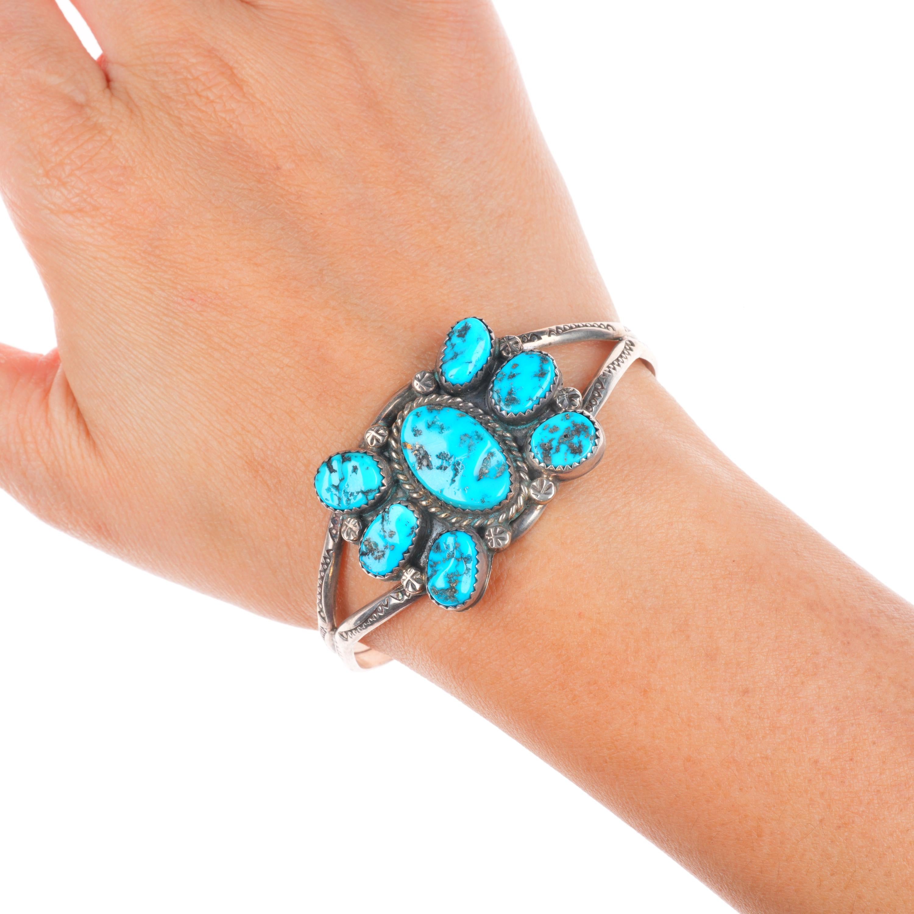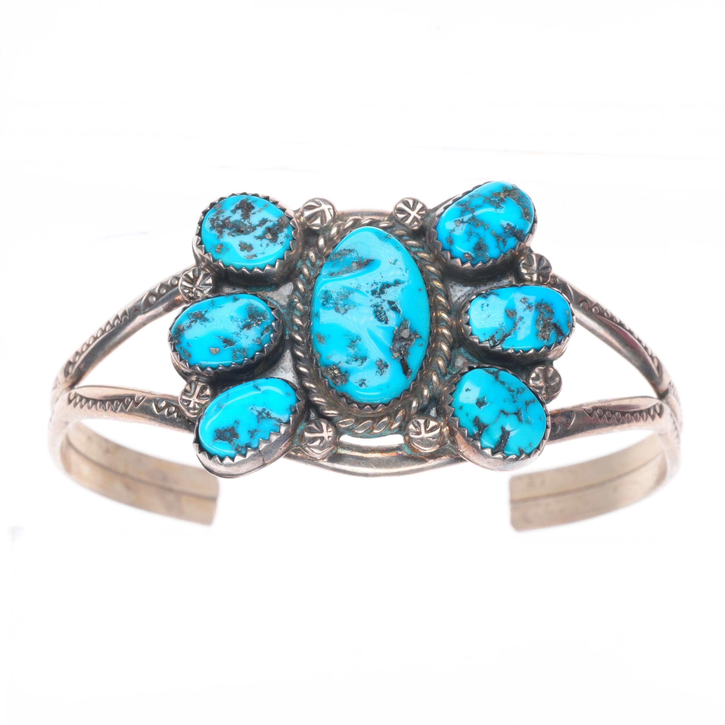 6.5" Vintage SS Navajo sterling silver Kingman turquoise butterfly cuff bracelet. Tested and guaranteed solid sterling silver with weight and measurements in pictures. Overall expected wear circa last quarter of the 20th century.