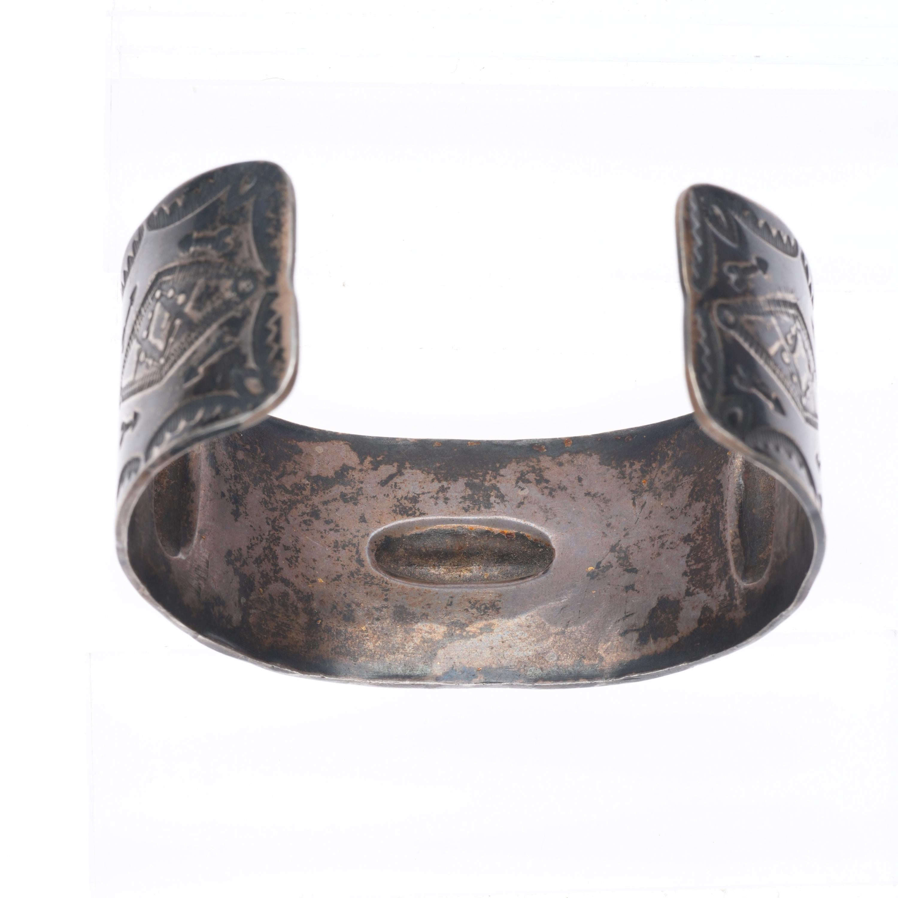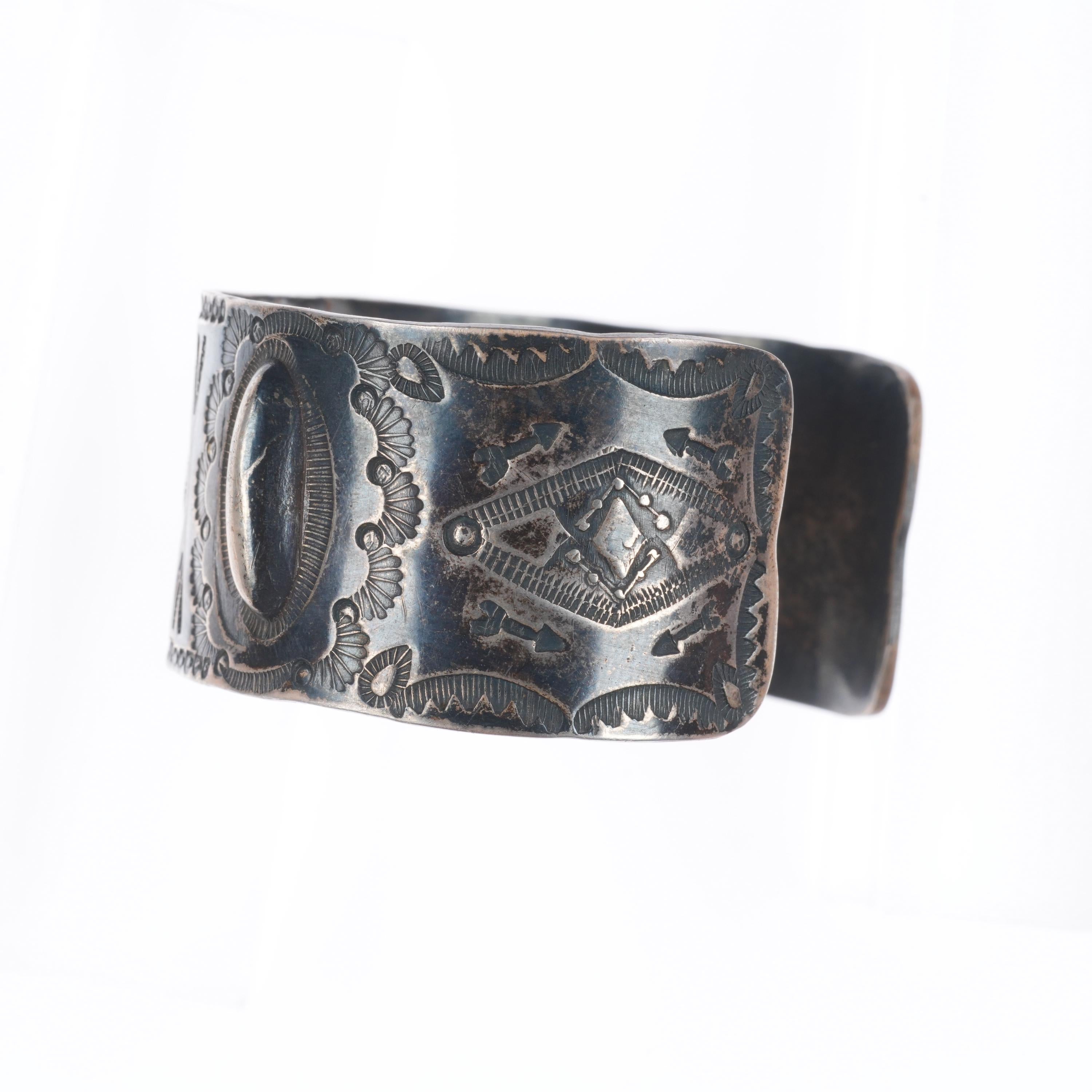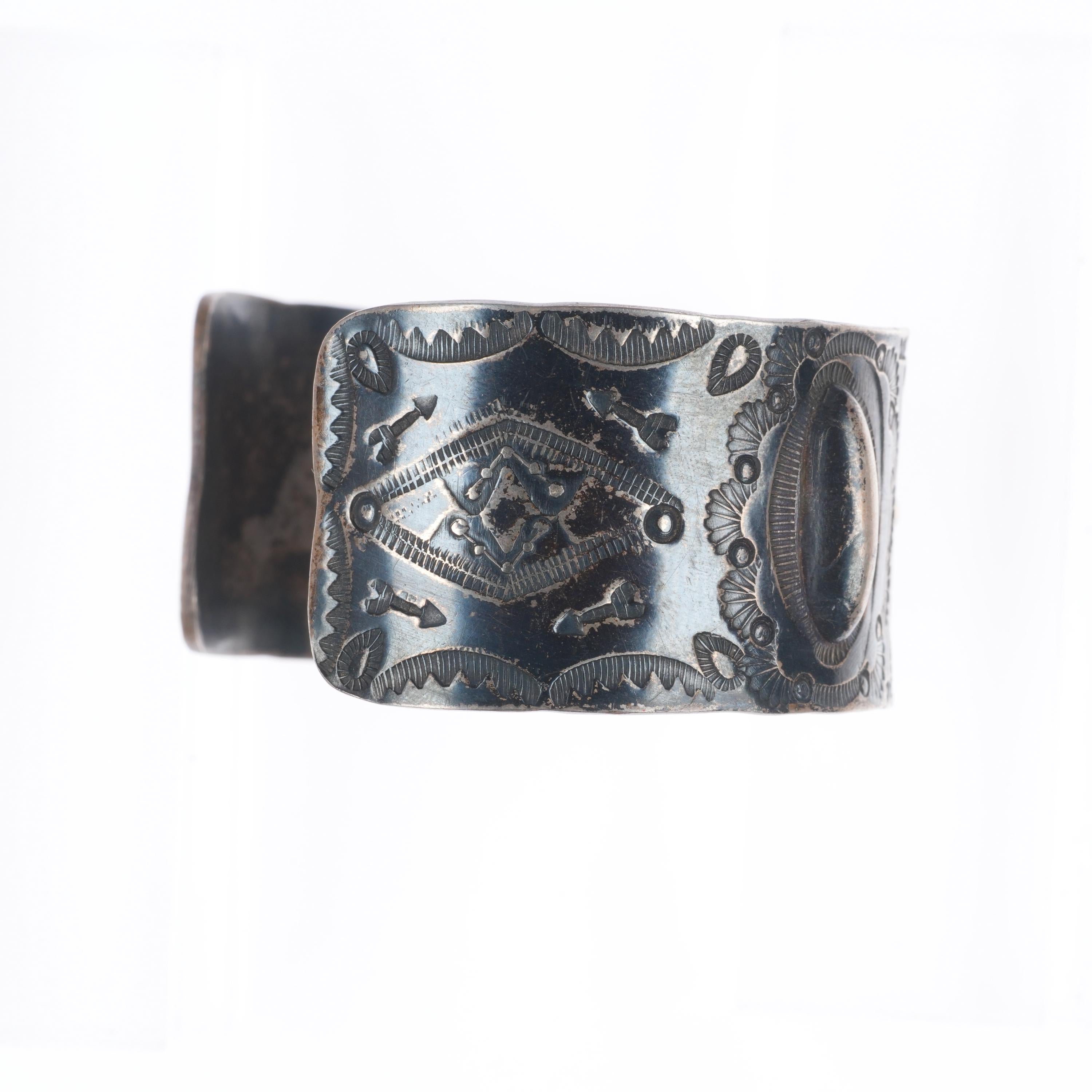 6.6" Vintage Navajo heavy stamped/repousse sterling silver wide cuff bracelet Share WhatsApp Facebook X Pin it Messenger Email Product form $1,200.00 Excl. VAT 1 in stock Quantity Add to cart This item is a recurring or deferred purchase. By continuing, I agree to the cancellation policy and authorize you to charge my payment method at the prices, frequency and dates listed on this page until my order is fulfilled or I cancel, if permitted.