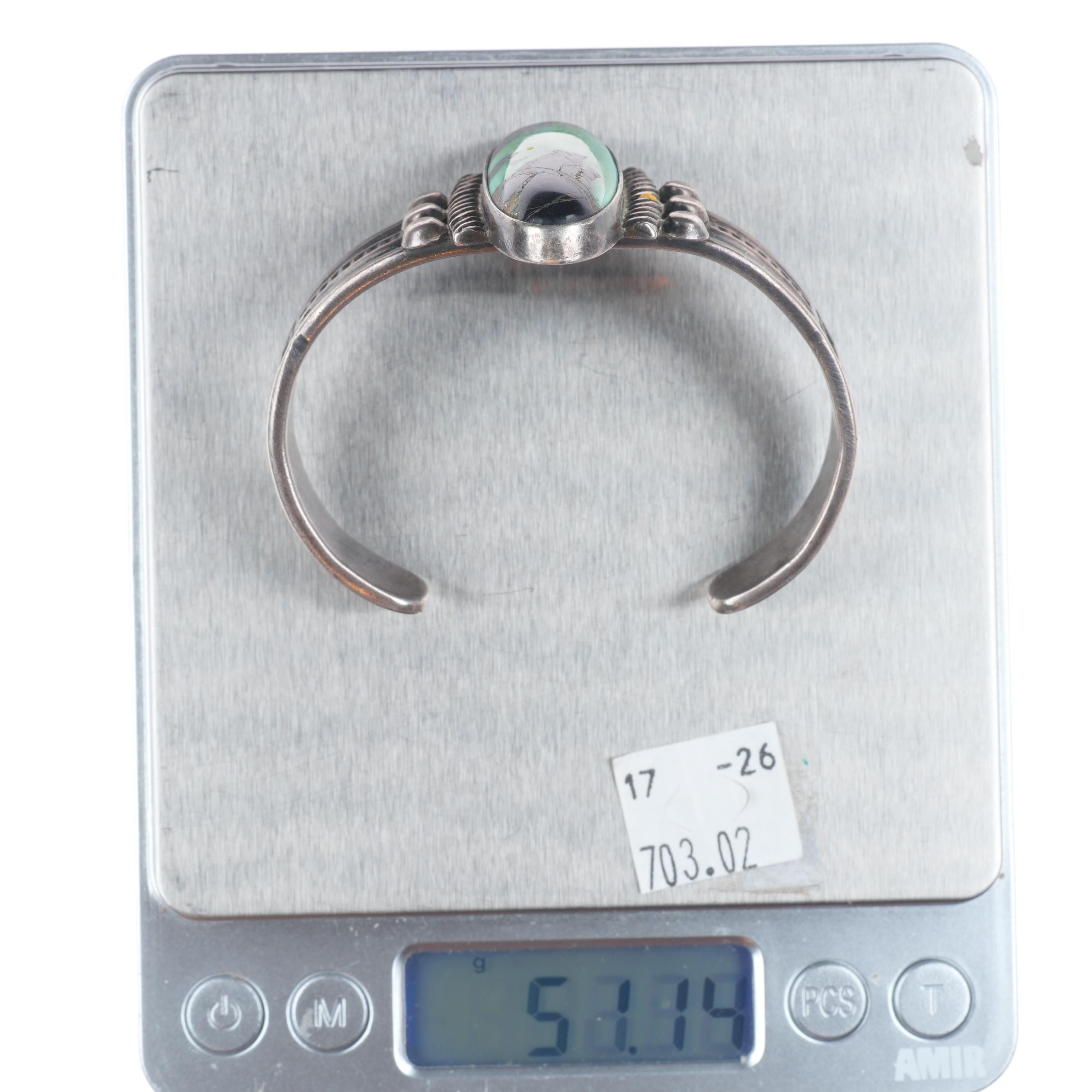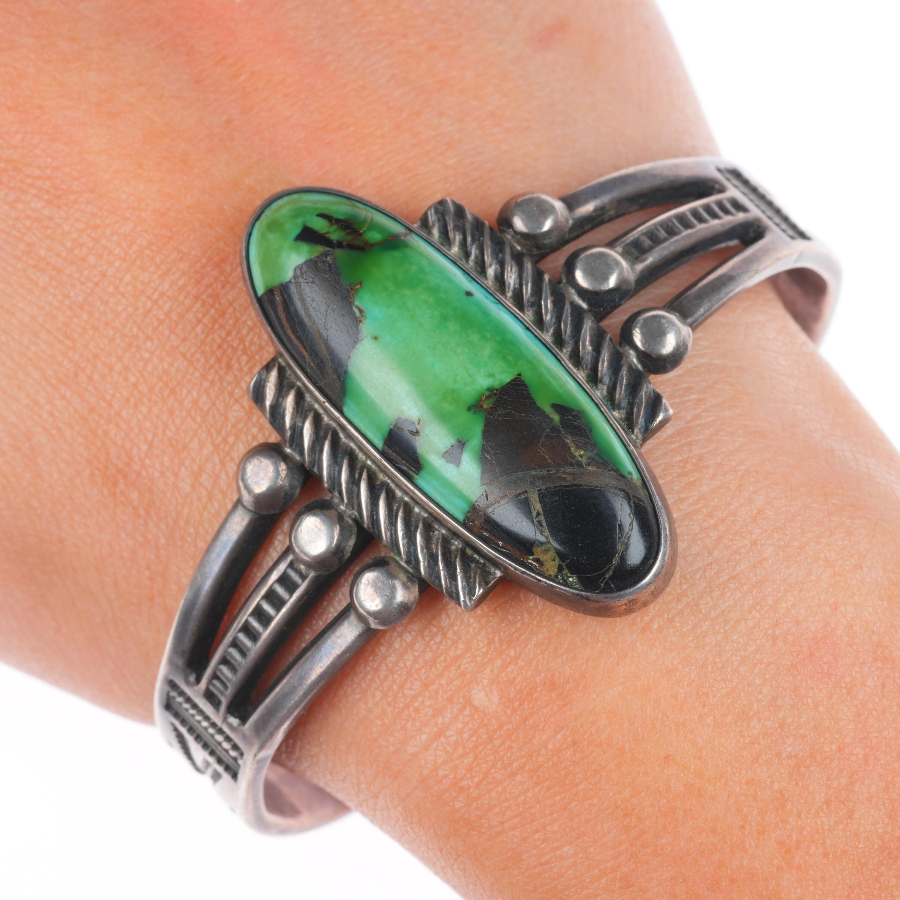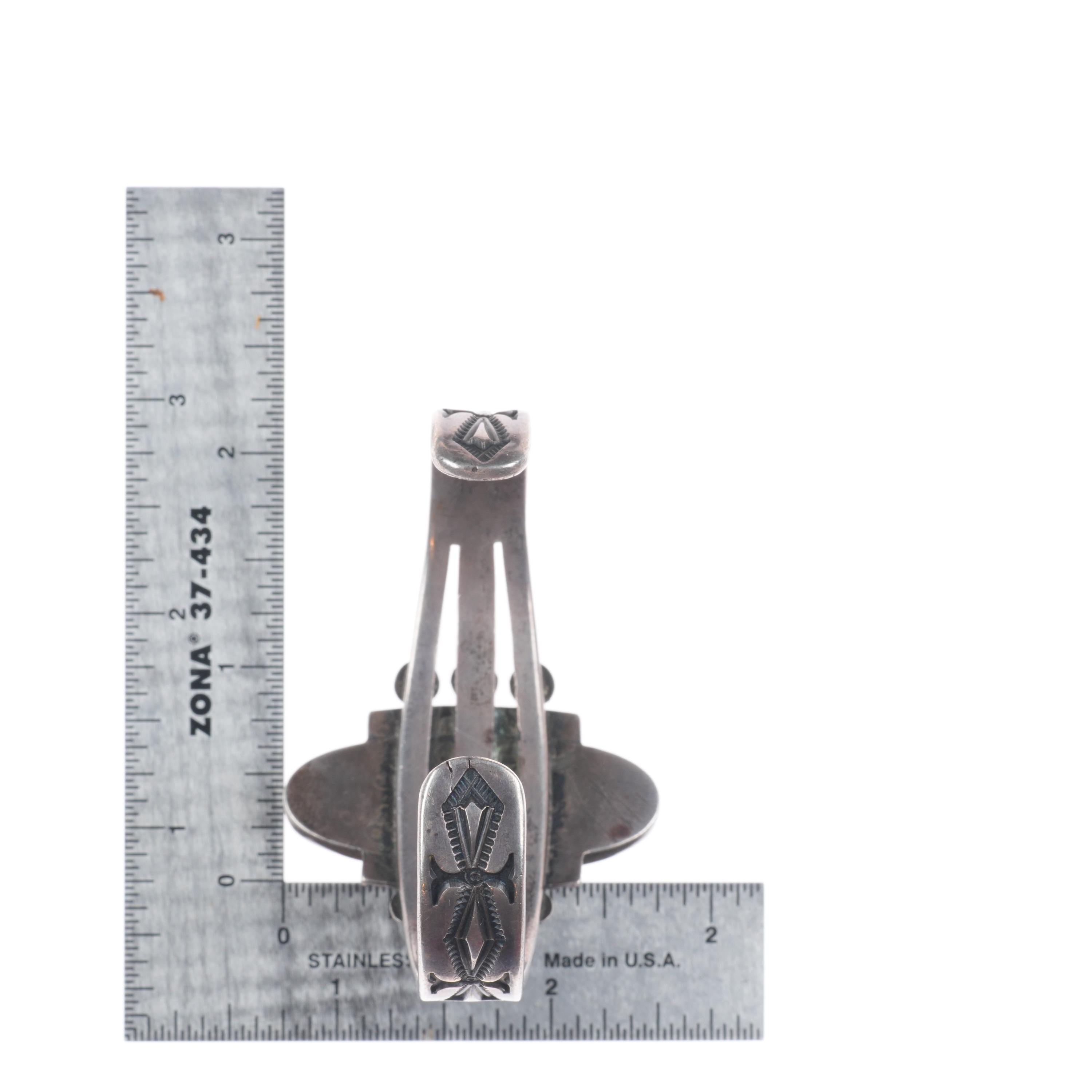 6.7" 1930's Navajo Ingot Silver Blackjack turquoise deep stamped cuff bracelet Share WhatsApp Facebook X Pin it Messenger Email Product form $1,995.00 Excl. VAT 1 in stock Quantity Add to cart This item is a recurring or deferred purchase. By continuing, I agree to the cancellation policy and authorize you to charge my payment method at the prices, frequency and dates listed on this page until my order is fulfilled or I cancel, if permitted.