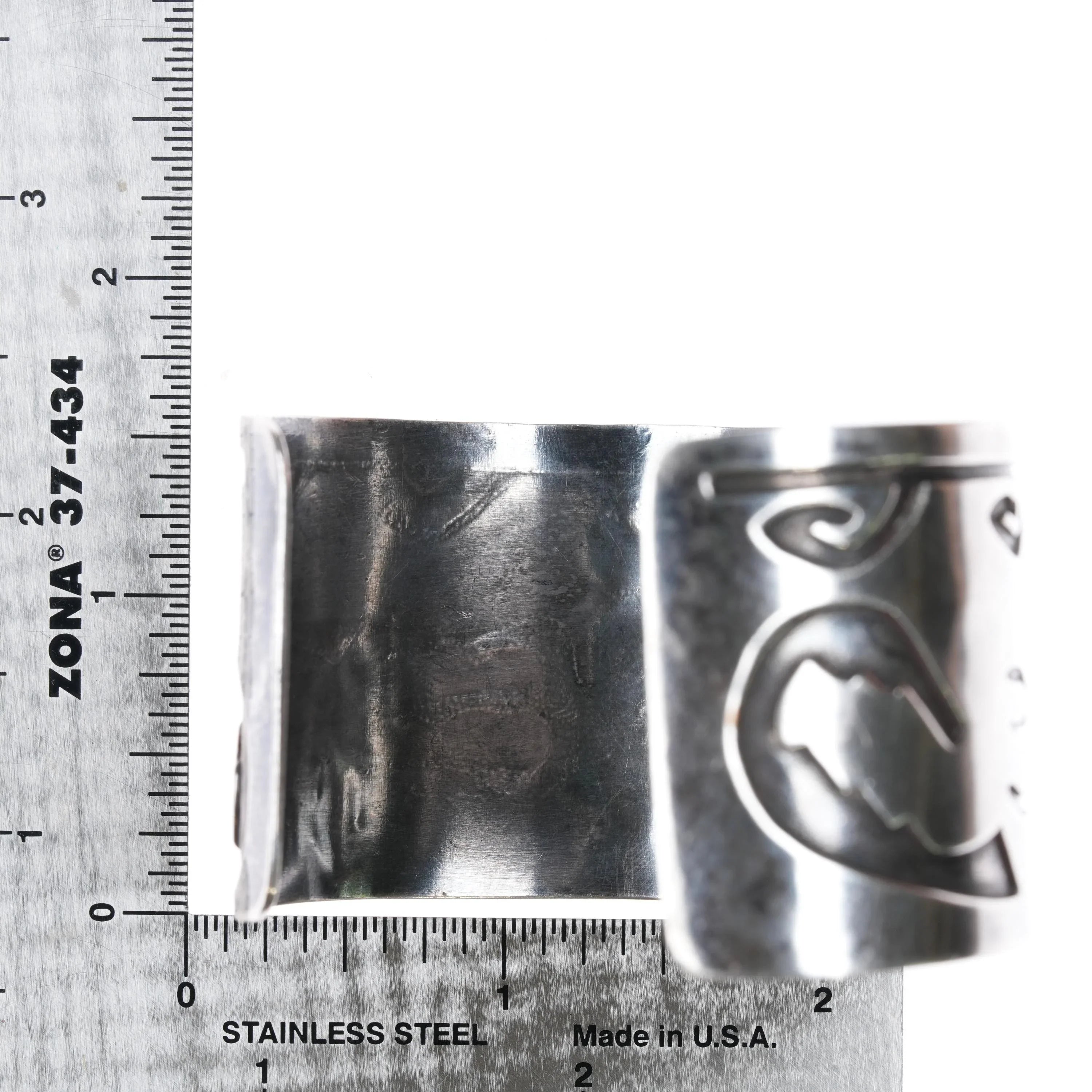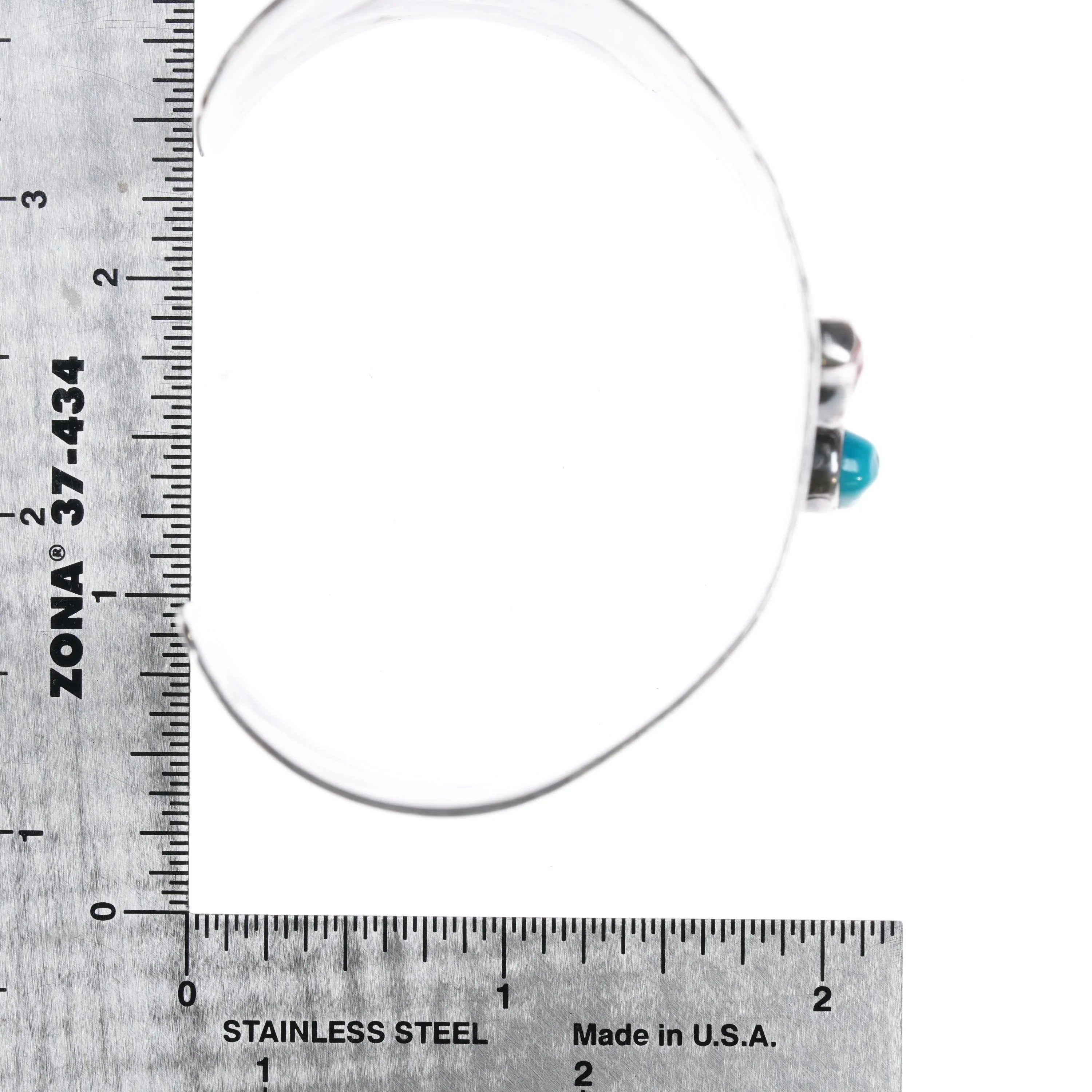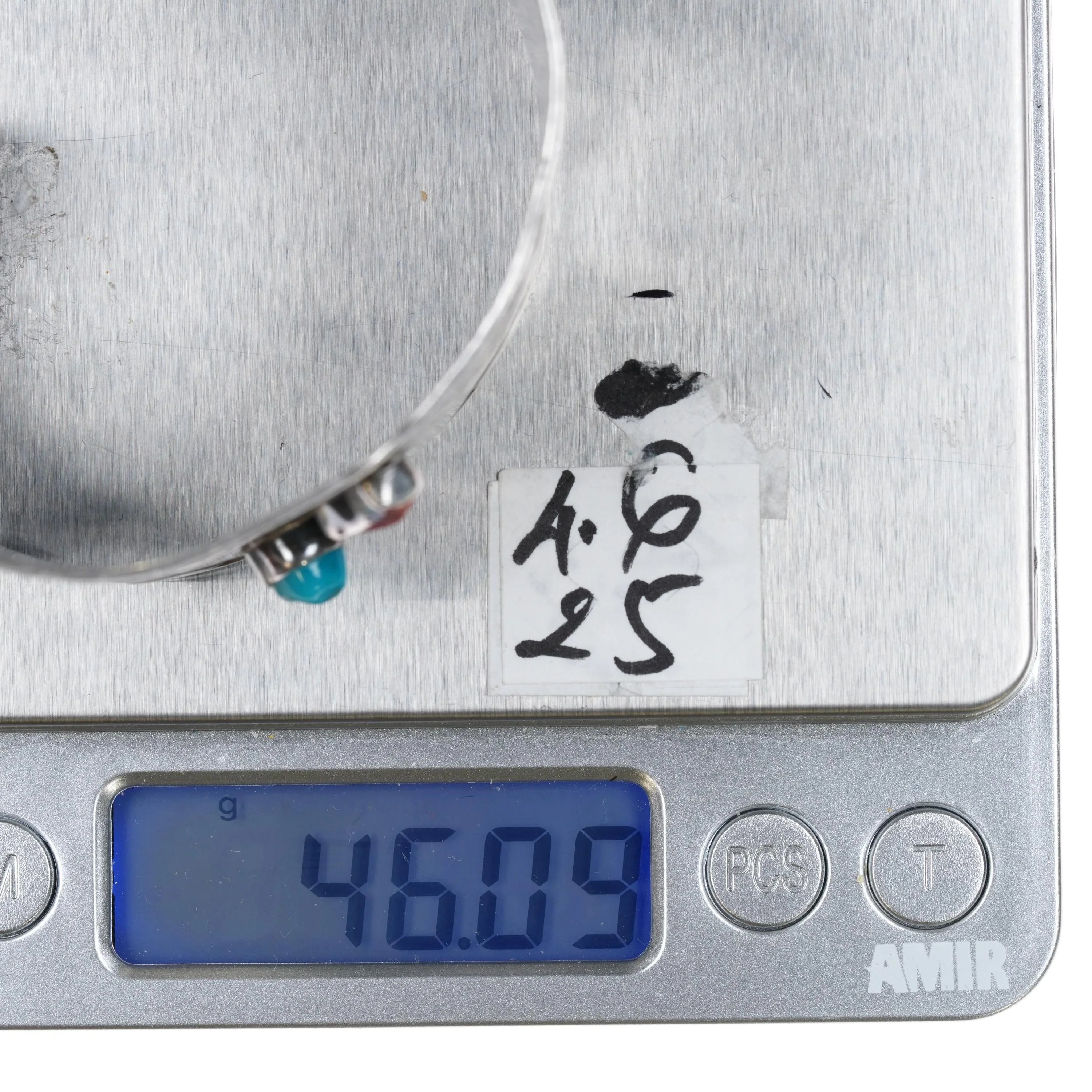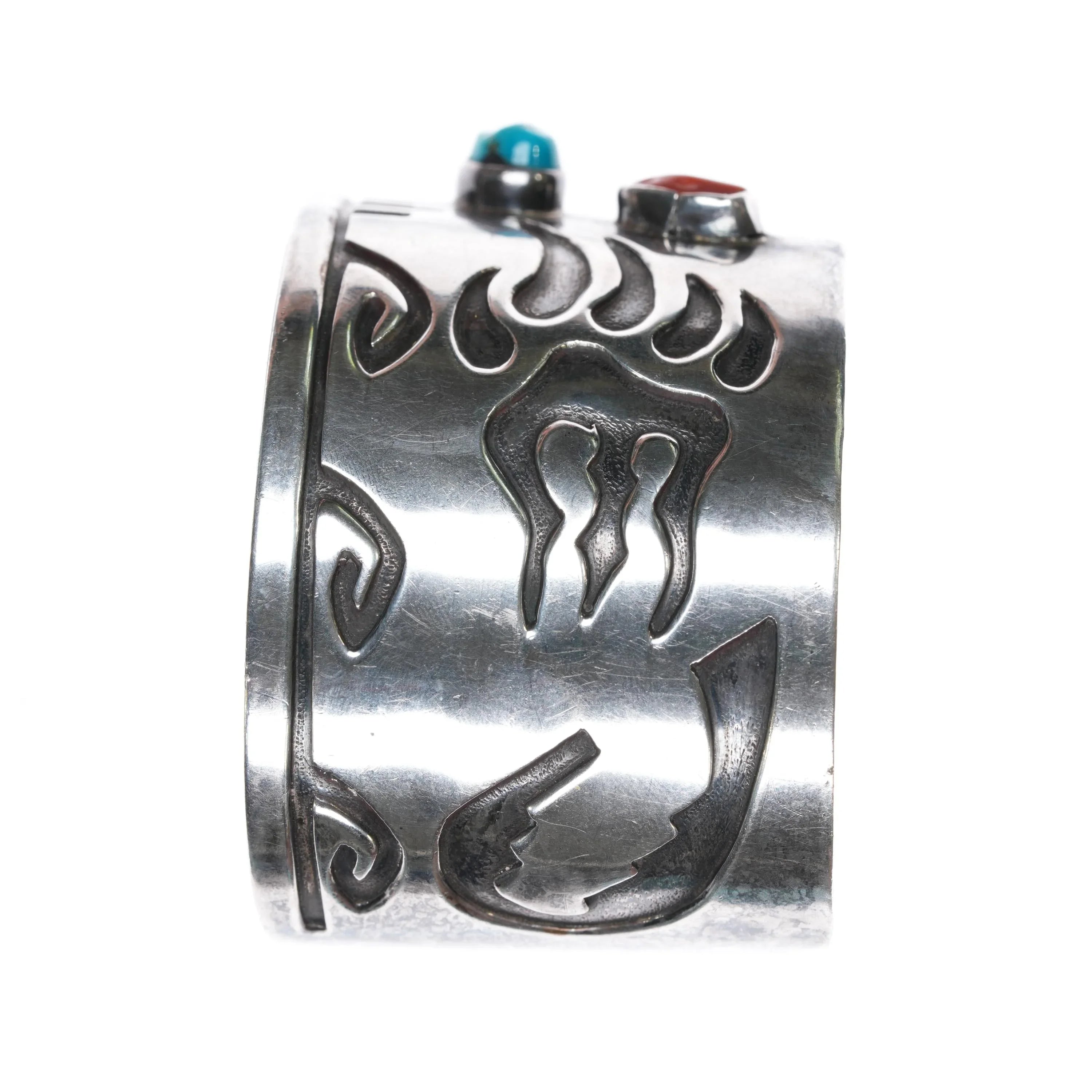 6.75" AY Navajo overlay Silver turquoise and coral bear paw cuff bracelet