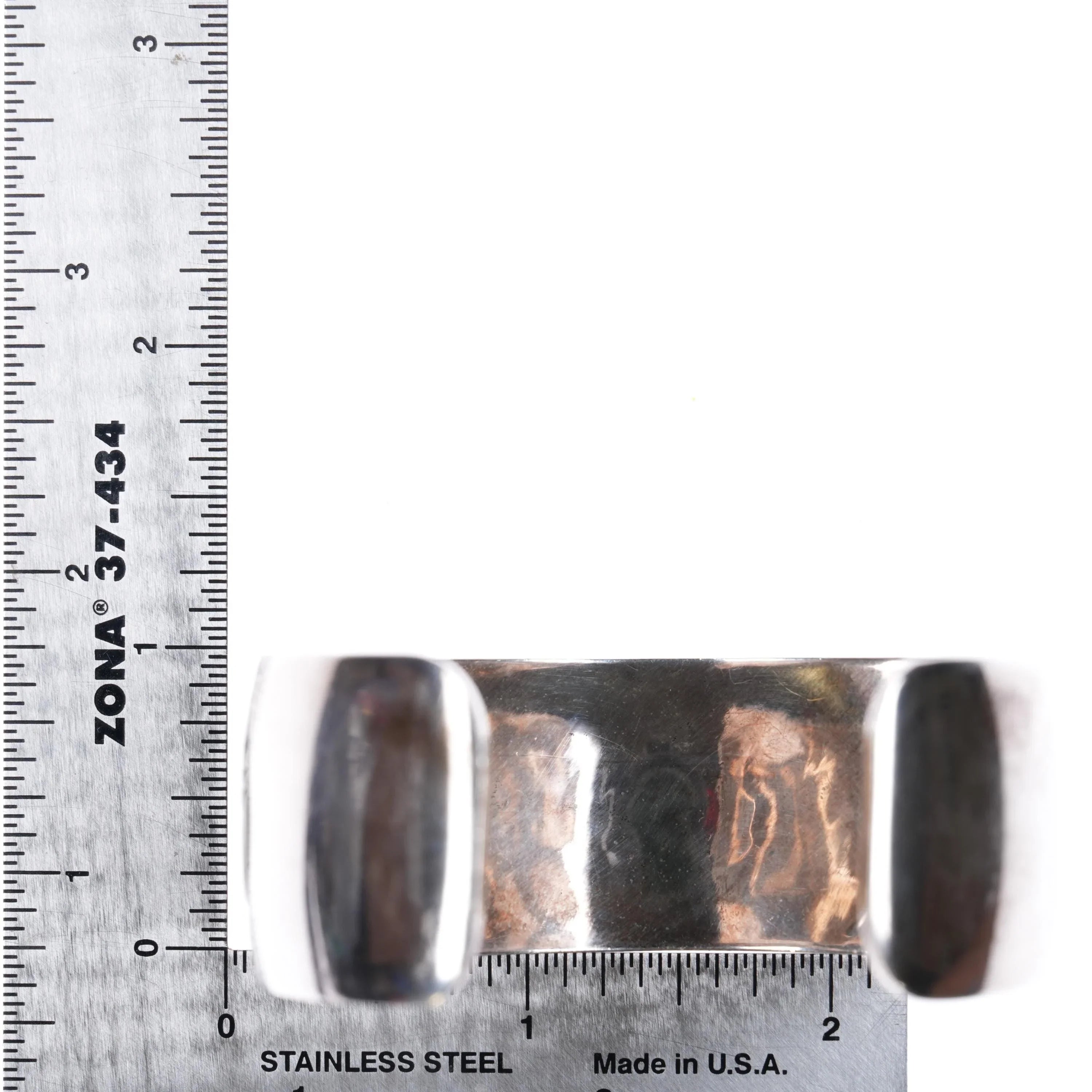 Mark Tawahongva (1948- ) was born at the Hopi Third Mesa village of Hotevilla, Arizona. He learned to make traditional style Hopi jewelry at the Hopi Silvercraft Cooperative Guild. In addition to being a jeweler, Tawahongva is a musician. He plays the bass fiddle in a band. The artist‘s hallmark is a small set of rabbit ears and the initials MT.