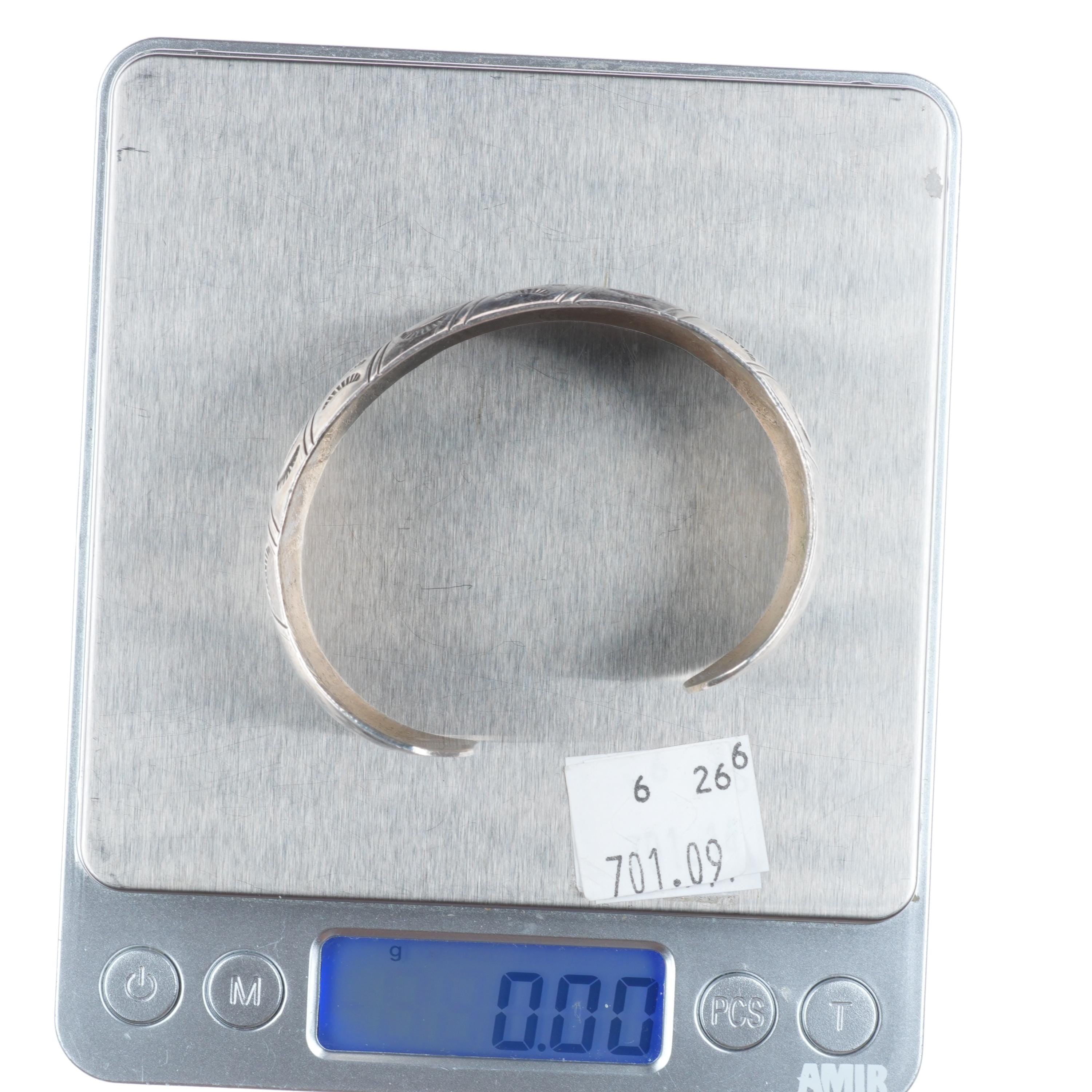 6.75" Tracy Navajo hand stamped domed sterling silver cuff bracelet