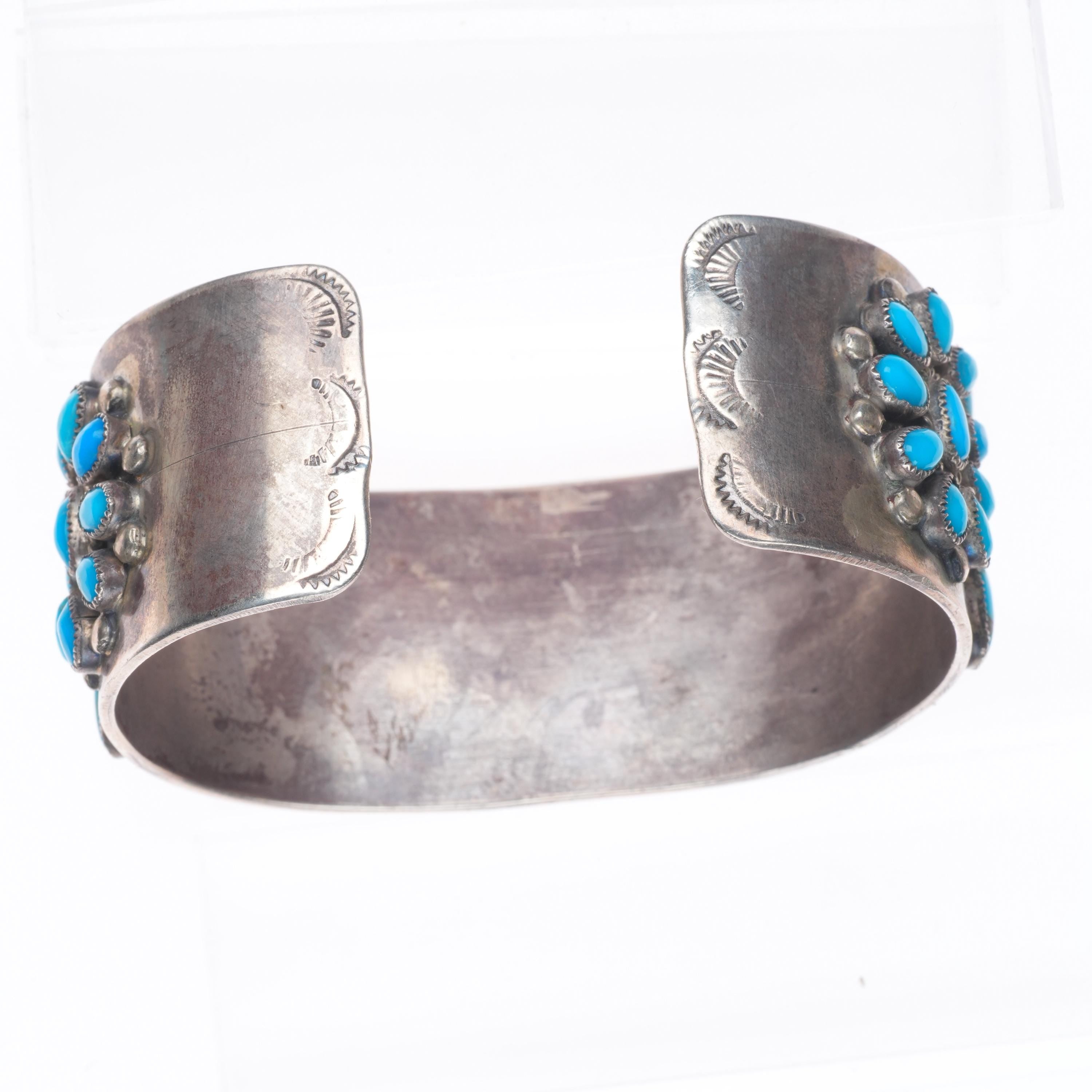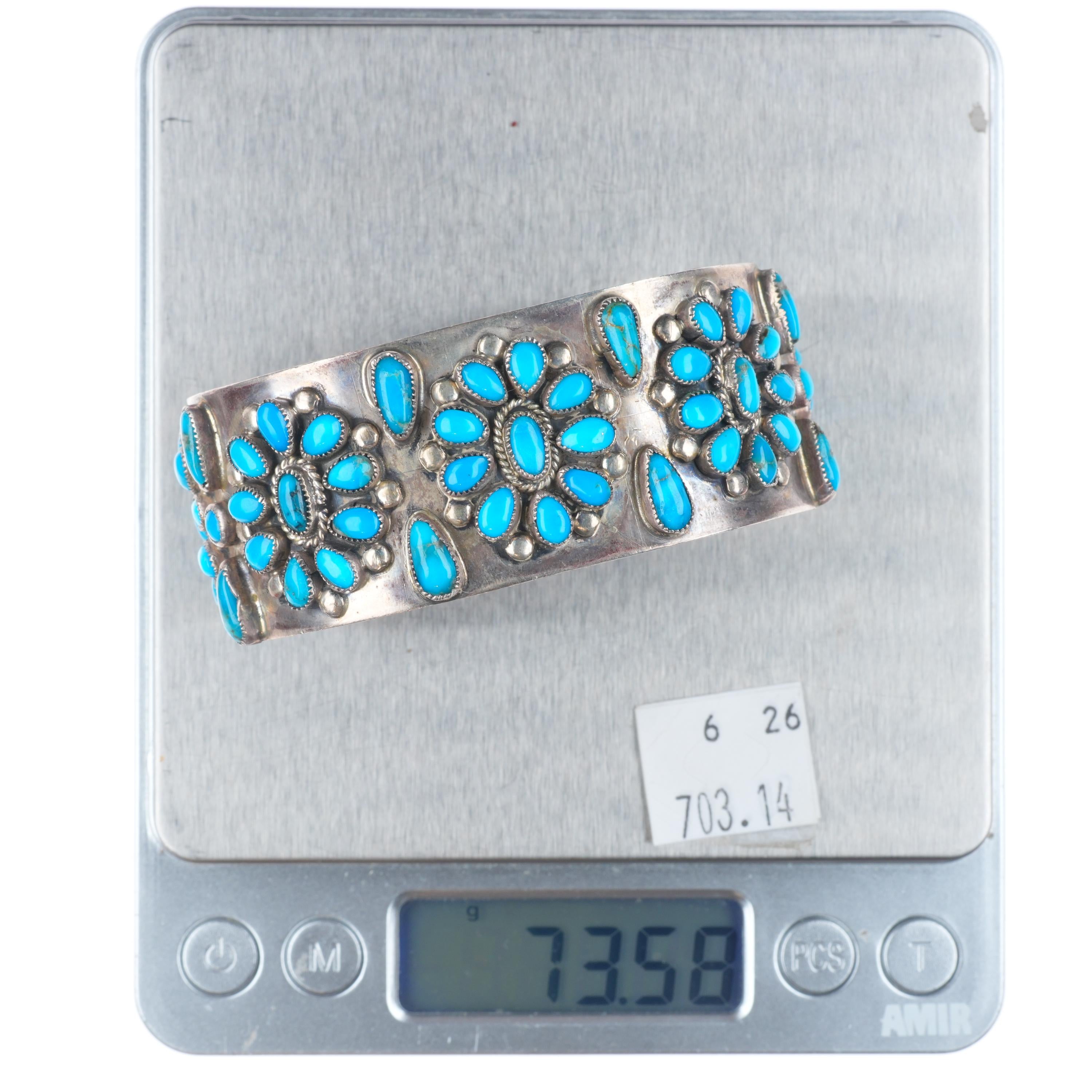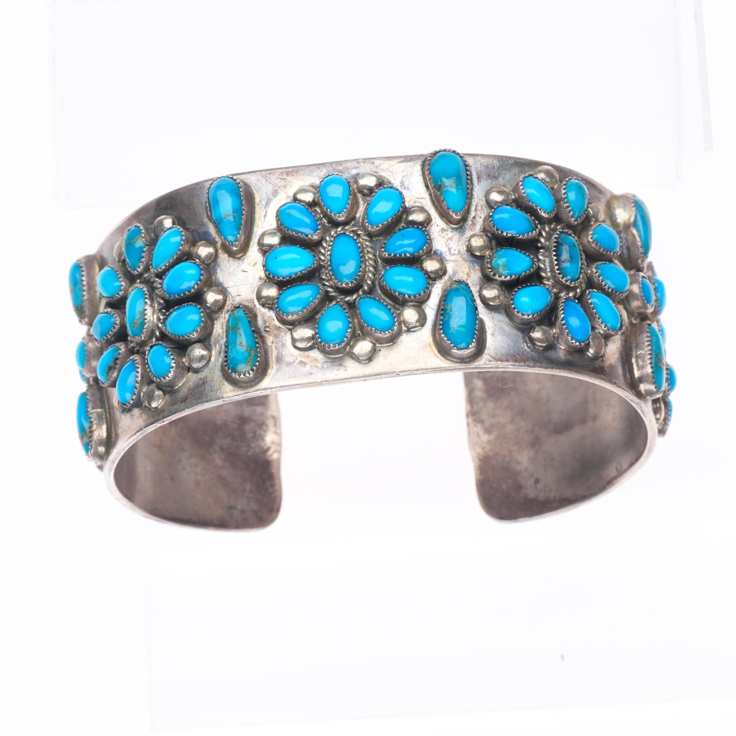 6.75" Vintage Zuni sterling silver natural turquoise cluster cuff bracelet Share WhatsApp Facebook X Pin it Messenger Email Product form $850.00 Excl. VAT 1 in stock Quantity Add to cart This item is a recurring or deferred purchase. By continuing, I agree to the cancellation policy and authorize you to charge my payment method at the prices, frequency and dates listed on this page until my order is fulfilled or I cancel, if permitted.